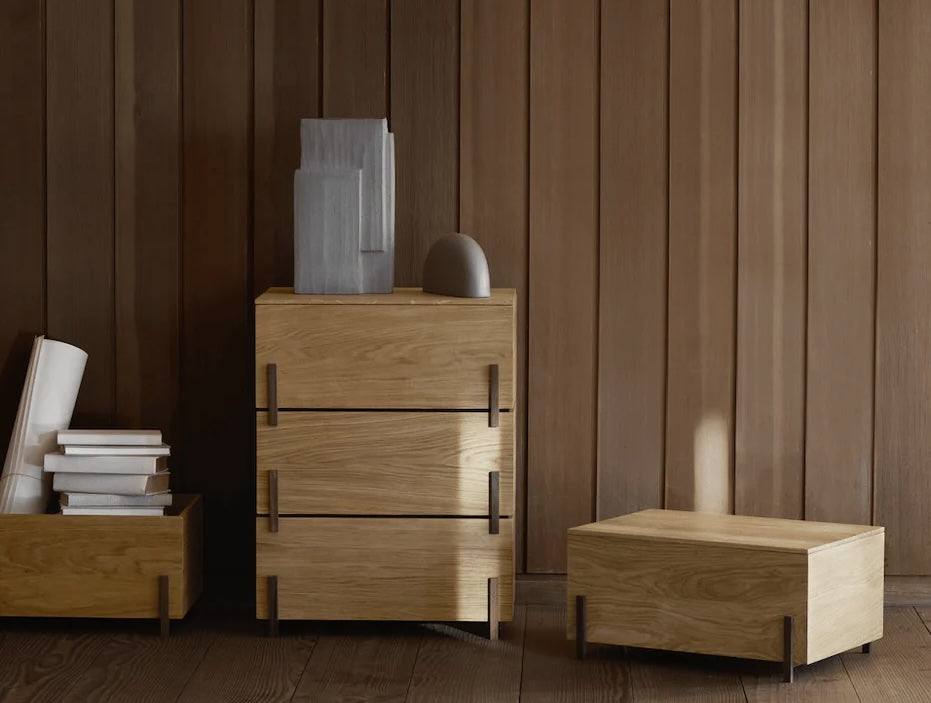 The brand is known for sculptural minimalism, combining architectural forms with functional design to create pieces that feel both artistic and practical.