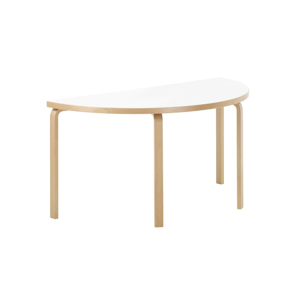 The Artek Aalto Table 96 blends timeless design with functional elegance. Designed by Alvar Aalto, this half-round table is crafted with signature Finnish birch legs and edge-bands, which bring warmth and a natural character to any room. The organic curves and clean lines reflect Aalto’s deep understanding of modernist principles and Scandinavian craftsmanship. The top of the Aalto Table 96 is available in three durable finishes: classic birch veneer, natural linoleum, or hard-wearing laminate. Each option offers its own benefits—birch provides a unified, wood-rich look, linoleum delivers a smooth surface perfect for writing or creative work, and laminate offers enhanced resilience for everyday use. Thanks to its versatile shape, this table fits seamlessly against a wall or can be used in combination with other Aalto tables, such as Table 81A, 82A, or a second Table 96, to form a larger and more dynamic workspace or dining area. Its minimalist profile makes it suitable for both public and private interiors, from compact apartments to professional environments. Whether used for work, dining, or display, the Artek Aalto Table 96 is a long-lasting and flexible solution, destined to evolve beautifully with use and time.