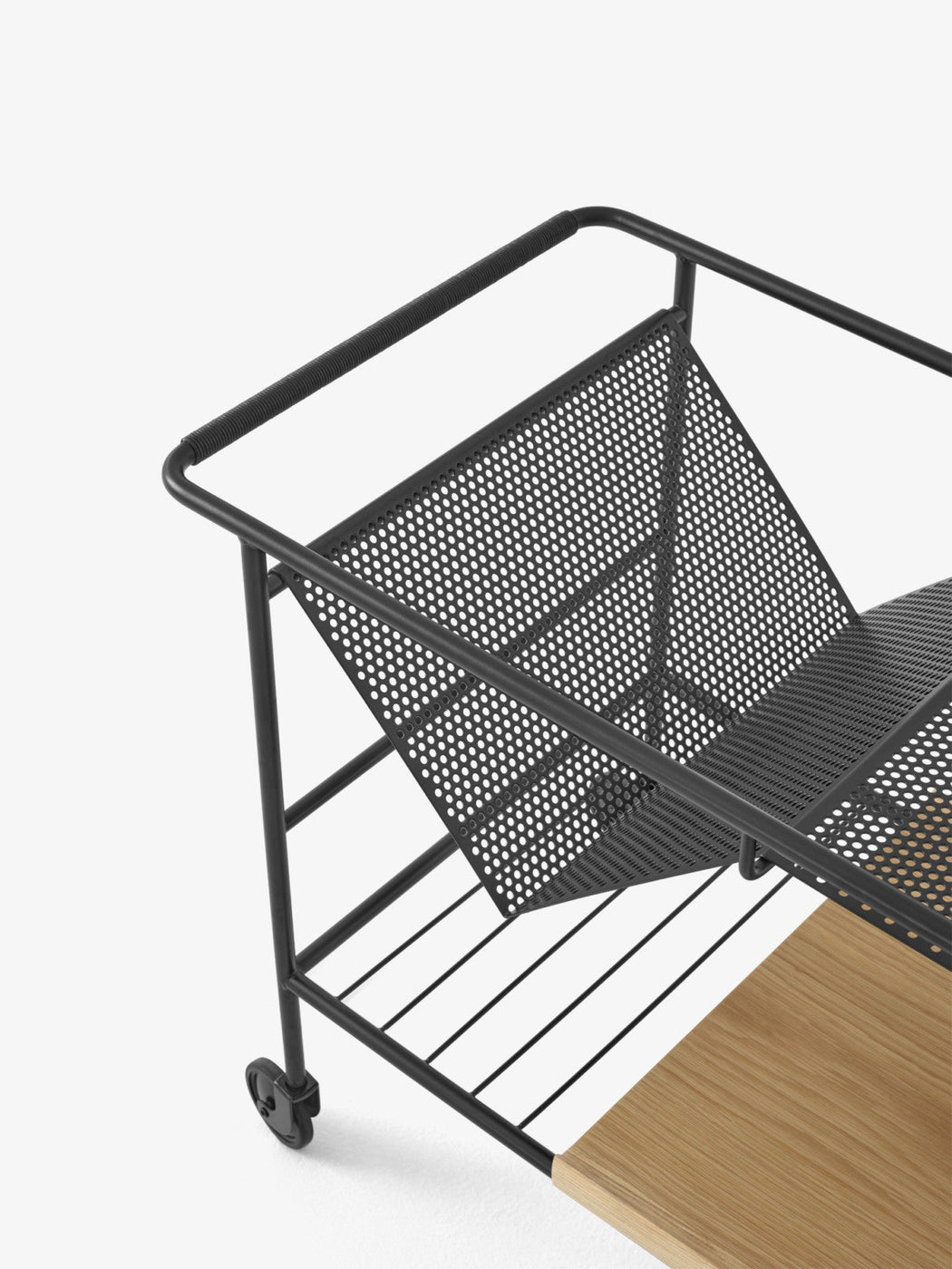 The &Tradition Alima Trolley is a modern storage solution that blends functionality with refined design. Created by Note Design Studio, it draws inspiration from the creative energy of a home workspace. Designed to bring order to everyday clutter, the Alima Trolley is more than just practical—it’s a design statement. At the heart of this piece is its unique V-shaped surface. This clever detail makes it easy to stack and display books, magazines, or sketches. Whether used in a home office or living area, it offers a stylish way to stay organized. The sleek frame and minimalist silhouette give the trolley a timeless look that fits effortlessly into contemporary interiors. Crafted with attention to detail, the &Tradition Alima Trolley supports creativity without compromising on aesthetics. It’s the perfect home for design books, art supplies, or cherished objects. With its compact form and smooth wheels, it can move from room to room with ease. Whether you're tidying a workspace or curating a reading corner, this elegant trolley adapts to your lifestyle. It brings a sense of calm to creative chaos. With the Alima Trolley, storage becomes part of the decor.