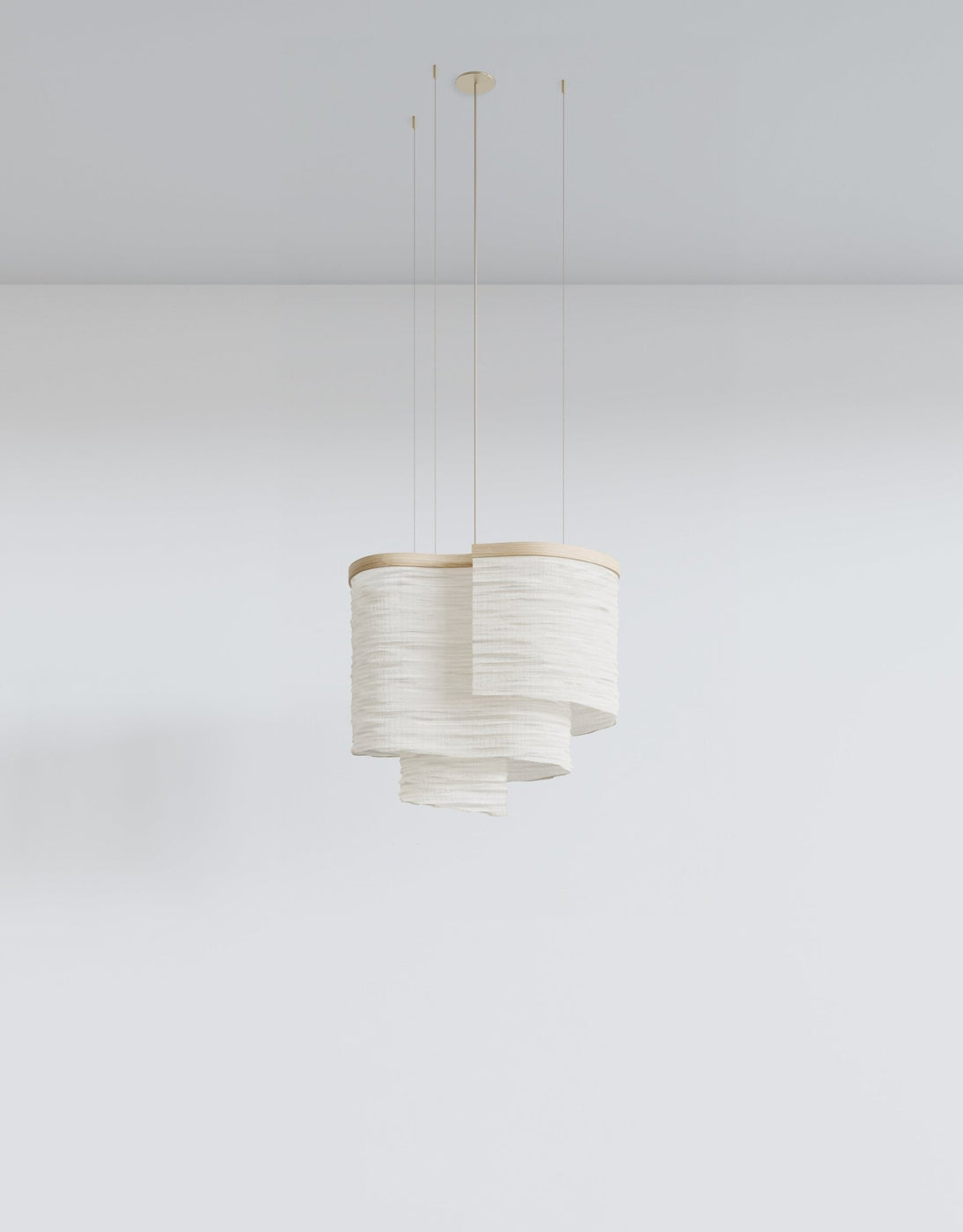 The L&G Altostratus 02 showed up when Ladies and Gentlemen Studio decided pendant lights didn't need to be glass globes or metal shades on repeat. They built this sculptural fixture around a natural ash wood frame wrapped with textile - creating this soft, cloud-like form that floats overhead instead of hanging there like traditional pendants. The name comes from altostratus clouds, those mid-level gray sheets that diffuse sunlight, which pretty much sums up what the fixture does with light. The textile shade softens and disperses the glow instead of directing it harshly downward, giving you that warm ambient lighting that makes rooms feel comfortable rather than just bright. Brass hardware and bronze suspension cables add subtle metal accents without dominating the overall look, and the khaki cord blends into most ceiling colors better than stark white or black cables do. What makes this practical beyond just looking interesting is the adjustable sizing and customization options. The frame comes in different dimensions depending on your space - you're not stuck with one standard size that either overwhelms small rooms or disappears in larger ones. Takes standard E26/E27 bulbs (comes with an A15 LED), supports up to 300 volts, and dims smoothly with ELV or 0-10V dimmers so you can actually adjust the mood instead of just having on/off options. The 8-foot standard cable length gives you flexibility for installation height, and it's adjustable on-site so you can fine-tune it after seeing how it looks in the actual space. Works over dining tables where you need focused ambient light, in living rooms as accent lighting, or in entryways and stairwells where you want something sculptural that also illuminates properly. UL certified, which matters more than people realize when you're hardwiring fixtures into your home. Ladies and Gentlemen Studio operates out of Brooklyn and focuses on lighting that bridges sculptural design with actual functionality. Founded as a design partnership, they make fixtures in-house with attention to materials and craft rather than outsourcing production overseas. The customization options - different textiles (Asami, Twinx, Crushed Silk), frame finishes, sizing adjustments - reflect their small-studio approach where each piece gets individual attention. The Altostratus collection represents their philosophy of creating lighting that contributes atmosphere and architectural interest instead of just meeting basic illumination requirements. Made in New York with quality materials meant to last rather than disposable fixtures that need replacing after a few years.