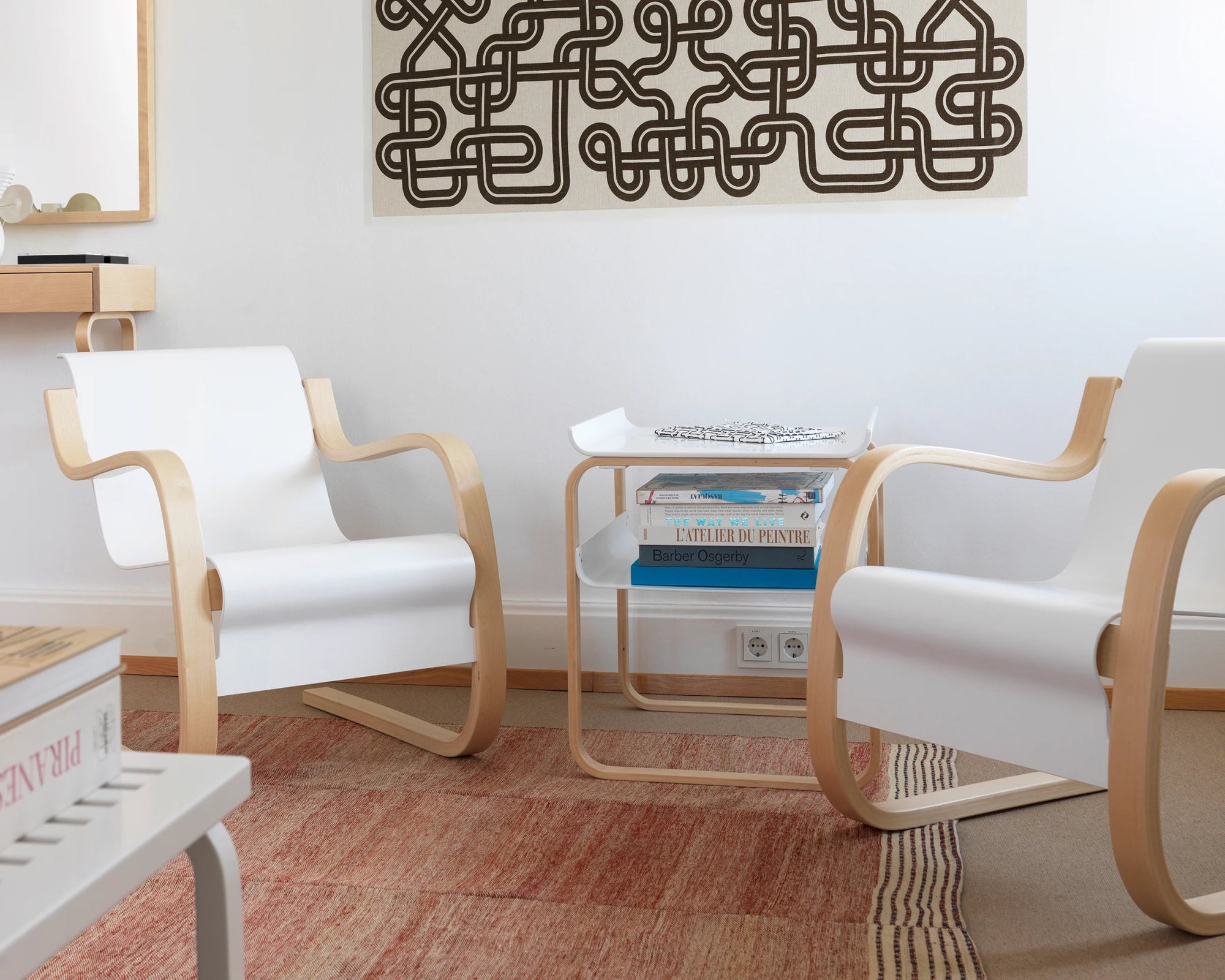 The Armchair 42 - Alvar Aalto is an iconic piece of Artek furniture that blends modern elegance with functionality. Designed by Alvar Aalto in 1932, this chair features a unique cantilevered shape with a frame crafted from laminated birch. The seat and backrest are formed from a single molded piece of plywood, providing both comfort and strength. This Artek chair is a perfect example of Scandinavian design. Thanks to its thoughtful design, the Armchair 42 - Alvar Aalto remains timeless in both form and function. The chair’s curved, fluid lines create a comfortable seating experience, while the high-shine lacquered finish ensures durability. Whether placed in a living room, office, or study, this Artek chair adds a modern touch to any space. Its natural birch veneer enhances its classic, minimalist aesthetic. Artek continues to set the standard for modern furniture and Scandinavian design. Known for its minimalist and functional approach, Artek creates pieces that are both beautiful and practical. The Armchair 42 - Alvar Aalto reflects the brand's core values of simplicity and innovation. With its clean lines and impeccable craftsmanship, this Artek chair has become a symbol of design excellence that lasts for generations.