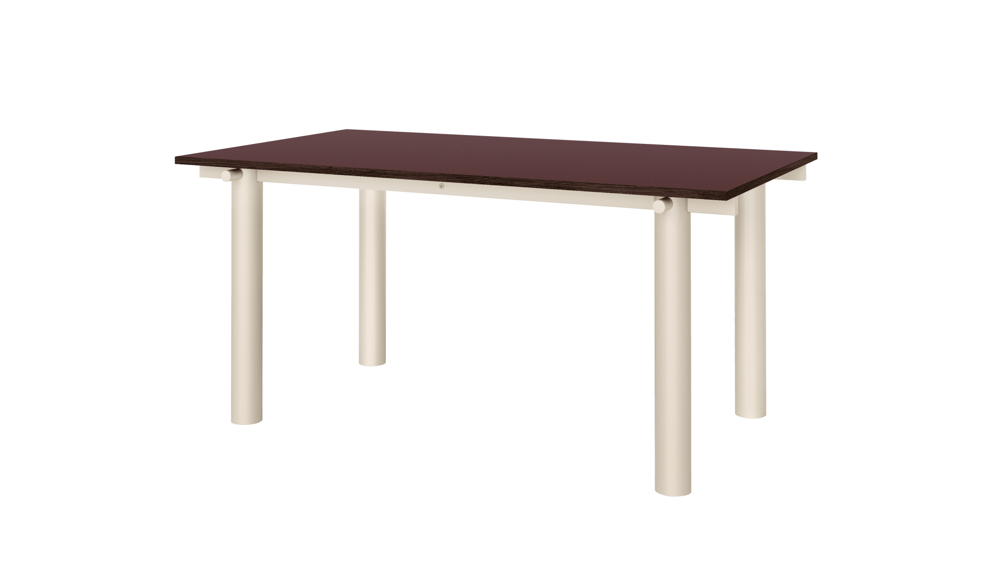 Crafted from linoleum with chipboard core. steel with powder coating, the Atura Dining Table - 160 x 90 - Light Cashmere/Burgundy Linoleum brings together utility, material richness, and a sculptural sensibility that feels true to Ferm Living’s modern Scandinavian aesthetic.