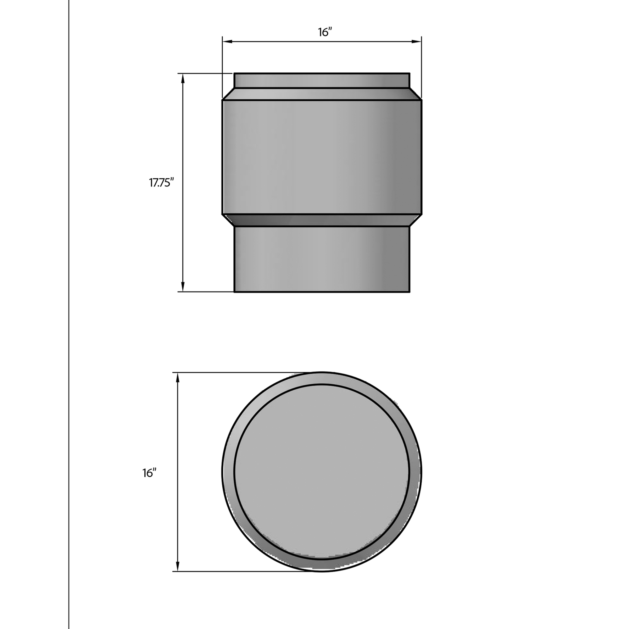 • W: 16.25 in × D: 16.25 in × H: 18 in