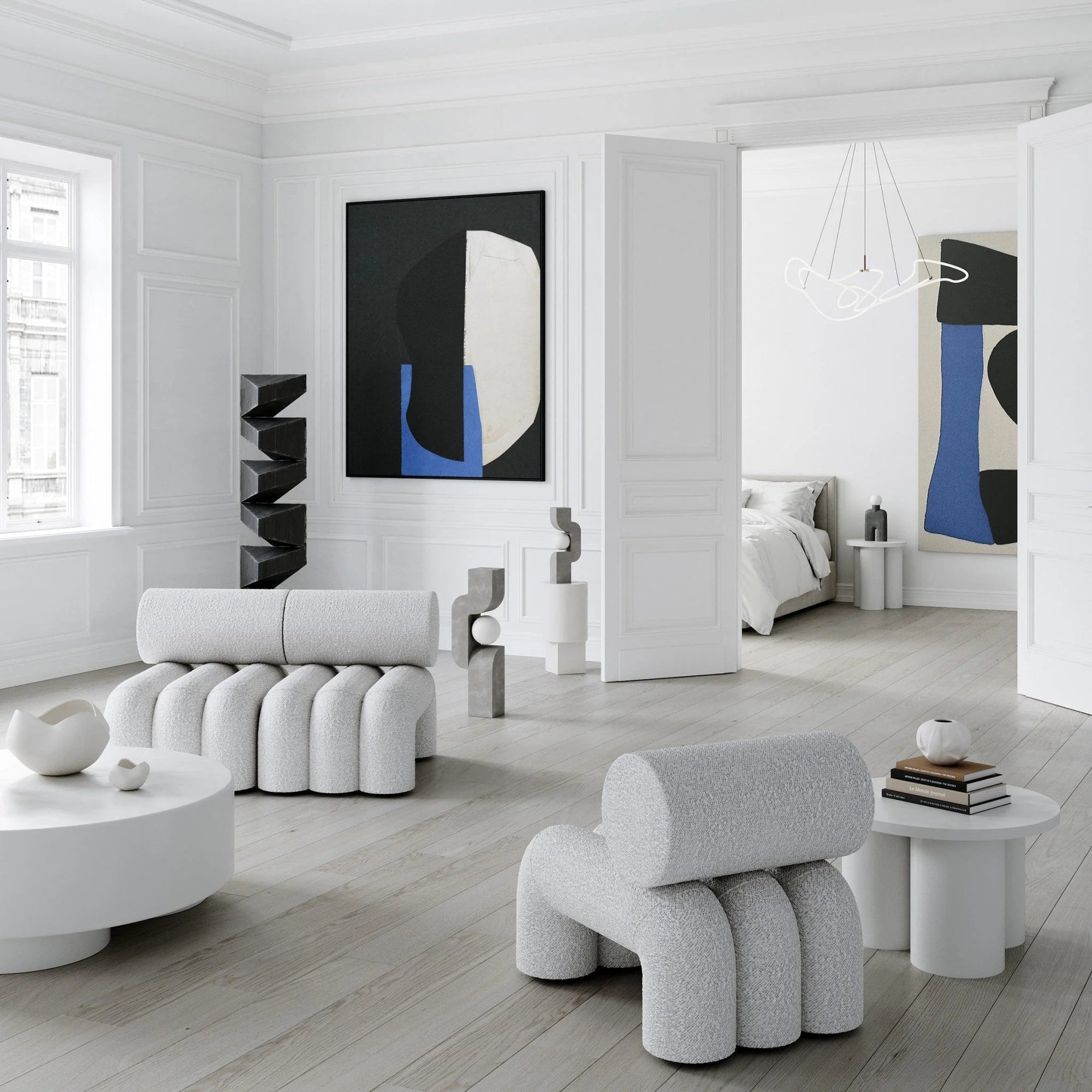 The 101Copenhagen Big Foot Side Table is a striking piece that seamlessly blends contemporary design with a sculptural aesthetic. Featuring bold cylindrical legs and a rounded tabletop, this table takes inspiration from brutalist architecture, elevating it with thoughtful texture and artistic form. Its impressive size and solid structure make it a standout feature in minimalist spaces, effortlessly adding sophistication and modernity. Without a doubt, the 101Copenhagen Big Foot Side Table is the perfect addition for creating a unique statement in your home. In addition to its visual appeal, the 101Copenhagen Big Foot Side Table offers remarkable versatility. It fits perfectly in a variety of spaces whether in your hallway, between lounge chairs, beside your bed, or in your office. Thanks to its neutral yet striking design, it seamlessly complements any modern interior while delivering both practicality and style. Moreover, the combination of its bold sculptural form and the lightweight, durable material makes it ideal for diverse settings, serving as both a functional and artistic conversation starter.