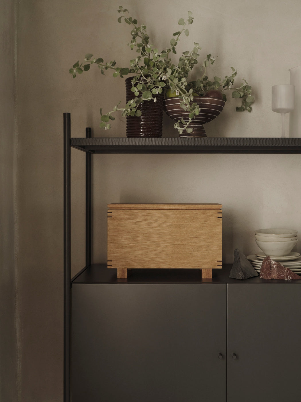 The Bon Wooden Box by Ferm Living is designed to help organize everyday spaces while maintaining a calm, design-led look. It offers a practical solution for storing essentials without introducing visual clutter, making it ideal for rooms that need both order and warmth.