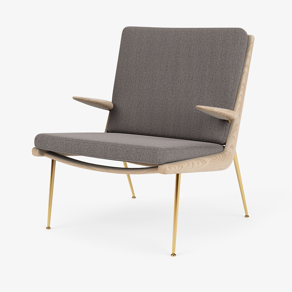 &Tradition Boomerang Lounge Chair w/ Armrest - Oiled Oak w/ Brass