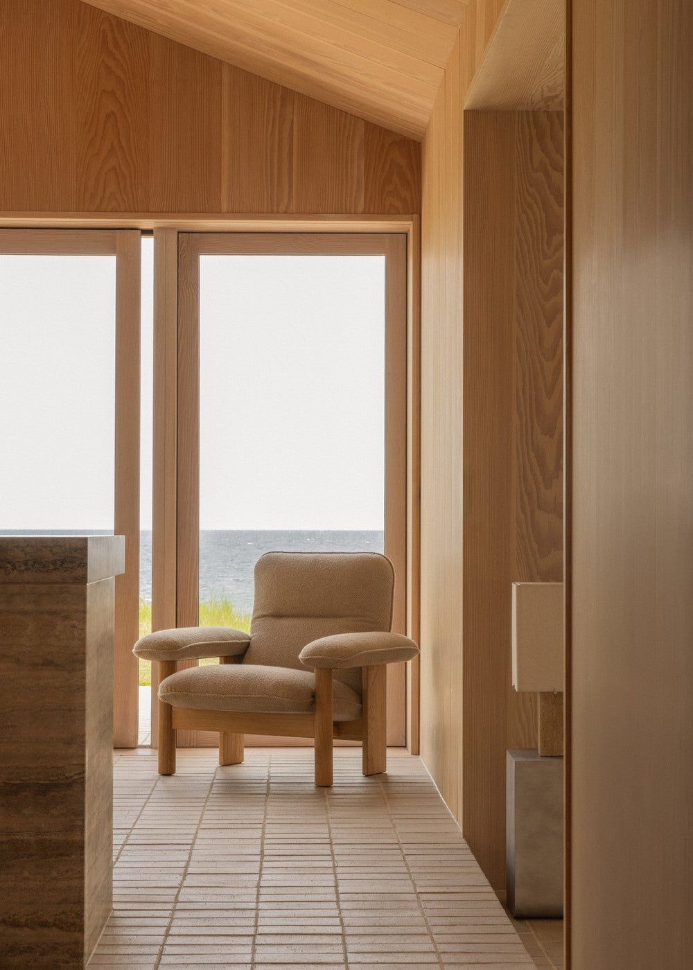 The Audo Copenhagen Brasilia Lounge Chair brings together two distinct design philosophies - Scandinavian mid-century restraint and Brazilian modernism's bold expressiveness - into one genuinely comfortable piece of furniture. Designed by Norwegian duo Anderssen & Voll, this standard-back version sits at 82cm high with generous proportions at 96cm wide and 84cm deep, creating that perfect hybrid between an armchair and a full lounge chair. The solid wood frame showcases traditional joinery techniques with those distinctive rounded front legs and rectangular back legs that give it geometric interest, available in walnut, natural oak, or dark-stained oak. What sets it apart is that molded foam seat and backrest wrapped around a steel frame, upholstered in your choice of luxurious sheepskin, soft bouclé fabrics, or Dunes aniline leather that develops character over time. The exaggerated armrests aren't just design flourishes - they're positioned at 51cm high for actual comfort whether you're settling in with a book or just need somewhere your arms can rest naturally. What makes the Brasilia work in real homes is how those bold proportions translate into unparalleled sitting comfort rather than just looking impressive in showrooms. The low seat height at 39cm combined with that angled backrest creates this embrace that adapts whether you're sitting upright for conversation or sinking in for a movie marathon. The robust construction means it handles daily use without feeling delicate - this is furniture meant to be lived in, not preserved. The combination of stout, sturdy legs and generous cushioning creates a sense of luxury and ease that works equally well as a reading chair in the corner or as a statement piece in the middle of your room. Pair it with the matching Brasilia Ottoman and you've got a proper lounging setup that becomes the spot everyone gravitates toward. Available in multiple upholstery options from natural sheepskin that varies beautifully in texture and color, to contemporary bouclé fabrics, to leather that ages gracefully. The relatively low backrest means it doesn't visually dominate spaces the way high-backed chairs can, making it surprisingly versatile for different room configurations. Audo Copenhagen was formed by uniting MENU, by Lassen, and The Audo, creating a brand that draws from a century of Danish design tradition while maintaining a modern global outlook. Their collaboration with Anderssen & Voll - Torbjørn Anderssen and Espen Voll who established their Oslo studio in 2009 - reflects their commitment to working with designers who share their philosophy. Winners of numerous international accolades including Wallpaper* Design Awards and Red Dot Awards, Anderssen & Voll create meticulously crafted designs imagined over coffee, sketched on paper, rendered on computers, and built into elaborate scale models refined to the last detail. Their approach aligns with Audo's belief that good design builds on tradition while breaking its rules, creating products that stimulate thought and reflection through modifications and elements of surprise, resulting in furniture that transcends trends while feeling distinctly contemporary.