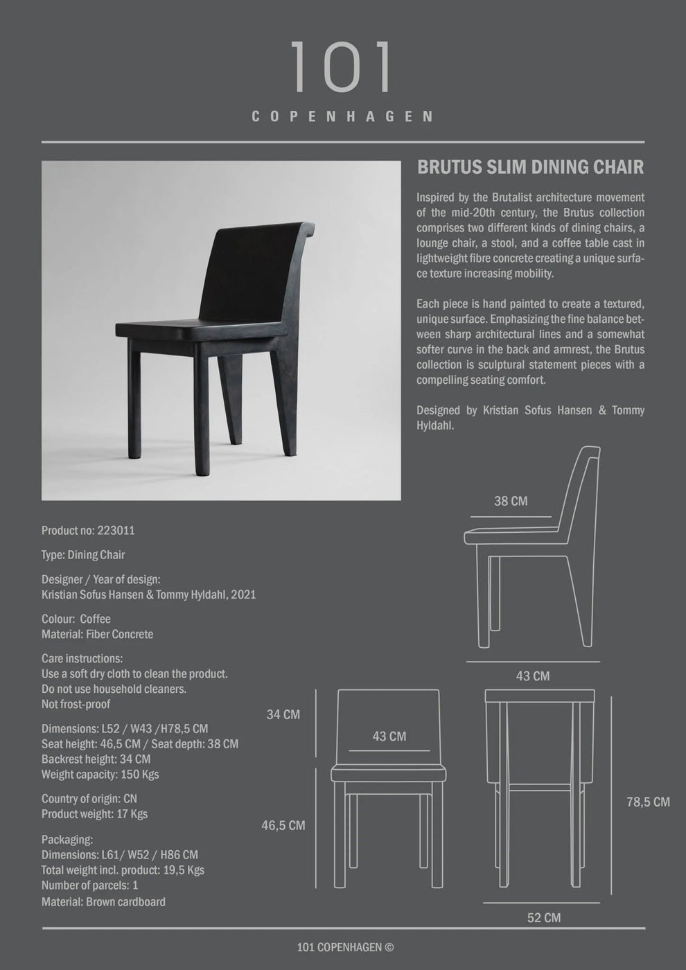 The 101 Copenhagen Brutus Slim Dining Chair brings refined sophistication to dining seating, delivering a streamlined chair that combines commanding design elements with space-conscious proportions while providing comfortable seating that enhances dining rooms, kitchens, or any space with assertive character. This slim dining chair understands that refined furniture should offer both visual impact and spatial efficiency - providing supportive surfaces and refined construction that elevate room aesthetics while offering reliable seating for dining, conversation, or daily activities that makes spaces truly functional. The Brutus Slim design achieves this through quality materials and streamlined proportions that create substantial presence without overwhelming dining areas, making it ideal for dining rooms, breakfast nooks, compact kitchens, or any space that benefits from seating with bold character and space-conscious functionality. What's particularly appealing about this slim dining chair is how it manages to feel both powerfully distinctive and spatially intelligent, providing the dining seating that makes meals memorable while adding refined sophistication that makes dining spaces feel efficiently appointed and thoughtfully designed. The construction quality becomes evident when this chair handles regular dining use while maintaining its refined appearance through daily interaction with meals, conversation, and family activities. The surfaces provide dependable comfort for extended sitting during family meals, dinner parties, or casual conversation, while the materials develop beautiful character over time rather than just showing wear from regular use. The streamlined proportions work perfectly with standard dining tables - substantial enough to feel stable and supportive but scaled appropriately for residential dining arrangements that celebrate both function and space-conscious aesthetic. The chair encourages genuine use rather than precious treatment - providing reliable seating for everything from quick breakfasts to extended dinner parties without feeling fragile or spatially limiting. The overall design manages to feel both substantial and elegantly streamlined, offering the kind of dependable functionality that makes dining chairs essential while maintaining the refined beauty that makes efficient spaces feel intentional and sophisticatedly appointed. 101 Copenhagen approaches streamlined dining chair design with the understanding that refined seating should enhance both dining comfort and spatial sophistication, creating pieces that support family dining while contributing to the overall efficiency and visual impact of thoughtfully designed dining spaces. They recognize that the best refined chairs serve essential functions while maintaining the streamlined design elements that make contemporary spaces feel both functional and spatially expressive. The Brutus Slim Dining Chair collection reflects this philosophy perfectly, creating seating that honors efficient design principles while providing the functionality and refined appeal that make space-conscious furniture essential for how people actually want to live and dine in spaces that celebrate both practical utility and the enduring appeal of streamlined, contemporary design.