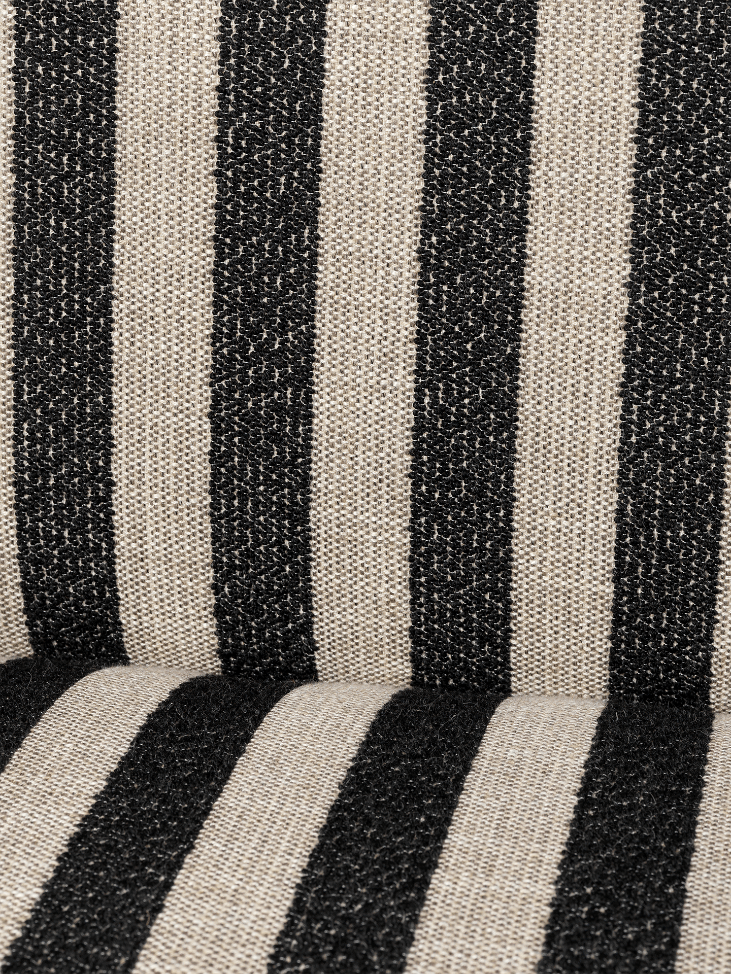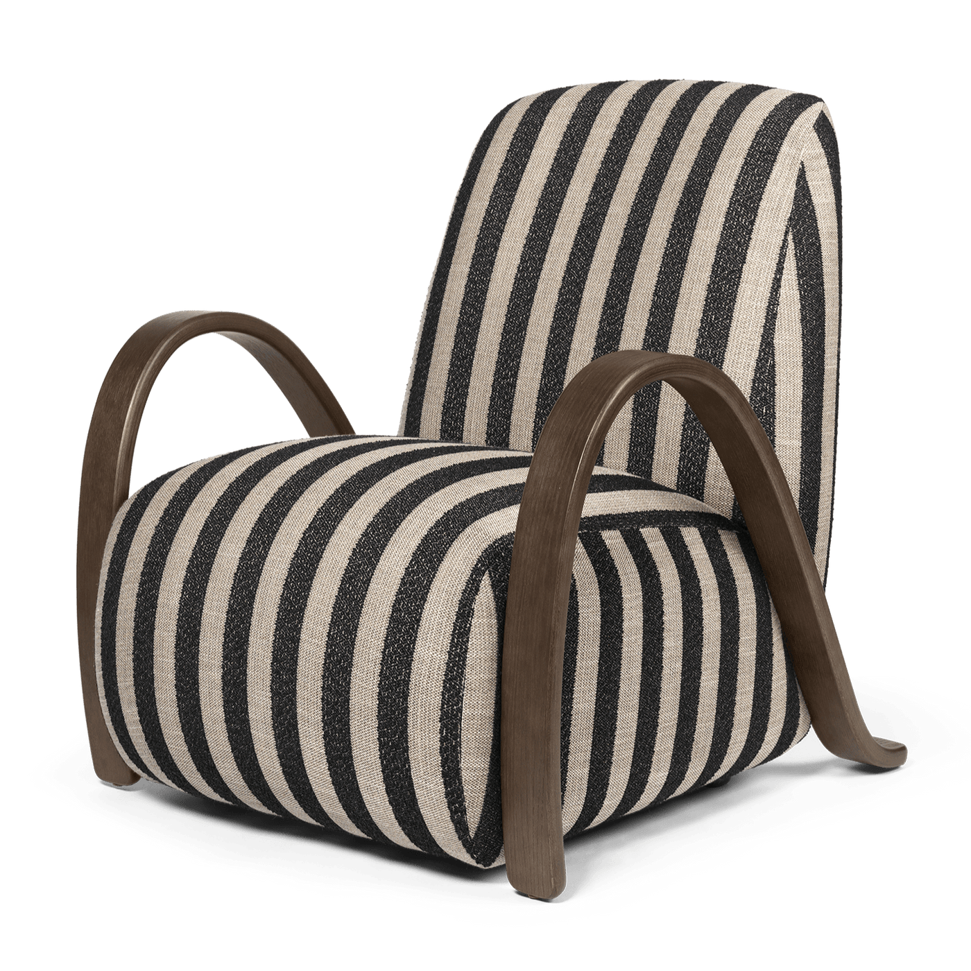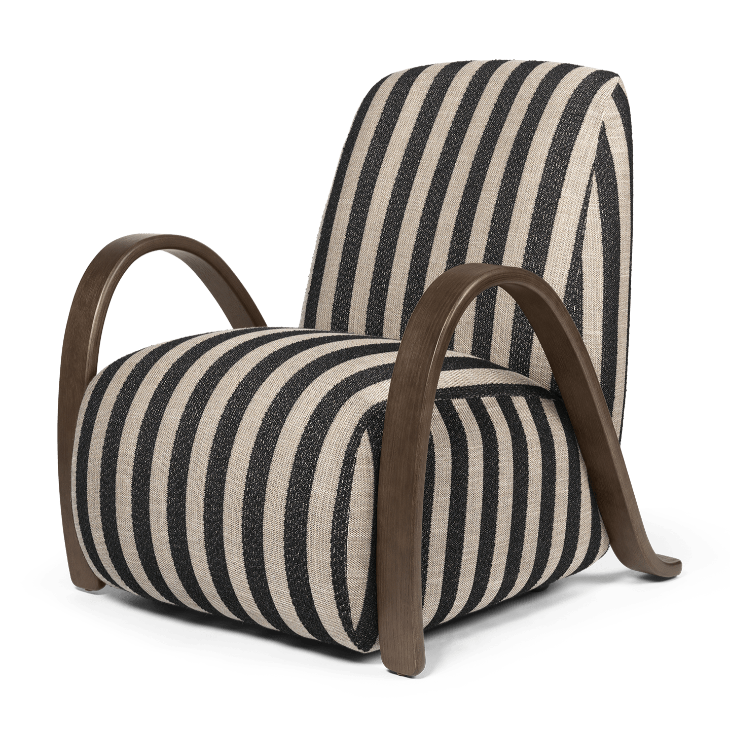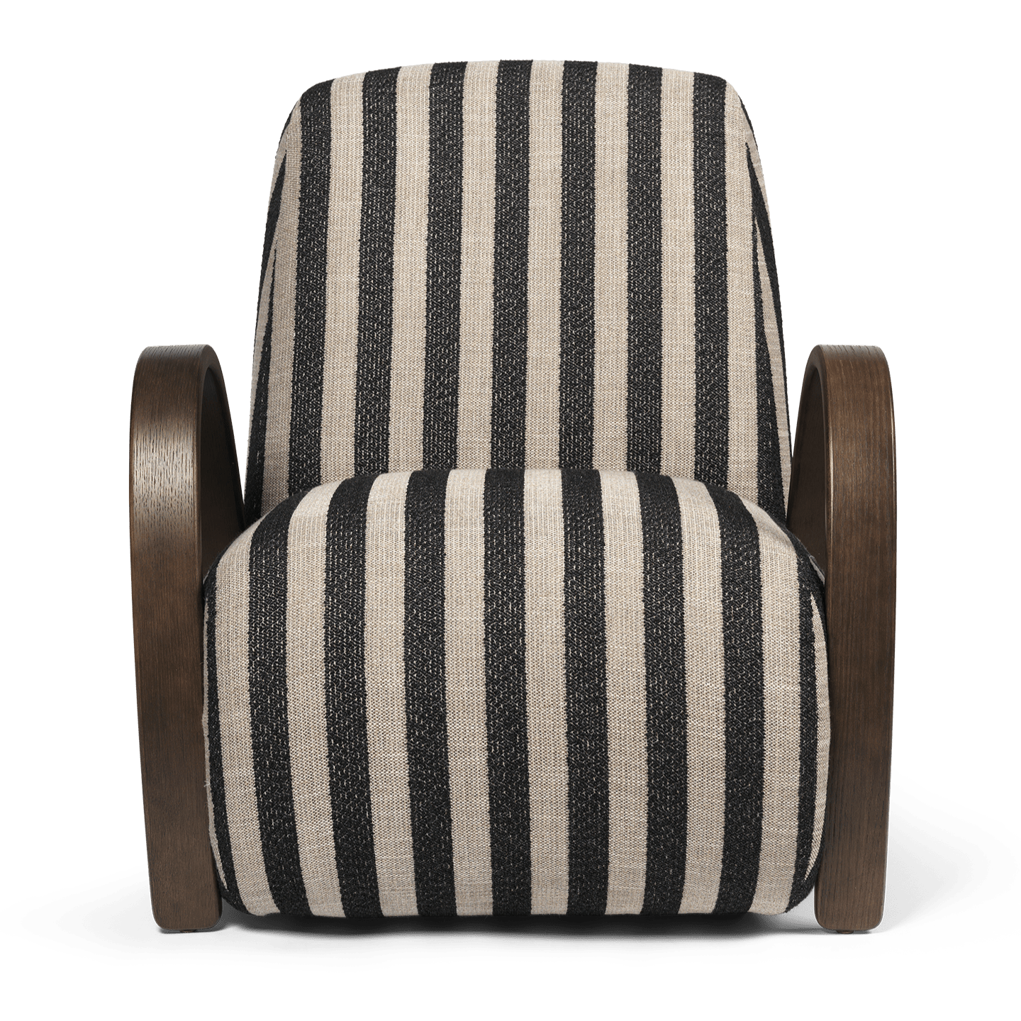 This chair is what happens when Danish designers actually sit down and think about what makes a good lounge chair instead of just making something that looks cool. The Buur was designed with Says Who studio, and you can tell they spent time figuring out the details that matter. Those curved oak armrests aren't just pretty - they're positioned exactly where your arms naturally want to rest, and the FSC-certified wood has this dark stain that works with pretty much any decor without being boring. The cushioning is seriously plush but not so soft that you sink in and can't get back out. Available in several upholstery options like Louisiana sand/black stripes or Nordic bouclé, so you can pick what fits your space best. Here's what's practical about it: the thing weighs 44 pounds, which sounds heavy but actually means it's not going to slide around when you sit down hard or lean back. The seat's at the right height (42cm) that most people can sit comfortably without their feet dangling or feeling cramped. At 75cm wide, it's roomy enough that you can curl up sideways with a book, but not so massive that it takes over smaller living rooms. The high-resilience foam means the cushions bounce back instead of getting permanent body impressions after a few months. Whether you're using it for morning coffee, evening reading, or just having somewhere comfortable to sit that isn't your couch, it handles all of that without any fuss. Ferm Living has been around Copenhagen since 2006, and they've gotten really good at making stuff that looks sophisticated but isn't precious about it. The Buur fits right into their approach - it's well-made enough to last for years, but designed for actual daily use rather than just looking impressive in photos. They work with studios like Says Who who understand that good furniture needs to work with how people really live, not just follow design trends. That's why their stuff tends to age well instead of looking dated after a couple years.