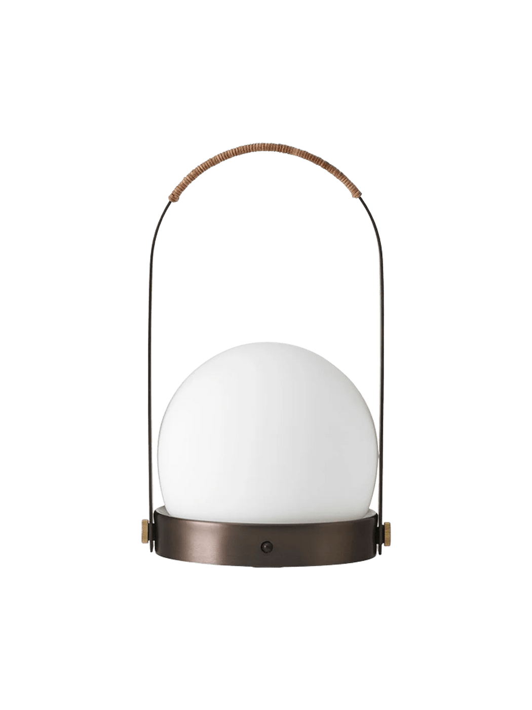 The Audo Copenhagen Carrie Table Lamp brings cordless lighting that actually looks good enough to leave out all the time rather than hiding in a closet when not in use. Designed by Norm Architects, this portable LED lamp cradles a warm opal glass orb within a sleek basket-like metal frame with a detachable handle - available in brushed brass or bronzed brass with soft leather wrapping on the handle. At 24.5cm high and 13.5cm in diameter, it's compact enough to move around easily but substantial enough to provide real illumination at 384 lumens with that warm 2700K glow. Charges via a concealed magnetic connector (bronzed version) or USB-C cable (brushed version), providing up to 10 hours of light when fully charged. The cordless design means you can carry it from dining tables to outdoor terraces, from bookshelves to bedside tables, anywhere you need light without being tethered to outlets. What makes the Carrie genuinely useful beyond just being portable is that 4-step dimming (0%, 10%, 50%, 100%) that lets you dial in exactly the light level you need - full brightness for reading or working, dimmed down for ambient atmosphere during dinners, or that 10% setting for subtle nightlights. The detachable handle makes it easy to carry when moving between rooms or taking it outside for evening gatherings on patios or balconies. The internal LED is rated for 25,000 hours, so you're not constantly replacing bulbs, and the rechargeable lithium battery (5000mAh capacity) gives you that 10-hour runtime that actually lasts through dinners and evenings without dying halfway through. Important to note: only leave it plugged in during charging with the lamp off to keep the battery healthy - don't leave it plugged in while using. Compatible with Audo's Charging Board for convenient charging, and spare parts like replacement shades and charging cables are available when needed. Works beautifully for outdoor dining when you don't have string lights, as bedside lighting that you can carry to the bathroom at night, or just moving around your home bringing light wherever it's needed. Audo Copenhagen was formed by uniting MENU, by Lassen, and The Audo, creating a brand that collaborates with longstanding partners like Norm Architects who share their design philosophy. Founded in Copenhagen in 2008 by Jonas Bjerre-Poulsen and Kasper Rønn, Norm Architects specializes in creating designs that unite materials and craftsmanship while embodying timeless simplicity with nothing more to add or subtract. Their emphasis on Scandinavian design ideology - timeless aesthetics, natural materials, and modernist restraint - results in pieces like the Carrie Lamp that enhance daily life through thoughtful design. The lamp reflects their approach: simplicity that carries bigger ideas, creating portable lighting that's both functionally brilliant and beautiful enough to be part of your decor rather than just a practical tool.