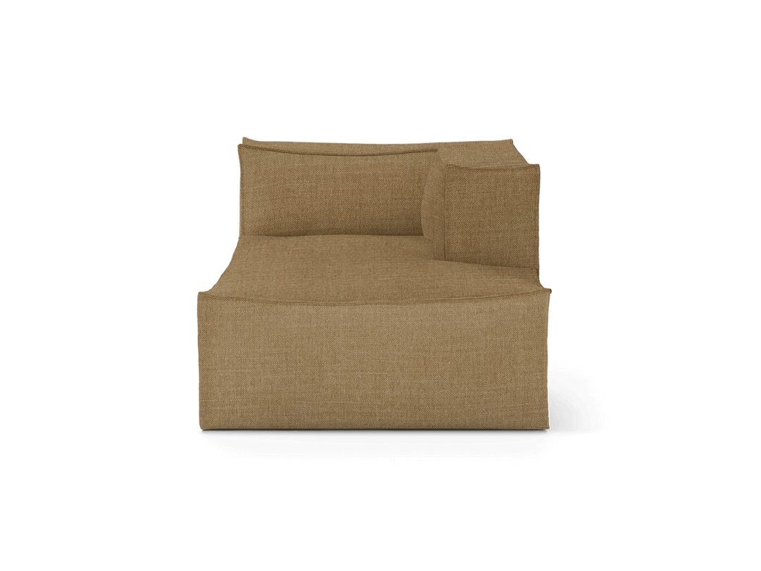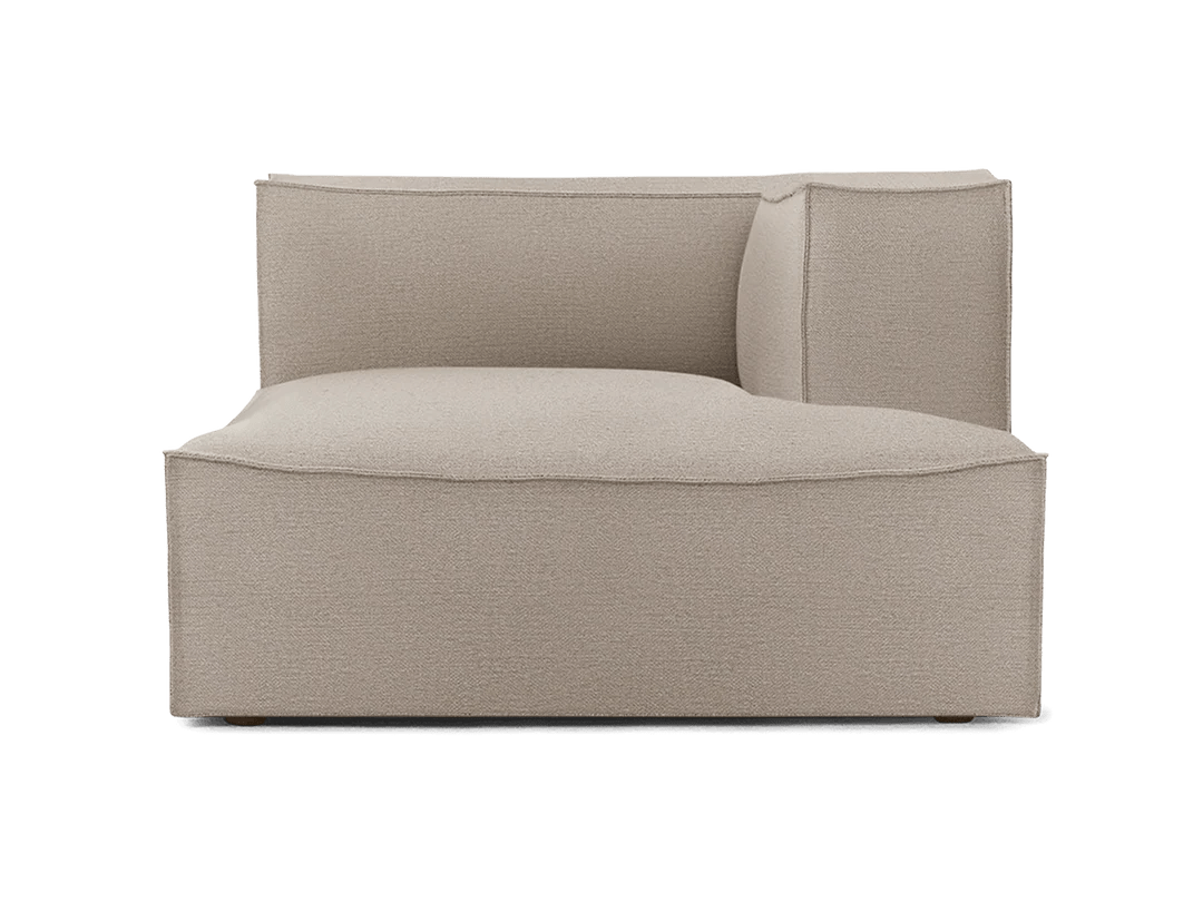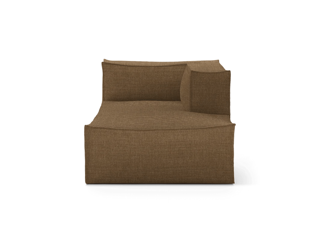 The Ferm Living Catena Sofa Chaise Longue Right S601 completes your modular seating with space-conscious luxury, available as a made-to-order piece so you can choose from their impressive fabric selection including Hot M. Smoked Chocolate, rich velvet textures, soft bouclé options, and premium linen blends that perfectly suit your style. This right-side chaise belongs to the S series with its more compact 93cm depth, making it ideal for apartments or rooms where you want genuine chaise functionality without overwhelming the space. The Catena design takes its inspiration from catenary curves - those natural U-shapes that chains form when hanging freely - and this right-oriented chaise captures that flowing, embracing quality that makes you want to kick back and truly unwind. Whether you're finishing off an L-shaped sectional or adding that perfect lounging spot to a smaller living area, this piece brings Ferm Living's signature "low living" comfort to spaces where every inch matters. The beauty of the S601 is how it delivers authentic chaise comfort without requiring a massive footprint. That 93cm depth gives you real room to stretch out completely - not just a slightly longer seat, but genuine space for reading, napping, or just sprawling however feels best. The microcellular foam construction maintains even support from end to end, so you don't get that uncomfortable sag in the middle that makes cheaper chaises unusable after regular use. At 76cm high, it keeps visual harmony with other Catena modules while providing proper back support when you're sitting normally. The modular connection system means you can configure it exactly where it works best - as the right terminus of a sectional, connected to center modules for extended lounging, or standalone when you need maximum flexibility as your space evolves. Ferm Living has spent nearly two decades understanding that exceptional furniture needs to enhance how people want to live rather than forcing them to adapt to inflexible design. Working from Copenhagen but collaborating with skilled Italian manufacturers, they've built the Catena collection around the reality that contemporary homes need pieces capable of multiple functions throughout busy days. Since 2006, they've focused on that distinctly Scandinavian principle where beauty and practicality work together rather than competing. The S601 chaise embodies this philosophy perfectly - sophisticated enough for design-conscious spaces, comfortable enough for real daily relaxation, and appropriately sized for modern living where thoughtful space planning makes all the difference.
