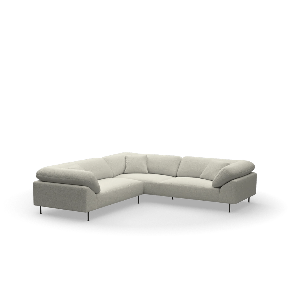The Woud Collar Sectional 5 takes Meike Harde's ingenious "soft hug" concept and scales it up into this sprawling modular configuration that basically becomes the gravitational center of any living space. The askew-arranged back cushions create this relaxed, lived-in look that's way more appealing than those rigid, hotel-lobby sofas that make you sit up straight. What's clever about the design is how those delta-shaped side supports work with the continuous back cushion to create this "collar" effect - when you sink into the memory foam, it really does feel like being gently embraced rather than just sitting on furniture. The 281.5cm depth gives you serious real estate for stretching out, and the modular system means you can reconfigure things when you move or your needs change. The construction shows Harde's textile expertise - the plywood frame with metal connectors and elastic belt suspension creates this perfect balance between structure and give that makes long Netflix sessions actually comfortable. The black metal legs keep it from looking too soft or residential, adding this subtle industrial edge that works in both casual and more formal spaces. The FSC certification means you're not just getting comfort but responsible materials, and the wide range of available fabrics lets you dial in exactly the right look for your space. At a 40cm seat height, it hits that sweet spot where you can sink in without feeling like you need help getting back up. Woud continues this approach where German and Danish design sensibilities merge to create something that feels distinctly Nordic but with a more relaxed, lived-in quality than traditional Scandinavian minimalism. Their collaboration with Meike Harde reflects their willingness to push beyond the typical clean-lines-and-nothing-else approach, embracing comfort and tactile pleasure as valid design goals. The brand understands that the best furniture adapts to how people actually relax and socialize rather than forcing them into prescribed postures, and the Collar system exemplifies this philosophy perfectly - it's designed for real human bodies and real human habits rather than just looking impressive in photographs.