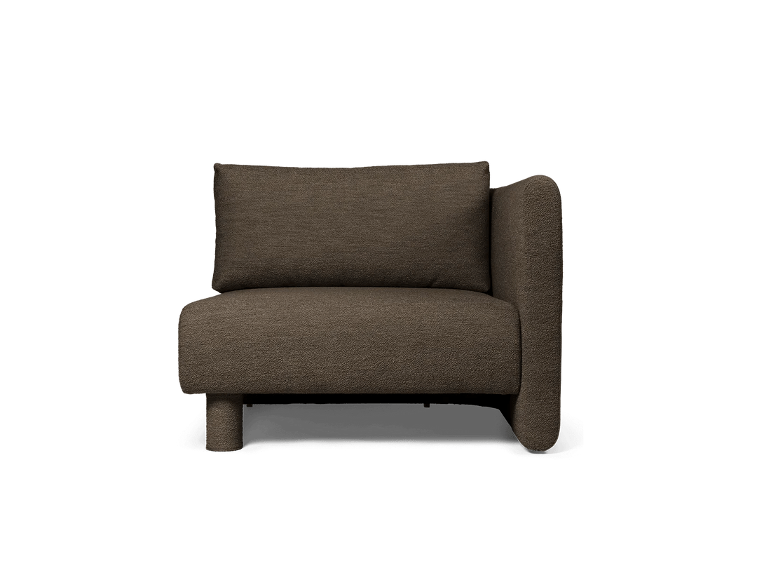 The Ferm Living Dase Sofa Armrest Right is one of those pieces that actually solves the whole "how do I make my sectional look intentional instead of just thrown together" problem. Since it's made to order, you get to pick from this really impressive fabric selection - everything from soft bouclé that's perfect for sinking into to rich velvet that makes your living room feel way more expensive than it actually was. What's clever about the design is how the back wraps around in this continuous curve, so it doesn't just look good from the front - it's actually attractive from behind too, which is huge if you're putting it in the middle of a room or have one of those open floor plans where people see your furniture from every angle. The proportions hit that sweet spot where it feels substantial enough to anchor a seating arrangement without being one of those massive pieces that completely dominates smaller spaces. The construction quality is where you really notice the difference from cheaper modular pieces - there's this solid wooden frame underneath with good foam that doesn't start feeling saggy after a few months of use. What's practical is how they include both the upholstered legs and these dark oak ones, so you can switch up the look depending on your mood or if you end up redecorating down the line. The 39.4-inch width gives you proper seating space without feeling cramped, and the modular connection system means you can start with just this piece and add on later when your budget allows. The back height provides actual support for longer conversations or movie nights, not just something to lean against. Ferm Living approaches modular furniture from Copenhagen with that Danish mentality where pieces should work with your life instead of requiring you to change how you live. They get that most people's living situations evolve - maybe you move, or have kids, or just get tired of the same setup - so their modular systems let you rearrange and expand without starting over from scratch. Since they started focusing on sustainable practices and FSC-certified materials, you're getting furniture that's built to last decades rather than just looking good in showrooms for a few years.