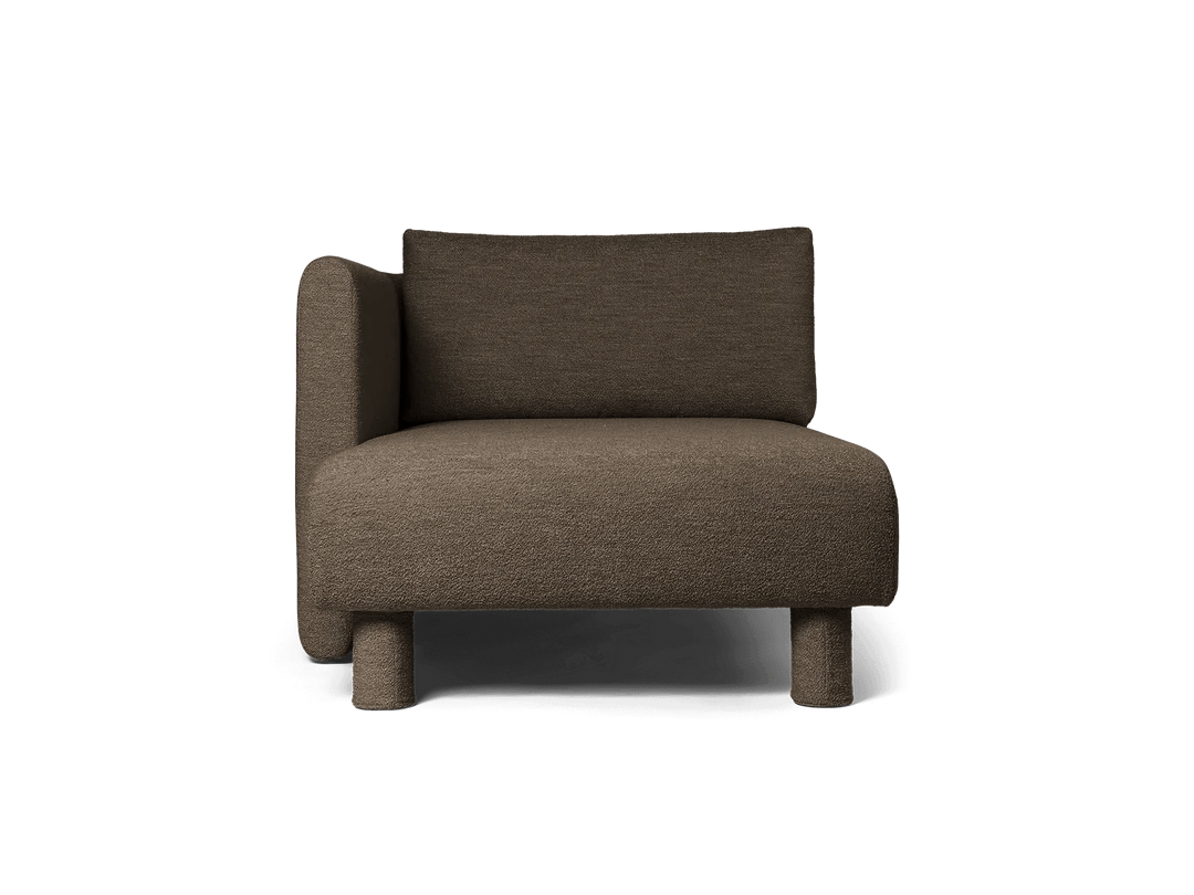 The Ferm Living Dase Sofa Chaise Longue Left is that piece you've been looking for when you want serious lounging space but don't want your living room to look like a furniture showroom. Since it's made to order, you get to choose from their full fabric collection - everything from soft bouclé that's perfect for curling up with a book to rich velvet that makes movie nights feel more luxurious. What makes this chaise work so well is how the extended 59-inch depth gives you room to actually stretch out properly, not just perch on the edge like those decorative chaises that look good but aren't meant for real use. The left-arm configuration works especially well in most room layouts since it lets you face into the room while you're lounging, and the same curved backrest design that runs through the whole Dase collection means it looks intentional whether you're using it solo or connecting it to other modules. The construction quality becomes obvious pretty quickly when you're using it for those long weekend reading sessions or afternoon naps. That FSC-certified wooden frame with quality foam padding supports your whole body without creating those uncomfortable pressure points you get with cheaper pieces. At 28.7 inches high with the signature wrapped backrest, it provides actual support for your back and head, not just something soft to lean against. What's practical is getting both the upholstered legs and dark oak ones included, so you can match whatever other Dase pieces you add later or just switch up the look when you feel like it. The 39.4-inch width means it doesn't overwhelm smaller spaces, but the generous depth makes it feel substantial and comfortable for people of different heights. Ferm Living designed the Dase collection around the reality that modern homes need furniture flexible enough to handle different situations - quiet mornings with coffee, afternoon work calls, evening relaxation, weekend hosting. They understand that a chaise longue should be more than just a statement piece; it should actually enhance how you use your space day to day. The modular approach means you can start with just this chaise and expand your configuration as your needs or space changes, without having to replace everything. Since they focus on sustainable practices and responsible production, you're investing in furniture that's built to adapt and last rather than just looking good for the first few years.
