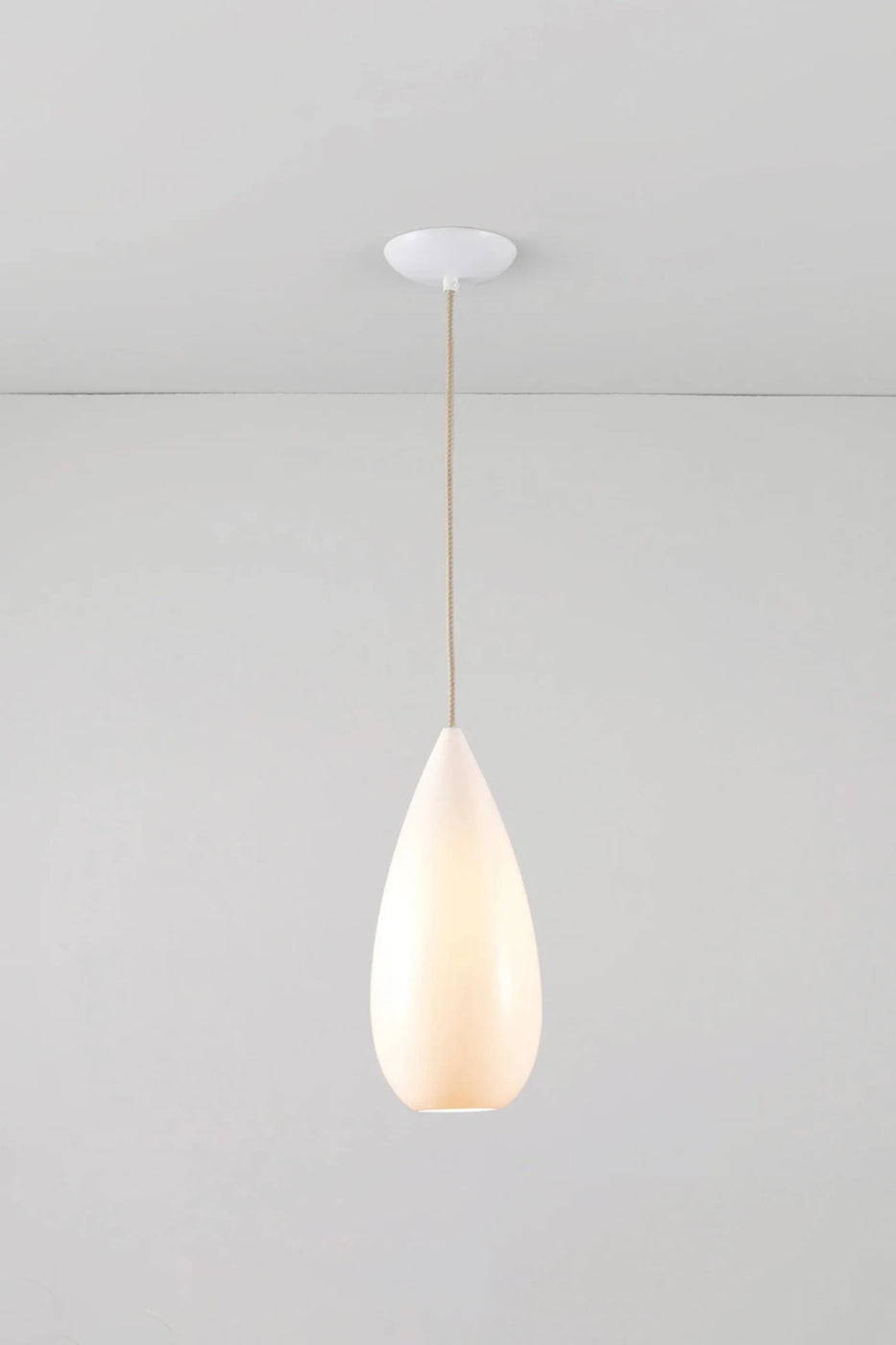 The Original BTC Drop Zero Pendant brings that perfect fusion of minimalist elegance and artisanal craftsmanship that transforms any space into something more thoughtfully illuminated. This isn't your typical pendant light - the elongated teardrop shape creates a distinctly sophisticated silhouette that feels both contemporary and timeless. Whether positioned over a dining table, in a bedroom, or as accent lighting in a living room, the Drop Zero delivers that coveted combination of elegant simplicity and warm, diffused light that makes spaces feel more refined. The slim profile at 5.5 inches wide provides substantial visual impact without overwhelming smaller spaces, while the 12.8-inch height creates graceful proportions that work beautifully in various interior styles. What makes this pendant exceptional is the meticulous handcraftsmanship that goes into each piece. Made at Original BTC's Stoke-on-Trent factory using traditional slip-casting methods, every shade undergoes careful drying, hand-finishing, and firing to achieve the translucent quality that makes bone china so special. Available in both natural white gloss and matte finishes, each option offers a different character - the gloss creating more dramatic light play while the matte provides subtle sophistication. The matching bone china ceiling rose and sand and taupe cotton braided cable create a cohesive design that feels intentionally curated. The dimmable capability means it adapts seamlessly from ambient lighting during relaxed moments to brighter illumination when needed. Original BTC approaches pendant lighting design from their heritage of British ceramic excellence, where traditional pottery techniques meet contemporary aesthetic sensibilities. Understanding that exceptional lighting should serve as both functional illumination and sculptural art, they've created the Drop collection to celebrate the inherent beauty of bone china while delivering superior light quality. Their philosophy centers on creating fixtures that enhance daily living through both reliable performance and timeless elegance, which is why the Drop Zero pendant represents the kind of investment piece that becomes more valuable to your space over time - providing the sophisticated lighting you need while serving as a lasting testament to the enduring appeal of handcrafted British design.
