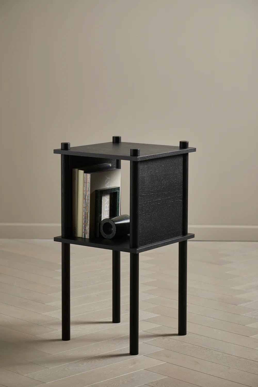 The Woud Elevate Shelf A transforms the basic concept of shelving into something that actually adapts to how you live rather than forcing you to work around predetermined configurations. Norwegian design duo Camilla Akersveen and Christopher Konings came up with this modular approach when they were young exhibitors constantly needing flexible display solutions - basically, they got tired of shelving that couldn't keep up with changing needs. The oak veneer construction gives each shelf this warm, substantial feel that works equally well displaying ceramics, storing office supplies, or holding plants, while the matt lacquered finish protects the wood without hiding its natural character. What's clever about the system is how the dowel connections let you stack and reconfigure everything without any tools - just tighten the dowels and you're done. Each shelf can handle up to 15 kg, which is plenty for most household items, and the 20.3 x 19.3 inch size hits that sweet spot where it's large enough to be useful but compact enough to work in tighter spaces. The individual packaging means you buy exactly what you need instead of committing to some predetermined configuration that might not work in six months when your storage needs change. The Lithuanian manufacturing maintains solid build quality while keeping costs reasonable for what you're getting. Woud operates with this Danish design philosophy where furniture should evolve with people's lives rather than just looking good in showrooms. Founders Mia and Torben Koed brought decades of furniture industry experience to creating pieces that solve real organizational challenges through thoughtful engineering and quality materials. Their collaboration with Akersveen and Konings reflects this commitment to designs rooted in Scandinavian simplicity but built for the flexibility that modern living actually demands - storage solutions that grow and change as your life does.