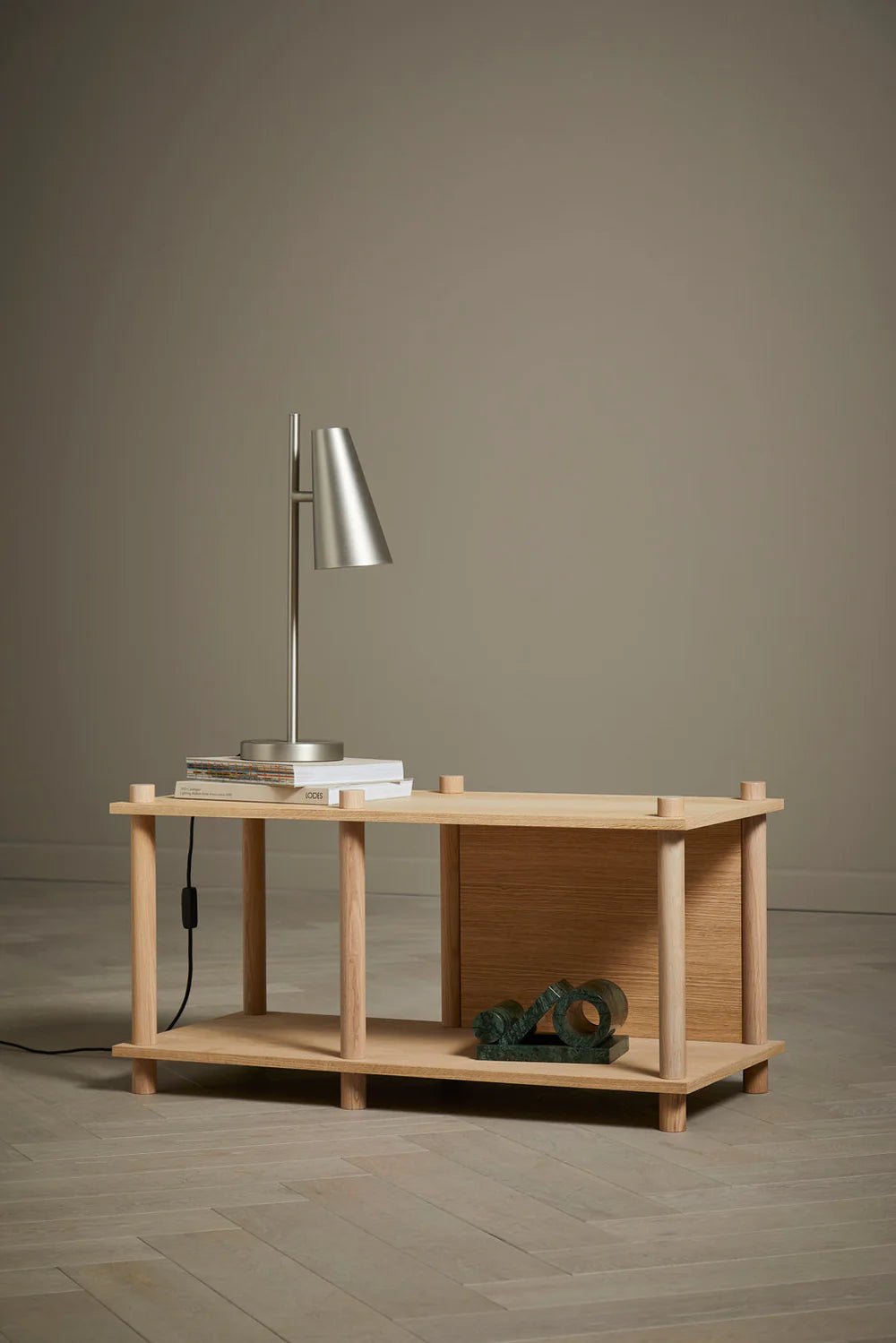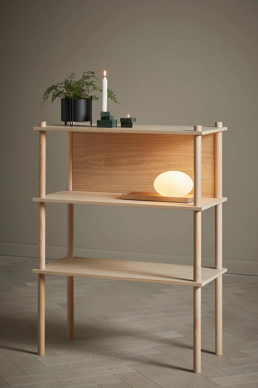 The Woud Elevate Side/Back Panel takes modular furniture and actually makes it make sense - no tools, no complicated instructions, just stack the oak veneer shelves and tighten the solid oak dowels until you get exactly the configuration that works for your space. Designers Camilla Akersveen and Christopher Konings figured out how to make something that's endlessly customizable without being a nightmare to assemble or reconfigure when your needs change. The oak finish has this warm, natural quality that works whether you're storing office supplies, displaying books and art, or organizing kitchen items. What's particularly smart is how the individual elements ship separately, so you can buy exactly what you need instead of being stuck with someone else's idea of the perfect shelf setup. The construction quality shows up in details like the metal bracket wall mounting system and the 15 kg weight capacity per shelf - this isn't flimsy modular furniture that wobbles when you put anything substantial on it. The solid oak dowels with metal threading create these really solid connections that tighten properly and stay put, while the oak veneer shelves feel substantial and well-finished rather than cheap or temporary. The system scales from small configurations perfect for apartments to large wall-spanning installations for offices or living rooms, and you can always add more pieces later when your storage needs evolve. The whole thing manages to look intentional and well-designed rather than obviously modular. Woud operates with this Danish design philosophy where furniture should adapt to how people actually live rather than forcing them to work around rigid systems. Founders Mia and Torben Koed built the brand around collaborating with talented designers who understand Scandinavian principles but aren't afraid to innovate on traditional approaches. Their focus on clean lines and functional beauty means creating pieces that enhance daily life through thoughtful design rather than just checking aesthetic boxes, ensuring their furniture works as hard as it looks good while maintaining that timeless Nordic quality that never feels dated or trendy.