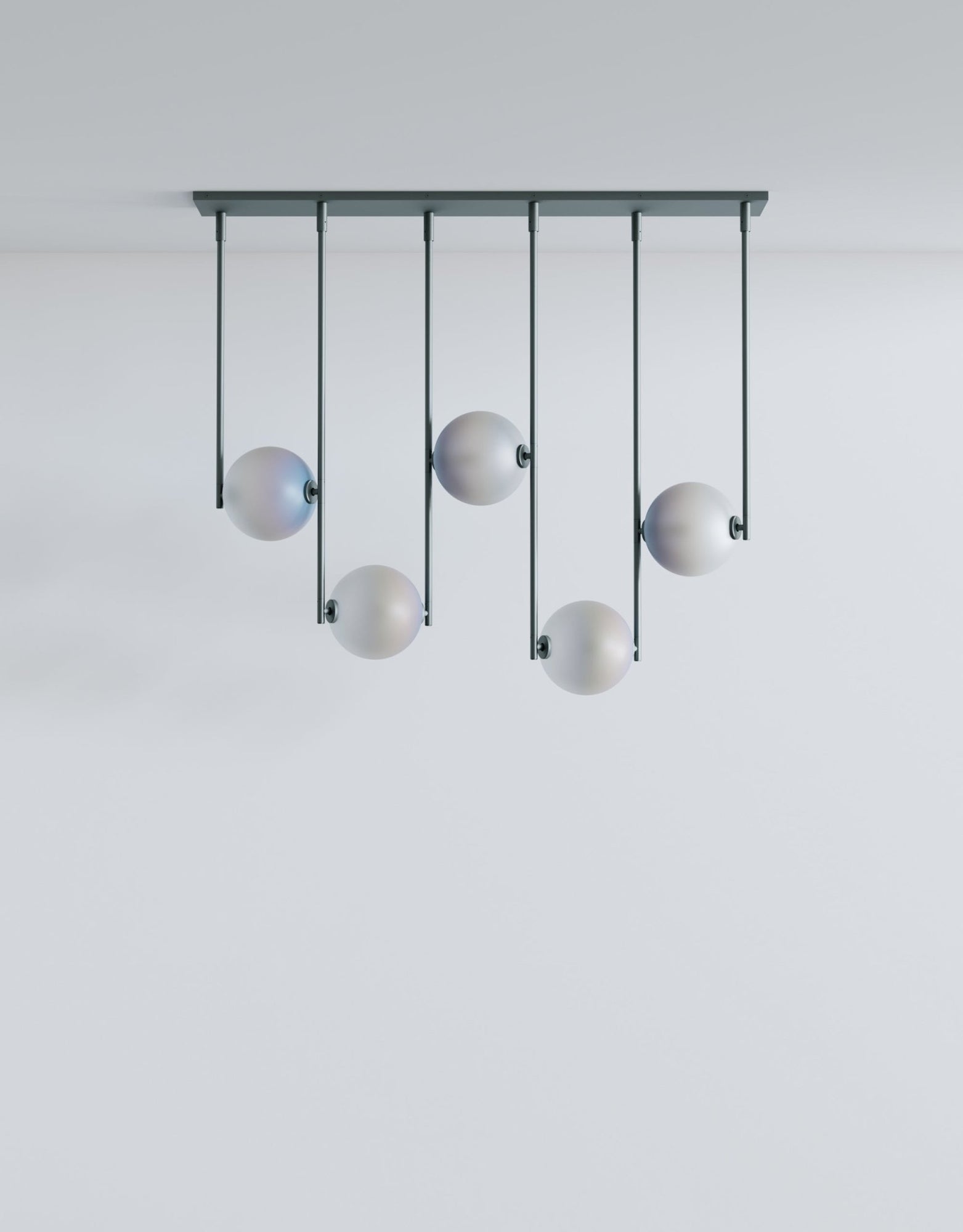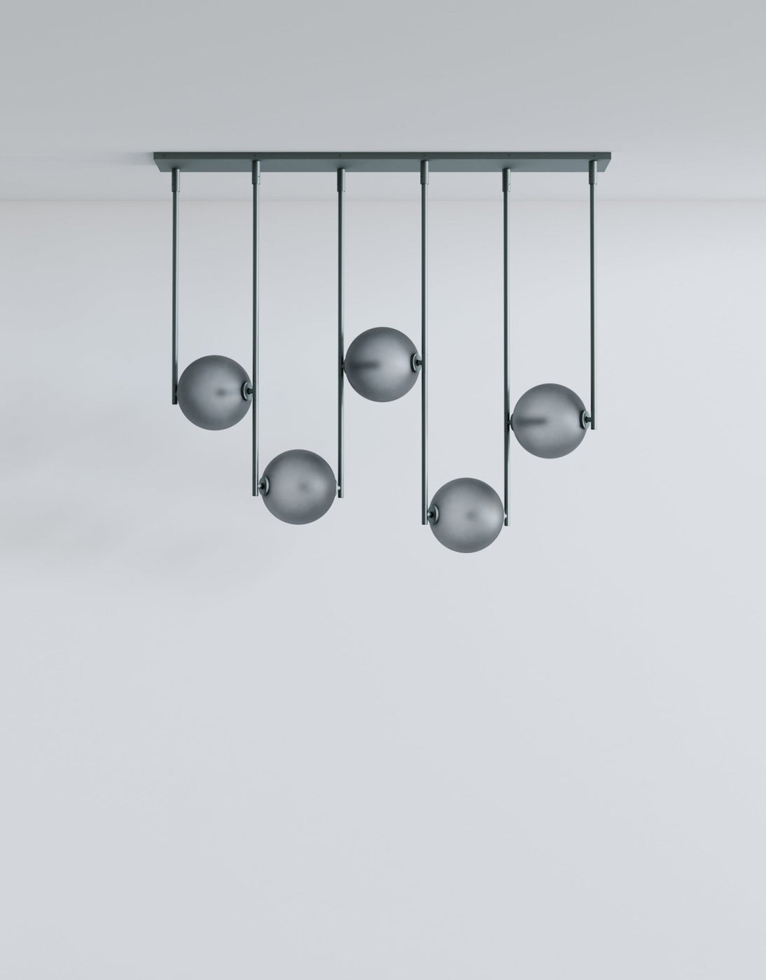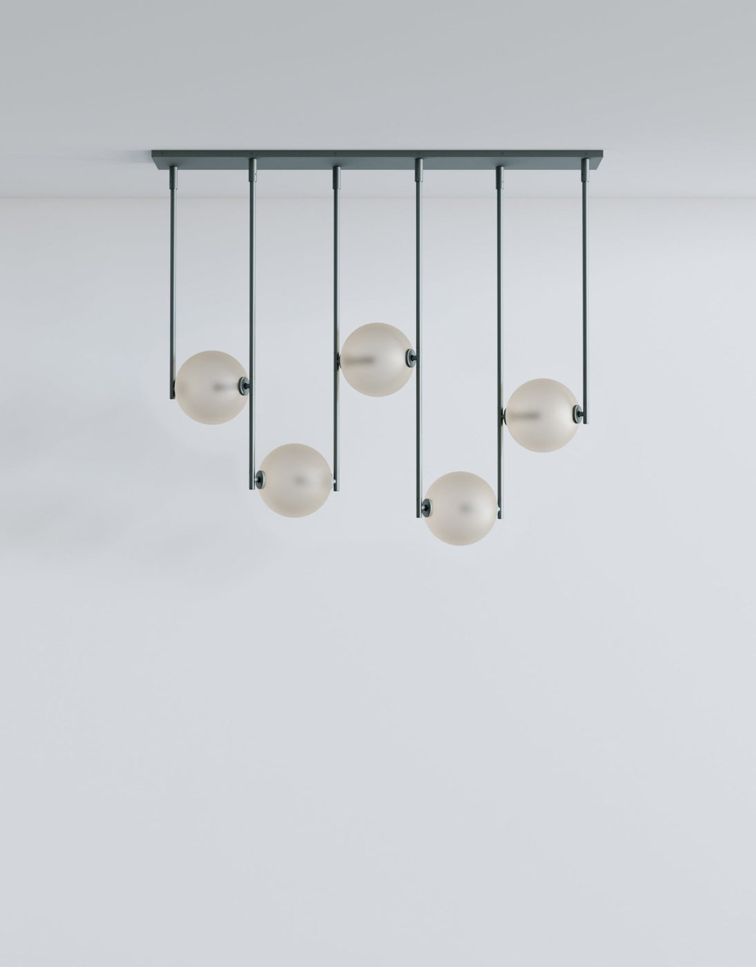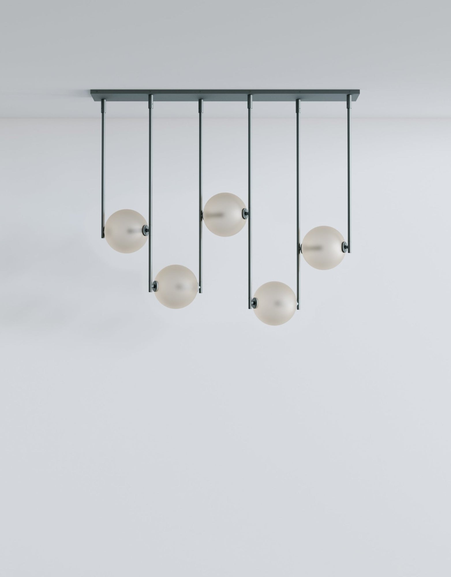The L&G Equalizer 5 Piece Linear bumps up from four to five glass globes arranged horizontally along anodized aluminum tubing, giving you more coverage for longer dining tables, extended kitchen islands, or lobby desks. The setup mounts to a 48-inch by 10-inch rectangular canopy instead of round ones, creating this clean linear installation that spans about 48 inches total. The fifth globe adds more distributed light across the length, useful when you need illumination that reaches the full span of a large table without dark spots at the ends. Like the 4-piece version, this gets custom-sized to your specifications during ordering, so you're not stuck with whatever standard length the manufacturer decided on. Five globes at 550 lumens each (2700K) give you solid task lighting across a wider area - enough for cooking, working, or dining without harsh shadows. The anodized aluminum finishes stay consistent across the Equalizer line: Olive, Bronze, Black, or Gold for hardware and canopy, with translucent glass globes in Smokey Green, Cream, Grey, Bronze, or Chameleon. The GY 6.35 bi-pin bulbs (5 watts, 24 volts, rated for 30,000 hours) come included, dimming's standard, and the fixture works with most international electrical systems. UL certification available on request, and like all Equalizer pieces, this gets built to order with a 10-12 week lead time. Ladies & Gentlemen Studio's Equalizer collection keeps expanding with different configurations since the 2016 launch with John Hogan. Dylan Davis and Jean Lee's Brooklyn studio treats lighting as customizable systems rather than one-size-fits-all products - the 5-piece linear works for situations where four globes aren't quite enough coverage but a radial configuration doesn't fit your space layout. The extra globe spreads light more evenly across length, preventing those dark zones at table ends that happen with underlit fixtures. Everything's customizable for materials, finishes, and sizing, so you're working directly with the studio to build something that actually fits your specific installation requirements.