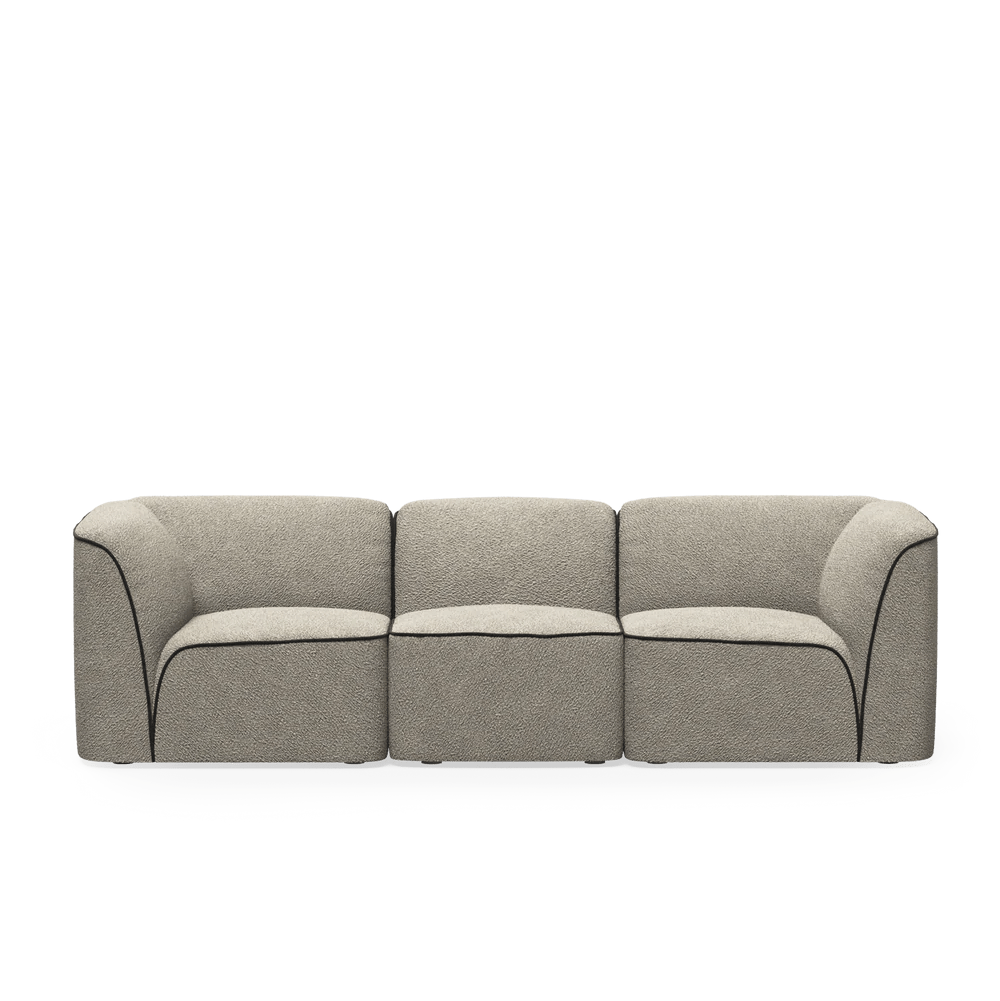 The Woud Flora 2.5-seater takes inspiration from how flower petals unfold and grow, which sounds like design-speak until you actually see how those curved shapes work in a living room. Spanish design duo YONOH (Clara del Portillo and Alex Selma) created these organic forms that somehow feel both sculptural and incredibly comfortable to sink into. The signature black piping traces the contours like botanical illustrations, emphasizing those petal-like curves without being too literal about the whole flower thing. What's smart about the proportions is how the low backrest and deep seat create this lounging feel that encourages you to actually relax instead of sitting upright like you're in a meeting. The modular approach means you can start with this 2.5-seater and add other modules later as your space or needs change - no commitment to a massive sectional you might regret in two years. The FSC-certified plywood construction and Lithuanian manufacturing show in details like the precise curves and solid connections that don't develop wobbles over time. The natural bouclé upholstery has this texture that feels substantial and cozy without looking too precious or high-maintenance. The metal sectional snaps make it easy to reconfigure or move, and the black painted wood legs provide enough visual weight to anchor the piece without competing with those flowing curves up top. Woud continues this approach where innovative design gets balanced with practical living requirements rather than just creating showpieces that photograph well. Their collaboration with international studios like YONOH reflects their commitment to pushing Scandinavian design beyond traditional boundaries while maintaining that focus on quality materials and thoughtful construction. The brand understands that the best modular furniture adapts to changing lifestyles instead of forcing you to build your entire living situation around one piece, which is why the Flora system works whether you're furnishing a studio apartment or a family room.