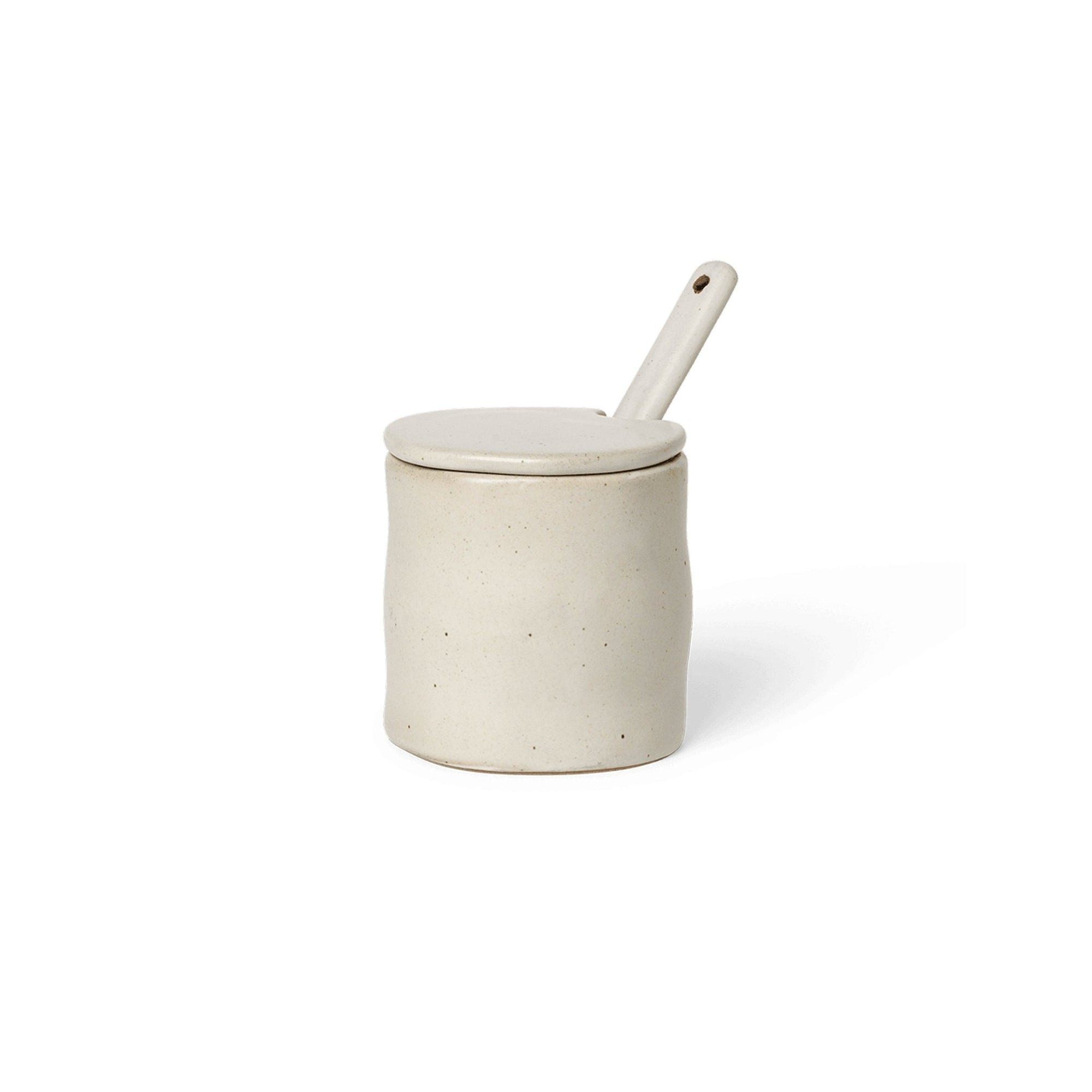 The Ferm Living Flow Jar with spoon is one of those simple kitchen pieces that somehow makes everything feel more organized and intentional. The curved glass design has this flowing, organic shape that's way more interesting than your typical storage jars, and the included wooden spoon means you're not constantly hunting around for something to scoop with. What's smart about this jar is how it works for so many different things - sugar, coffee, tea, spices, bath salts - basically anything you want to keep fresh and easily accessible. The proportions are just right for countertop storage without taking up too much real estate, and the glass lets you see exactly how much you have left of whatever's inside. The lid fits properly, which sounds basic but you'd be surprised how many jars have lids that don't actually seal well or slide around when you try to open them. The wooden spoon is attached with a leather cord that's long enough to be functional but not so long that it gets in the way, and the wood has this smooth finish that feels good in your hand. The glass is thick enough that it doesn't feel fragile, and the whole thing has a substantial weight that suggests it'll stick around for years. It's particularly great for things like coffee or sugar where you're constantly dipping in and out - having the spoon right there attached means one less thing to keep track of. Ferm Living designs from Copenhagen with that Danish approach where even the most basic kitchen storage needs to earn its place through both looks and function. They understand that the stuff you use every day should enhance your daily routines rather than just being purely utilitarian. Their philosophy focuses on creating pieces that make ordinary tasks feel a bit more thoughtful and enjoyable, using quality materials that develop character over time rather than showing wear.