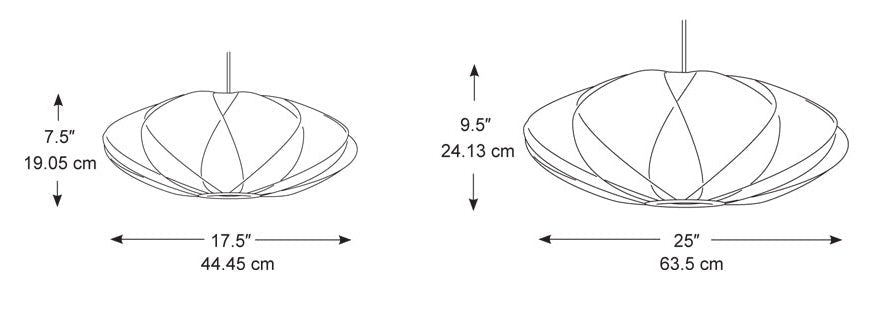 The Herman Miller Nelson® Bubble Pendant comes in two sizes, making it easy to fit different spaces. The small version is 17.5 inches in diameter and 7.5 inches high, while the medium size expands to 24.875 inches in diameter and 9.5 inches high. Additionally, each pendant includes a brushed nickel ceiling plate and a choice of a 10- or 20-foot cord. Whether installed over a dining table or in an entryway, it enhances any interior.