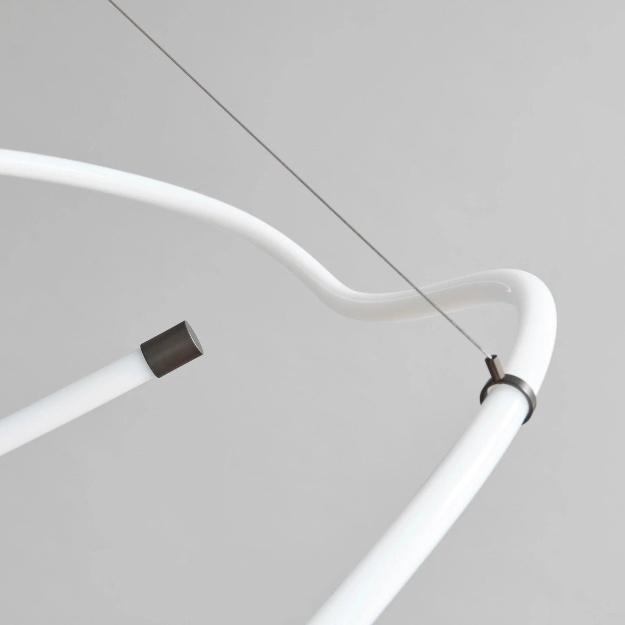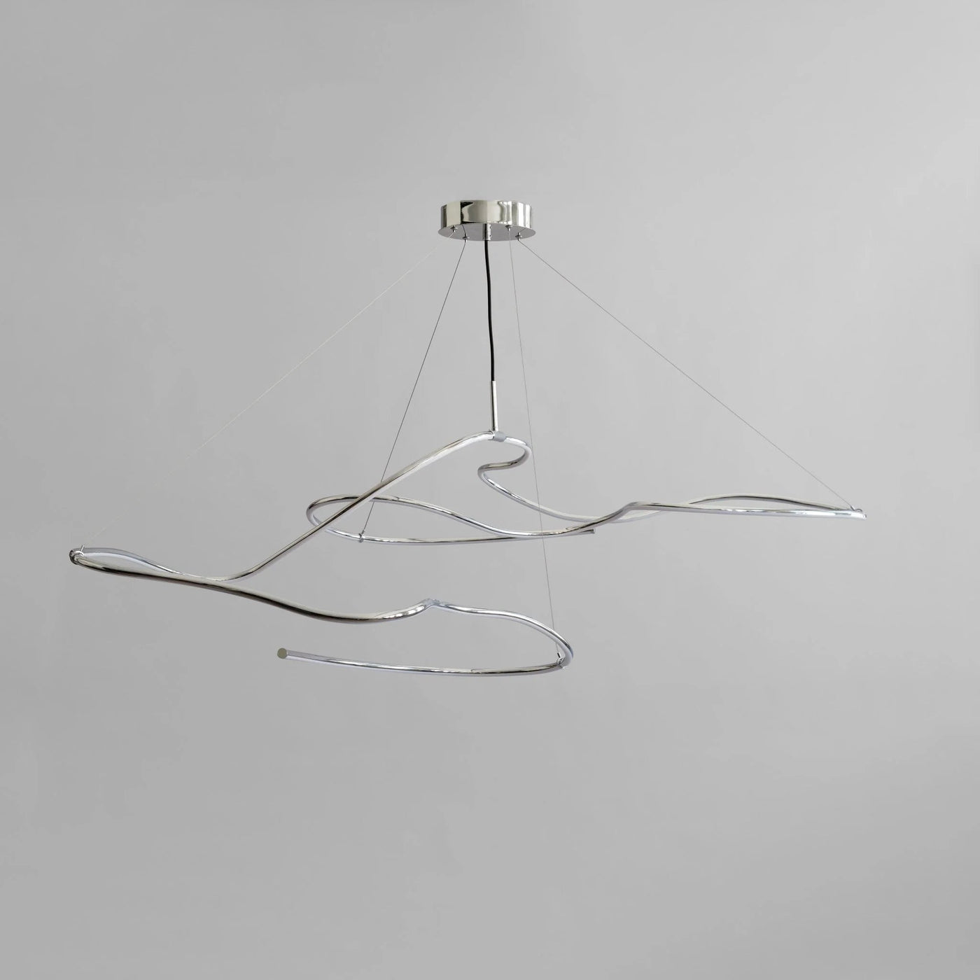 - Lampshade & main body: Metal (chrome finish) for the frame/structure, with white acrylic tubes for the light-guide.