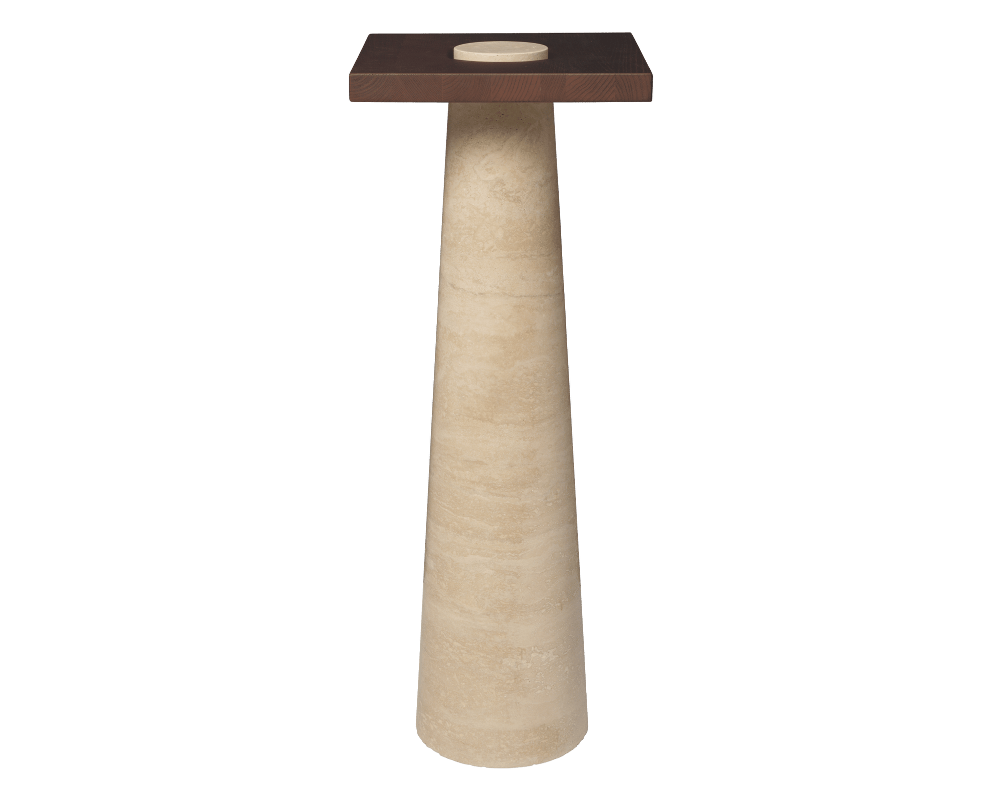Bring a gallery-like presence to your space with the Grova Pedestal, crafted from FSC™-certified solid ash and grounded by a solid travertine foot. The stone pierces through the tabletop in a striking architectural gesture, while the softly carved surface tapers gently towards the point where the travertine emerges. Inspired by mangrove ecosystems, where roots break through the water’s surface, the Grova Pedestal functions beautifully as both a side table and an artful statement piece.