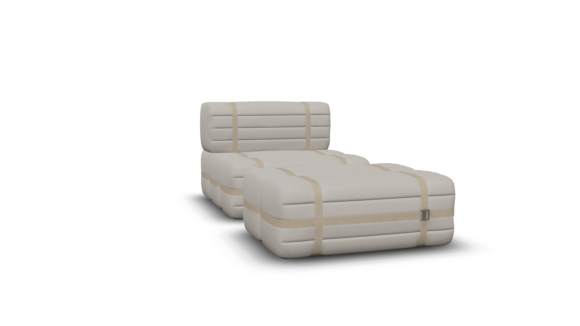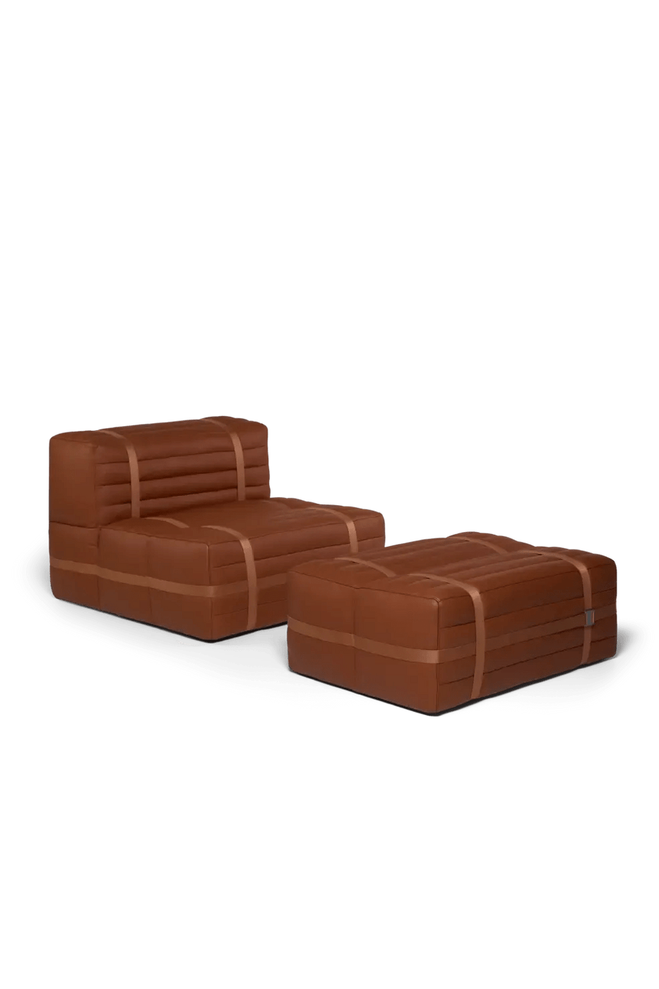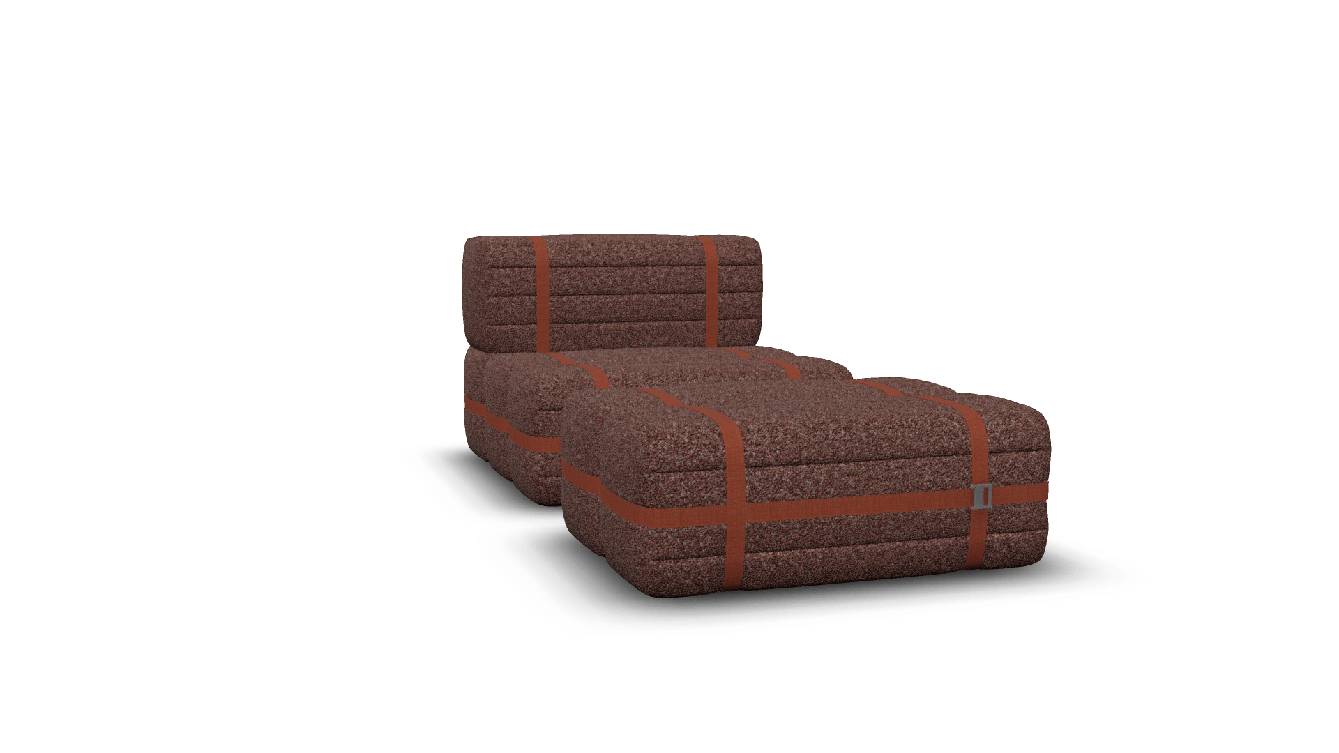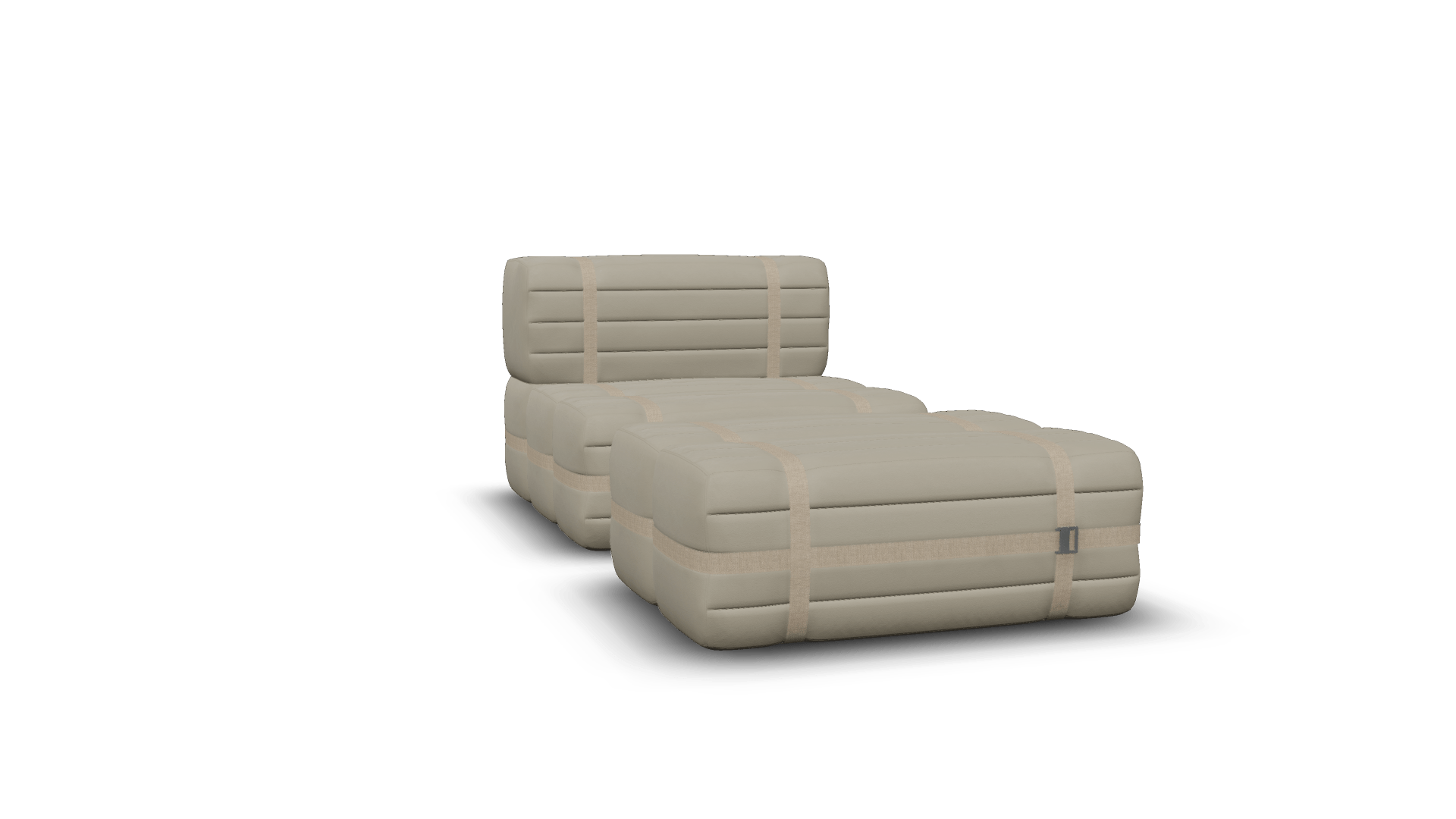 The Moooi Haybale Lounge Chair with Footstool came from Nicholas Baker's childhood running around North Carolina farms and thinking hay bales looked surprisingly comfortable if you could just make them, you know, actually comfortable. He took that stacked-bale shape and turned it into this chunky, quilted seating situation where oversized cushions get held together with thick cotton straps and metal buckles - the kind of detail that looks like it's doing real work instead of just decoration. The whole thing has this raw, tactile quality that doesn't try to hide what inspired it, and the quilted texture gives you these deep cushions that feel substantial when you sink into them. You can get it in boucle, leather, or this Wabi Sabi fabric that's meant to age and develop character instead of looking pristine forever, which honestly makes more sense for furniture you're actually going to use. The modular setup with the footstool means you can spread out however you want - full recline mode for weekend reading, or just the chair when you need actual seating. What works about the proportions is how the oversized scale makes it feel like real lounge furniture instead of just a regular chair trying too hard. The steel frame underneath handles the weight without any creaking or shifting, and the combination of webbing and foam gives you support in the right places without feeling like you're sitting on a park bench. The straps aren't just for show either - they actually hold the cushions in place so you're not constantly repositioning everything after someone gets up. The footstool matches the chair's height and depth properly, so when you put your feet up everything lines up instead of leaving you in that awkward half-reclined position cheaper furniture gives you. Moooi's been running out of Amsterdam since Marcel Wanders and Casper Vissers started it in 2001, and they've built a reputation for backing designers who want to make furniture that looks like something instead of blending into walls. Nicholas Baker fits their approach - he's a Brooklyn-based designer who started his studio with the idea that everyday objects should embrace what he calls "a delightful future," which in practice means furniture with actual personality. The company works with designers from all over rather than having an in-house team cranking out safe bets, so their catalog ends up looking pretty varied. They're expensive, but you're paying for Dutch manufacturing quality and designs that took actual development time instead of knocking off whatever's trending.