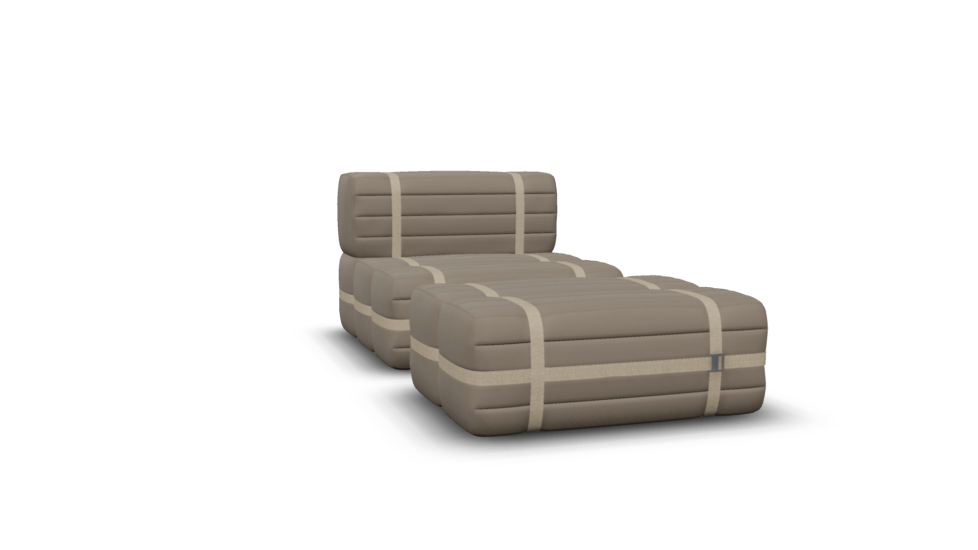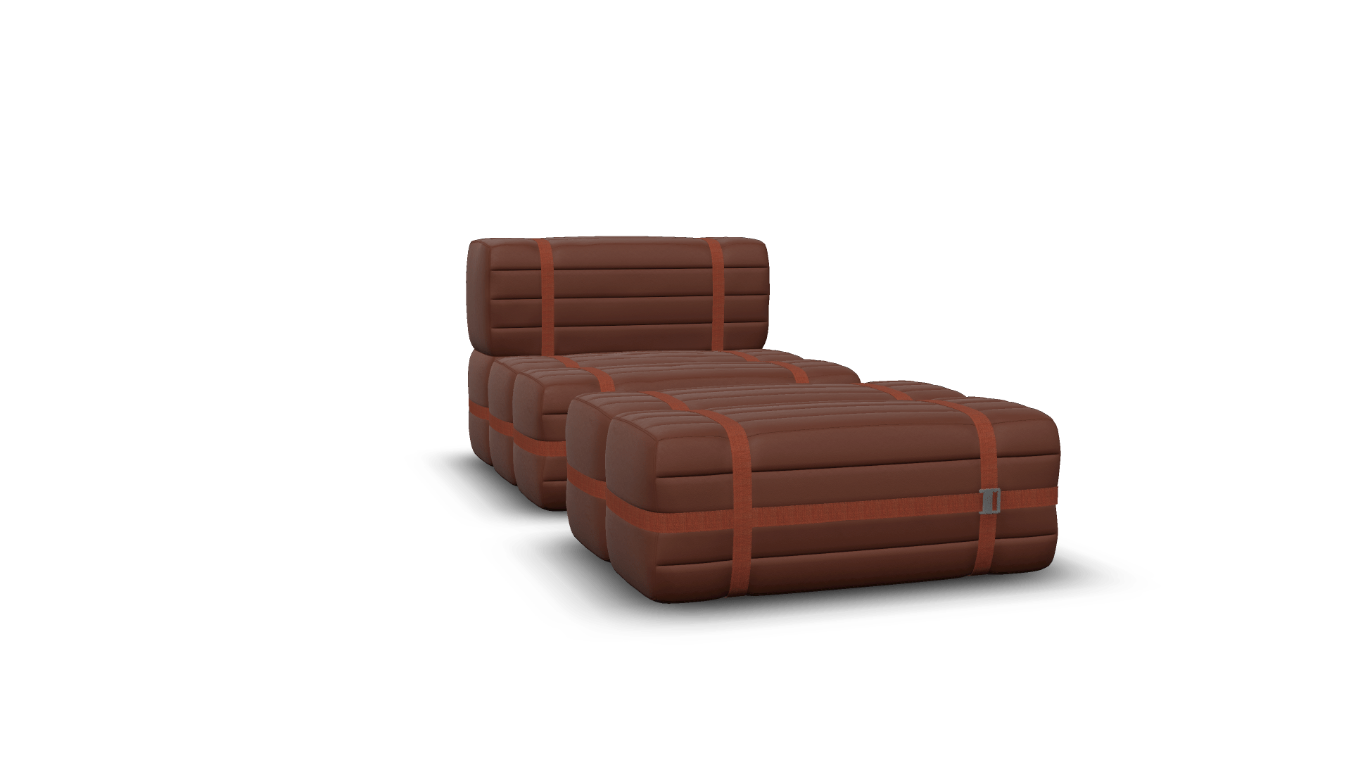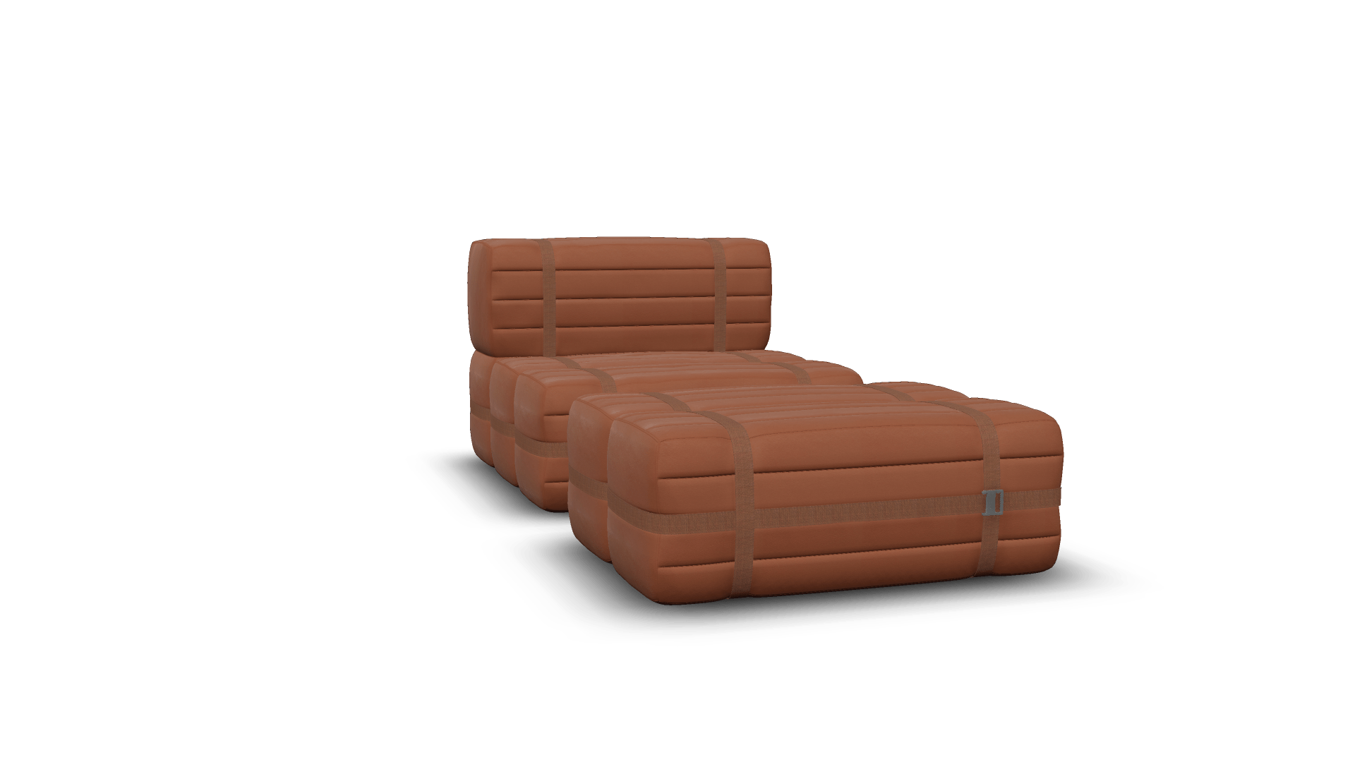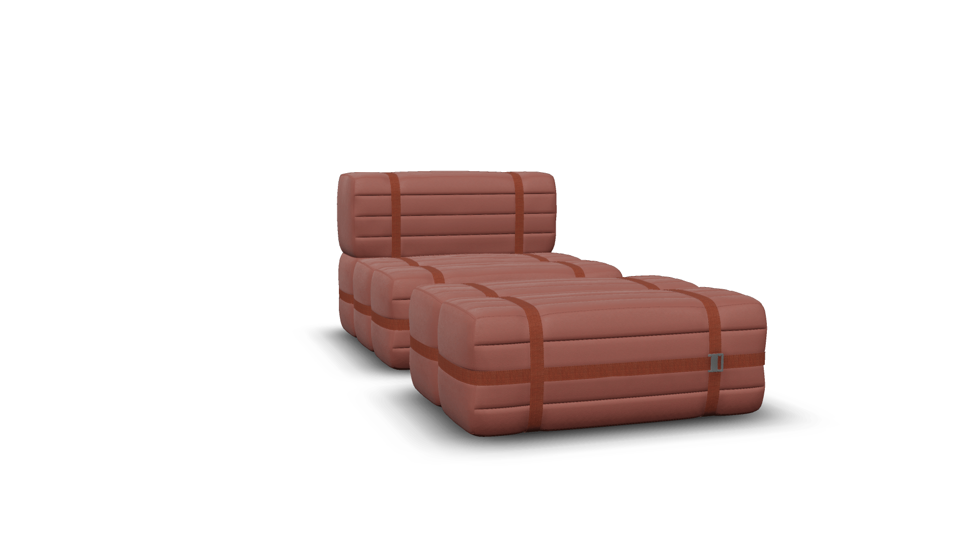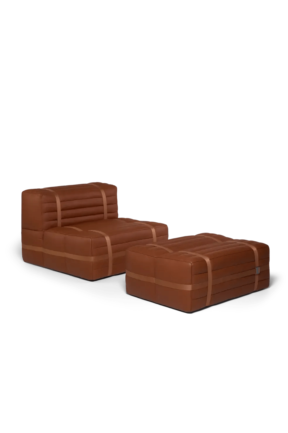 The Moooi Haybale Lounge Chair with Footstool came from Nicholas Baker's childhood running around North Carolina farms and thinking hay bales looked surprisingly comfortable if you could just make them, you know, actually comfortable. He took that stacked-bale shape and turned it into this chunky, quilted seating situation where oversized cushions get held together with thick cotton straps and metal buckles - the kind of detail that looks like it's doing real work instead of just decoration. The whole thing has this raw, tactile quality that doesn't try to hide what inspired it, and the quilted texture gives you these deep cushions that feel substantial when you sink into them. You can get it in boucle, leather, or this Wabi Sabi fabric that's meant to age and develop character instead of looking pristine forever, which honestly makes more sense for furniture you're actually going to use. The modular setup with the footstool means you can spread out however you want - full recline mode for weekend reading, or just the chair when you need actual seating. What works about the proportions is how the oversized scale makes it feel like real lounge furniture instead of just a regular chair trying too hard. The steel frame underneath handles the weight without any creaking or shifting, and the combination of webbing and foam gives you support in the right places without feeling like you're sitting on a park bench. The straps aren't just for show either - they actually hold the cushions in place so you're not constantly repositioning everything after someone gets up. The footstool matches the chair's height and depth properly, so when you put your feet up everything lines up instead of leaving you in that awkward half-reclined position cheaper furniture gives you. Moooi's been running out of Amsterdam since Marcel Wanders and Casper Vissers started it in 2001, and they've built a reputation for backing designers who want to make furniture that looks like something instead of blending into walls. Nicholas Baker fits their approach - he's a Brooklyn-based designer who started his studio with the idea that everyday objects should embrace what he calls "a delightful future," which in practice means furniture with actual personality. The company works with designers from all over rather than having an in-house team cranking out safe bets, so their catalog ends up looking pretty varied. They're expensive, but you're paying for Dutch manufacturing quality and designs that took actual development time instead of knocking off whatever's trending.