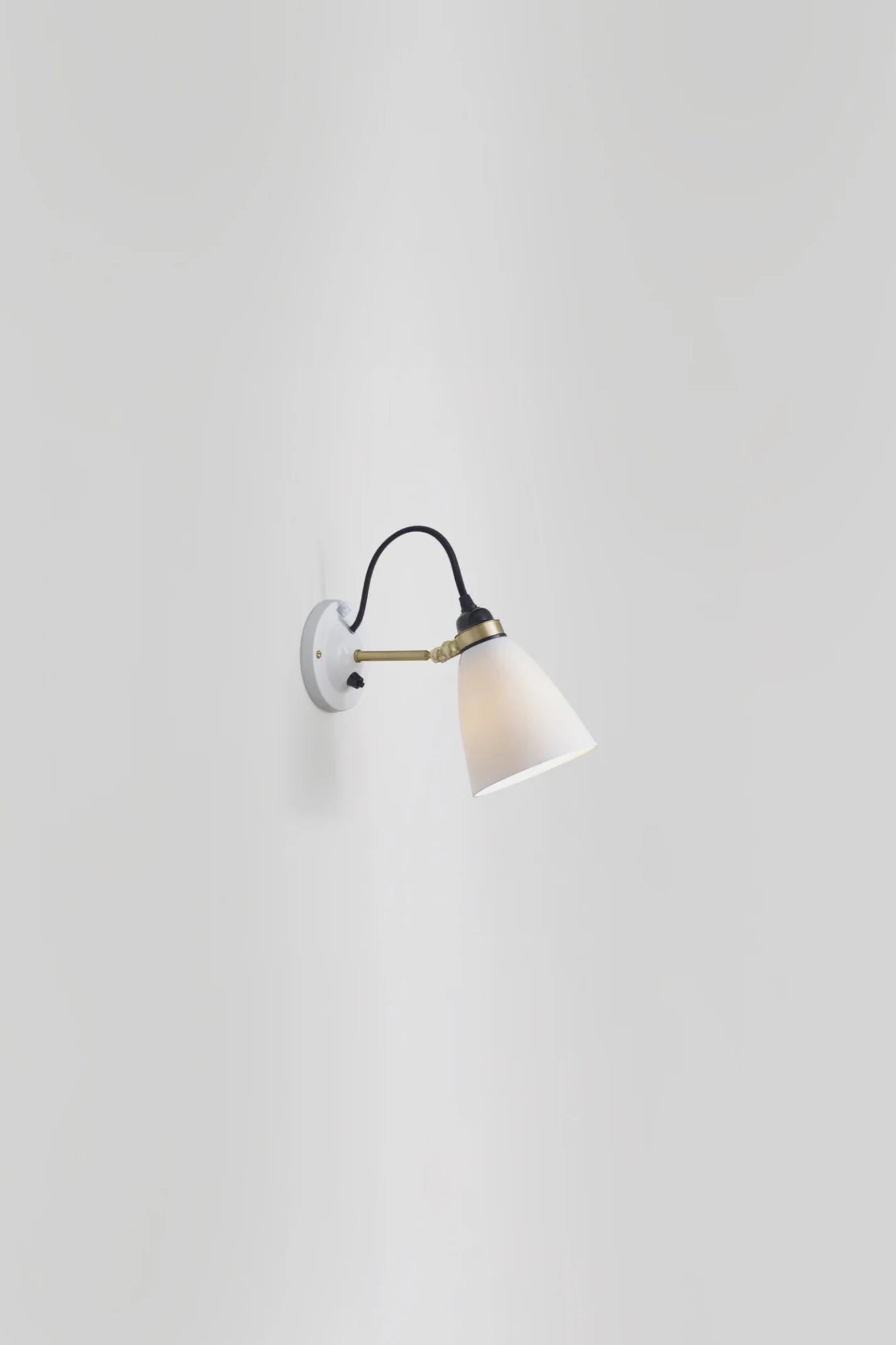 The classic Hector updated for Original BTCs 30th Anniversary with beautiful satin brass metal work that compliments the bone china wonderfully, adding a further touch of warmth to the Hector range. This is a practical, space-saving sconce that offers a subtle source of ambient light adding a warm inviting feel to the room.