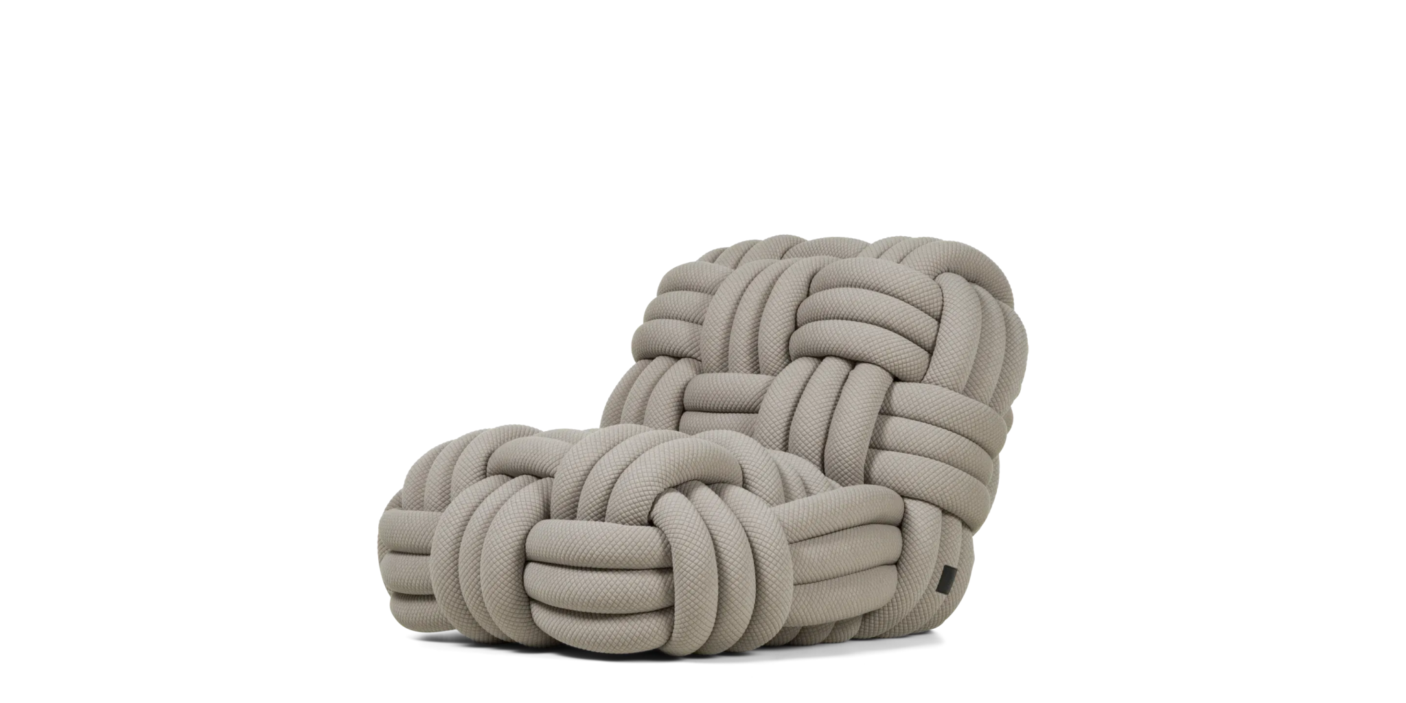 The Moooi Knitty Lounge Chair is what happens when Slovenian designer Nika Zupanc gets inspired by those massive ropes you see tying ships to docks and thinks "what if that was a chair?" The result is this oversized piece where everything's scaled up to almost absurd proportions - the yarn looks like actual nautical rope, thick as your wrist, woven in this chunky basket weave that somehow reads as both industrial and cozy at the same time. The whole thing is upholstered in Kvadrat's knitted fabric with this quilted diamond pattern that gives it serious tactile appeal. Available in 15 different colors, though Pearl Taupe ships immediately if you don't want to wait for custom options. What's interesting about the proportions is how they mess with your sense of scale - sitting in it makes you feel smaller in a way that's actually comforting rather than intimidating. The chair won the 2023 Best of Year Award in residential lounge seating, which makes sense once you actually sit in one. The oversized yarn folds create these natural pockets that kind of wrap around you, and the solid wood frame underneath means it's sturdy enough to handle the generous cushioning without any wobbling or creaking. The basket weave isn't just for show - it adds this texture that makes the chair interesting to look at from every angle, and honestly it's the kind of piece people want to touch when they walk past it. The seat height and depth work well for proper lounging with a book or laptop, not just perching awkwardly like some sculptural chairs that sacrifice comfort for looks. Zupanc clearly thought about actual use here rather than just making something that photographs well. Moooi operates out of the Netherlands with this reputation for taking ambitious design concepts and actually producing them at a level of quality that justifies the investment. Co-founded by Marcel Wanders, they've built their brand around pieces that challenge what furniture can be while still functioning in everyday spaces. Nika Zupanc has been working with them since her Lolita lamp in 2008, and they seem to give their designers room to push boundaries without watering down the original vision to make things easier to manufacture. The Knitty reflects that approach - it's technically complex to produce but they figured it out rather than compromising on what made the design special in the first place.