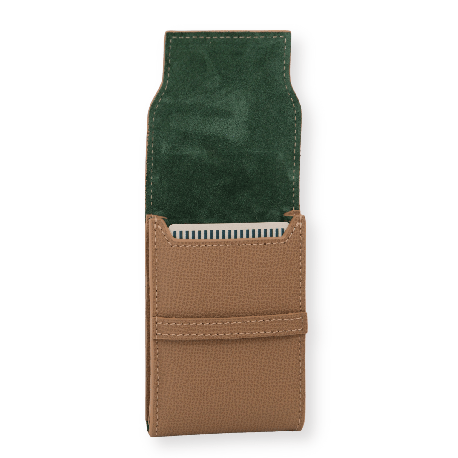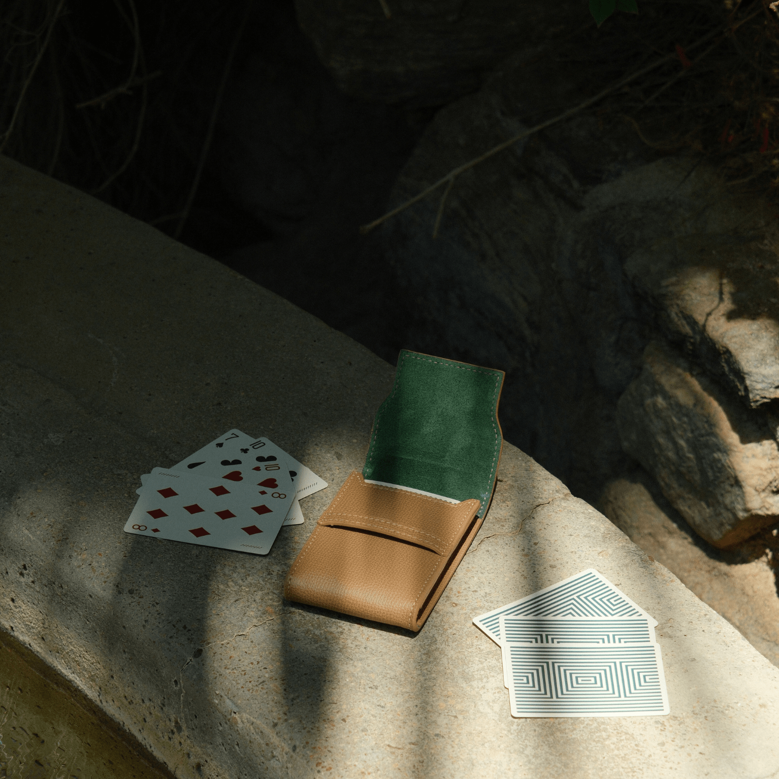 Elevate your game night with the Throwing Doubles Leather Playing Card Set, a luxury leather playing card set handcrafted in Los Angeles, California. This refined travel card set pairs timeless design with premium materials, featuring a structured Italian leather case and a rich brown suede interior that evokes cozy fireside evenings and alpine retreats.  Inside, you’ll find a custom Throwing Doubles playing card deck printed on 300 gsm premium linen-finish stock and made in the USA, making this set both tactile and durable for everyday play or travel.  Designed for the modern traveler, the Aspen Set combines Made in USA craftsmanship and classic card game essentials in a compact, elegant package — perfect as a thoughtful gift or a stylish addition to your collection of luxury travel games.
