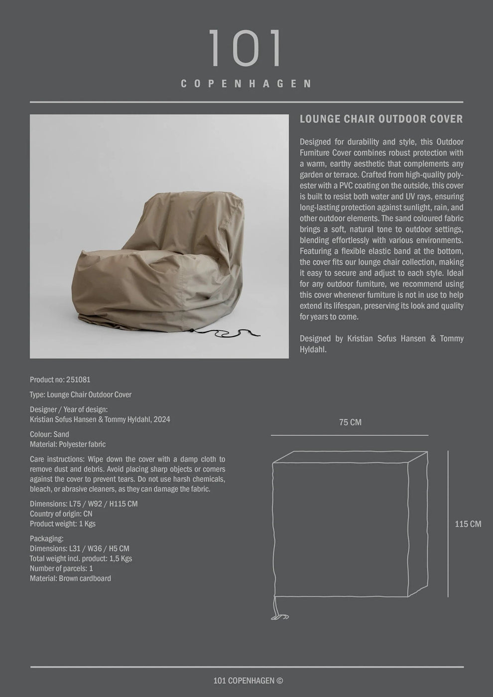 The 101 Copenhagen Lounge Chair Outdoor Cover brings protective sophistication to outdoor furniture care, delivering a refined cover that combines weather-resistant design elements with practical functionality while providing the perfect protection for lounge chairs that enhances garden spaces, patios, or any outdoor area with contemporary character. This outdoor cover understands that protective accessories should offer both visual elegance and genuine utility - providing beautiful forms and refined construction that elevate outdoor aesthetics while offering reliable protection for furniture against weather, UV exposure, or seasonal elements that makes outdoor investments truly lasting. The Lounge Chair Cover design achieves this through quality materials and protective proportions that create substantial coverage without overwhelming furniture arrangements, making it ideal for patios, terraces, garden spaces, or any outdoor location that benefits from protection with contemporary character and weather-resistant functionality. What's particularly appealing about this outdoor cover is how it manages to feel both practically protective and visually refined, providing the furniture protection that makes outdoor living effortless while adding contemporary sophistication that makes garden spaces feel professionally appointed and thoughtfully designed. The construction quality becomes evident when this cover handles seasonal weather while maintaining its refined appearance through daily interaction with sun, rain, and environmental exposure. The surfaces provide dependable protection for outdoor furniture, while the materials maintain their clean aesthetic through regular use and weather changes. The protective proportions work perfectly with various lounge chair configurations and outdoor needs - substantial enough to provide meaningful coverage but designed appropriately for outdoor settings that celebrate both function and contemporary aesthetic. The cover encourages practical protection rather than precious treatment - providing reliable functionality for everything from seasonal storage to daily weather protection without feeling cumbersome or overly utilitarian. The overall design manages to feel both substantial and elegantly protective, offering the kind of dependable functionality that makes outdoor accessories essential while maintaining the contemporary beauty that makes protected spaces feel intentional and sophisticatedly appointed. 101 Copenhagen approaches protective cover design with the understanding that outdoor accessories should enhance both furniture longevity and design sophistication, creating pieces that support outdoor living while contributing to the overall elegance and practical appeal of thoughtfully designed garden spaces. They recognize that the best protective covers serve both functional and aesthetic purposes while maintaining the contemporary design elements that make outdoor spaces feel systematically coherent and visually refined. The Lounge Chair Outdoor Cover collection reflects this philosophy perfectly, creating protection that honors contemporary design principles while providing the functionality and protective appeal that make outdoor accessories essential for how people actually want to maintain and preserve outdoor furniture in spaces that celebrate both practical utility and the enduring appeal of sophisticated, weather-conscious design.