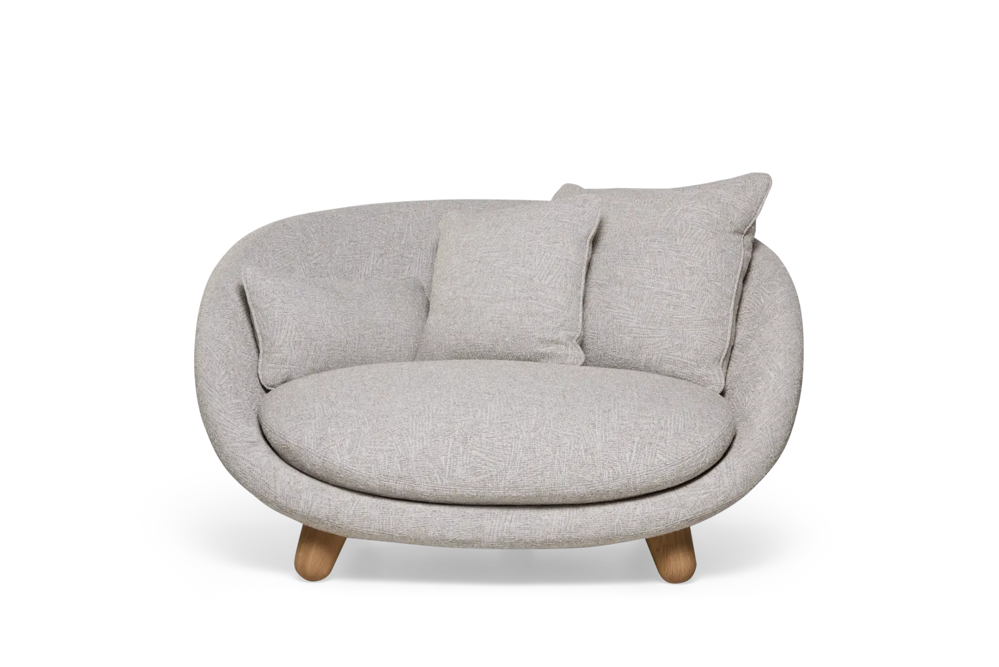 The Moooi Love Sofa is Marcel Wanders' take on creating seating that's literally named after what it's supposed to inspire - which sounds cheesy until you actually sit in one and realize the rounded, nest-like shape genuinely encourages curling up with someone or settling in solo with a book and staying there for hours. Designed back in 2013, it has these generous dimensions and soft curves that wrap around you without feeling oversized or awkward in most living rooms. The molded foam over a steel frame gives it this plush, enveloping quality while the ash wood legs in either cinnamon or white wash finish keep the visual weight from getting too heavy. Available in both standard and high back versions depending on how much cocooning you want, and it comes with those back pillows that actually add to the comfort rather than being decorative accessories you immediately remove and toss aside. What makes this work beyond just the romantic concept is how the proportions genuinely accommodate two people comfortably without forcing you into each other's space or leaving one person hanging off the edge. The seat depth and width provide enough room for sprawling solo or snuggling up together, with that bird's nest shape creating natural boundaries that feel intentional rather than restrictive. The steel frame construction means this isn't going to start sagging or losing its shape after a year of daily use - Wanders designed it around the idea that "true love is long-lasting" so the furniture should be too. The molded foam maintains its support over time better than loose cushions that need constant fluffing and rearranging. Available in over 566 different fabric options, so you can go classic and neutral or choose something bold that makes the sofa even more of a statement piece. Moooi operates out of the Netherlands with Marcel Wanders as co-founder and artistic director, bringing this whole philosophy about creating "environments of love" through design - which could sound pretentious but actually translates to furniture that feels good to use and be around daily. Wanders has this mission to "live with passion and make our most exciting dreams come true," which explains why pieces like the Love Sofa prioritize emotional connection and comfort over just looking impressive. The brand's known for quality construction methods that back up the creative vision - proper frames, durable materials, upholstery that holds up over years rather than months. They work with designers who understand that sofas need to handle real life, so they engineer accordingly while maintaining that distinctive character that makes Moooi furniture recognizable and desirable.