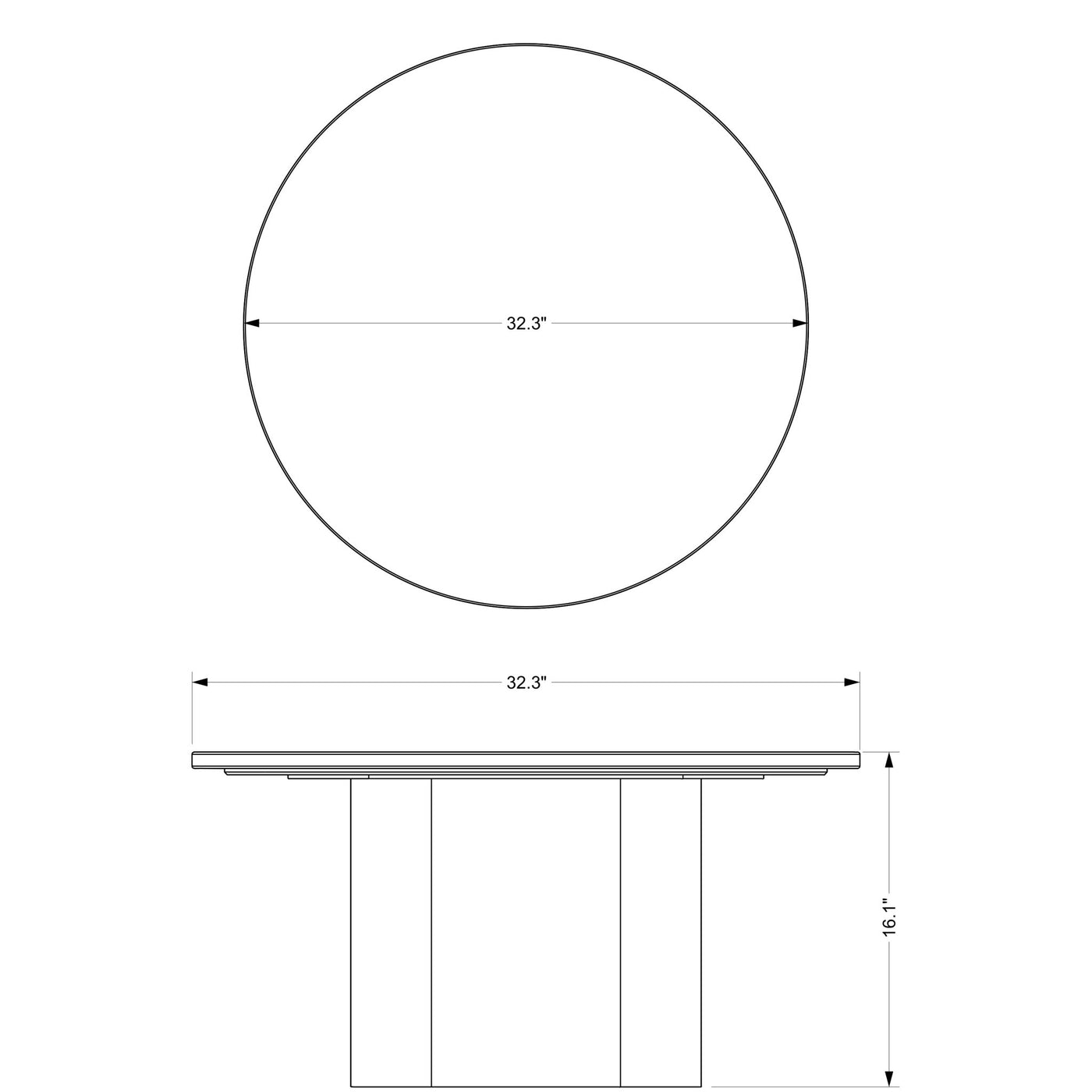 - W: 32.25 in × D: 32.25 in × H: 16 in