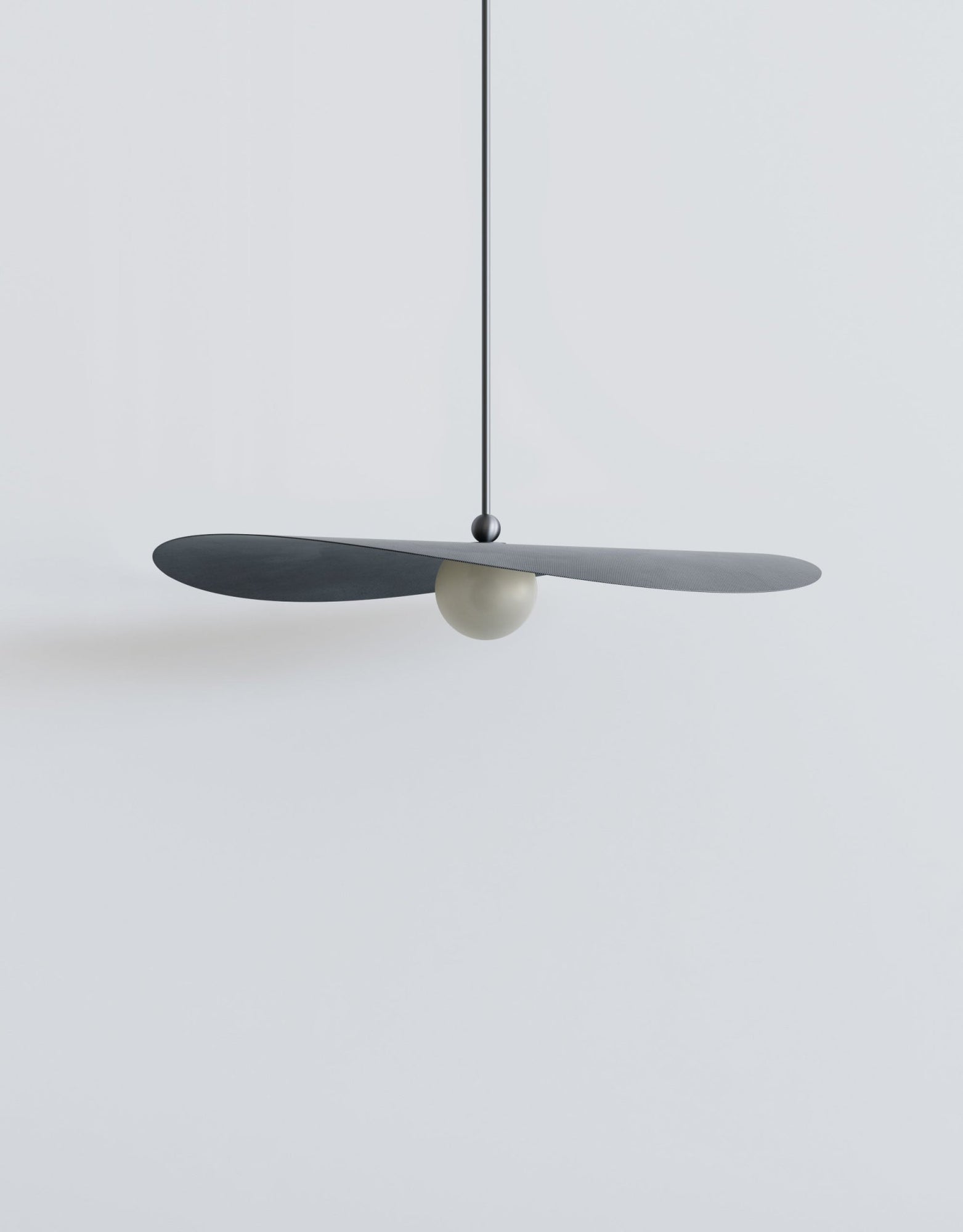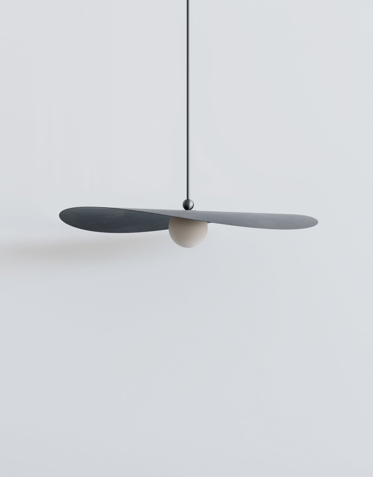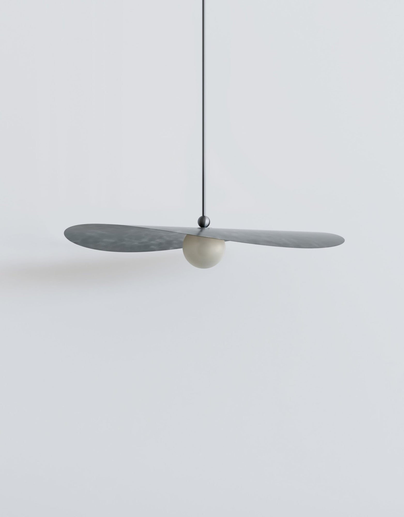The L&G Myrna Pendant brings that layered lighting approach people are always trying to achieve with multiple fixtures - except here you get it all in one piece. The shade and globe work together to create both ambient wash and focused light, so you're not stuck with harsh overhead glare or that dim "romantic lighting" that's actually just too dark to see anything. Hang it over your dining table and you get enough light for dinner without that interrogation-room vibe, or suspend it in an entryway where it makes an actual statement instead of just filling the ceiling box. The horizontal orientation is what makes it interesting - most pendants are vertical and kind of boring, but this one has movement and dimension that changes depending on where you're standing. Available in small, medium, and large, so whether you're working with a breakfast nook or a grand foyer, there's a proportion that actually fits. The customization here is where you can really dial things in exactly how you want them. Hardware comes in brushed brass for that warm traditional feel, or blackened brass if you want something that develops character as it ages - neither one is going to look dated in five years. Shade options range from basic opaque white (which honestly creates beautiful diffused light) to perforated smoke that throws cool patterns, plus those specialty brushstroke finishes in brass or stainless steel that catch light differently throughout the day. The glass globe choices - marbled white, glacier, or amber - let you control the warmth and quality of light in ways that actually matter when you're living with it daily. You specify the overall length when ordering, so it hangs exactly where you need it without weird adjustments later. Takes standard E26 bulbs up to 25 watts, needs a dimmable bulb and wall dimmer. Weighs between 5-9 pounds depending on whether you go metal or glass shades, so standard ceiling boxes handle it fine. L&G is a Brooklyn studio that treats lighting like sculpture that happens to be functional. They're not cranking out the same designs everyone else makes - there's actual thought behind how materials age, how light moves through space, and how proportions work in real rooms. The Myrna collection shows that approach clearly: every option serves a purpose, the quality is there for long-term use, and you end up with something that feels custom rather than mass-produced.