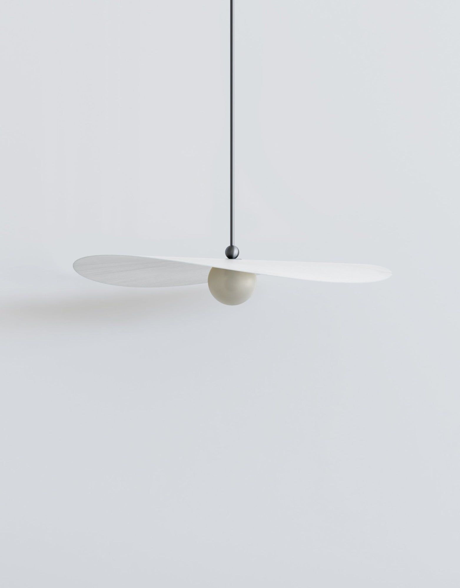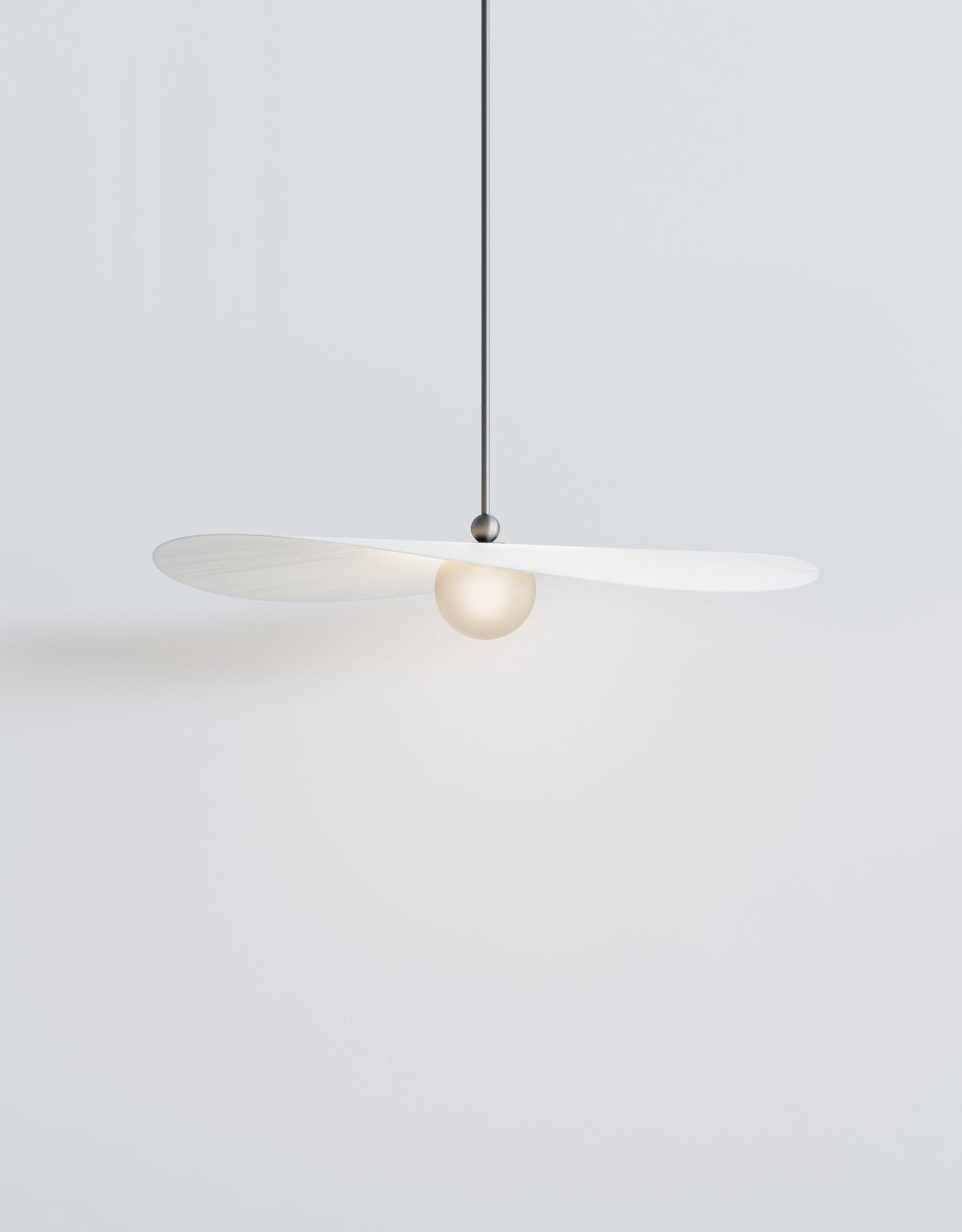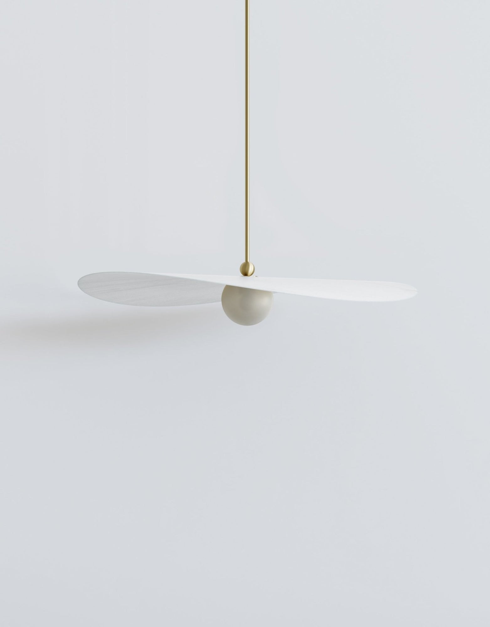 The L&G Myrna Pendant brings that layered lighting approach people are always trying to achieve with multiple fixtures - except here you get it all in one piece. The shade and globe work together to create both ambient wash and focused light, so you're not stuck with harsh overhead glare or that dim "romantic lighting" that's actually just too dark to see anything. Hang it over your dining table and you get enough light for dinner without that interrogation-room vibe, or suspend it in an entryway where it makes an actual statement instead of just filling the ceiling box. The horizontal orientation is what makes it interesting - most pendants are vertical and kind of boring, but this one has movement and dimension that changes depending on where you're standing. Available in small, medium, and large, so whether you're working with a breakfast nook or a grand foyer, there's a proportion that actually fits. The customization here is where you can really dial things in exactly how you want them. Hardware comes in brushed brass for that warm traditional feel, or blackened brass if you want something that develops character as it ages - neither one is going to look dated in five years. Shade options range from basic opaque white (which honestly creates beautiful diffused light) to perforated smoke that throws cool patterns, plus those specialty brushstroke finishes in brass or stainless steel that catch light differently throughout the day. The glass globe choices - marbled white, glacier, or amber - let you control the warmth and quality of light in ways that actually matter when you're living with it daily. You specify the overall length when ordering, so it hangs exactly where you need it without weird adjustments later. Takes standard E26 bulbs up to 25 watts, needs a dimmable bulb and wall dimmer. Weighs between 5-9 pounds depending on whether you go metal or glass shades, so standard ceiling boxes handle it fine. L&G is a Brooklyn studio that treats lighting like sculpture that happens to be functional. They're not cranking out the same designs everyone else makes - there's actual thought behind how materials age, how light moves through space, and how proportions work in real rooms. The Myrna collection shows that approach clearly: every option serves a purpose, the quality is there for long-term use, and you end up with something that feels custom rather than mass-produced.