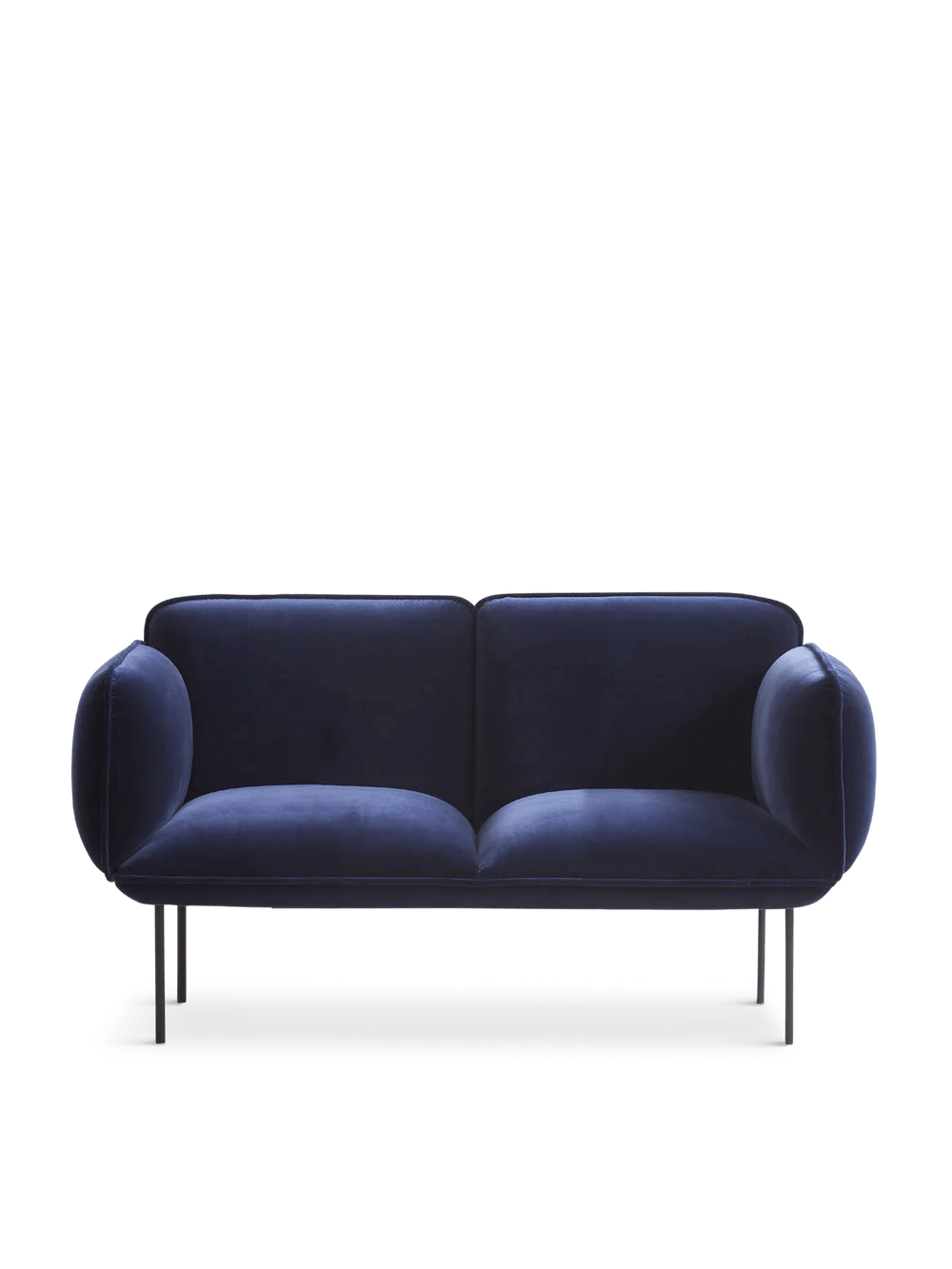 The Woud Nakki Small 2-Seater brings Mika Tolvanen's signature approach to compact living spaces where you want real seating for two people without eating up the entire room. At 62.9 inches wide compared to the regular version's 70.8 inches, this gives you genuine loveseat comfort in spaces where every inch matters - perfect for apartments, smaller living rooms, or anywhere you need intimate seating that doesn't dominate the furniture layout. The same generous padding and firm support that makes the full-size Nakki series so popular gets compressed into these smarter proportions, so you're not sacrificing comfort for space efficiency. The contrast between the structured square frame and those soft, rounded cushion edges creates this welcoming personality that makes any room feel more lived-in and approachable. What's particularly clever about the construction is how the plywood frame with elastic belts and memory foam maintains that supportive structure even in the smaller format - you're getting real furniture quality, not scaled-down compromise seating. The black painted metal legs keep the visual weight light despite all that padding, so it feels substantial when you're sitting but doesn't look heavy in the room. Being made to order means you can choose from Woud's full range of fabrics and leathers to match your existing space, and the 17.9-inch seat height works well for most people without feeling too low or too high. The firm padding holds its shape over time instead of developing those sad compressed spots that cheaper furniture gets after regular use. Woud continues this approach where Finnish design sensibility meets Danish manufacturing excellence, creating pieces that work for how people actually live rather than just looking good in showrooms. Their collaboration with Mika Tolvanen reflects this commitment to making furniture that enhances daily life through thoughtful proportions and honest materials. The brand understands that the best small-space furniture doesn't feel like a compromise - it should work so well that you forget it's compact, providing exactly what you need without any unnecessary bulk or complicated features that don't add real value to how you use the space.