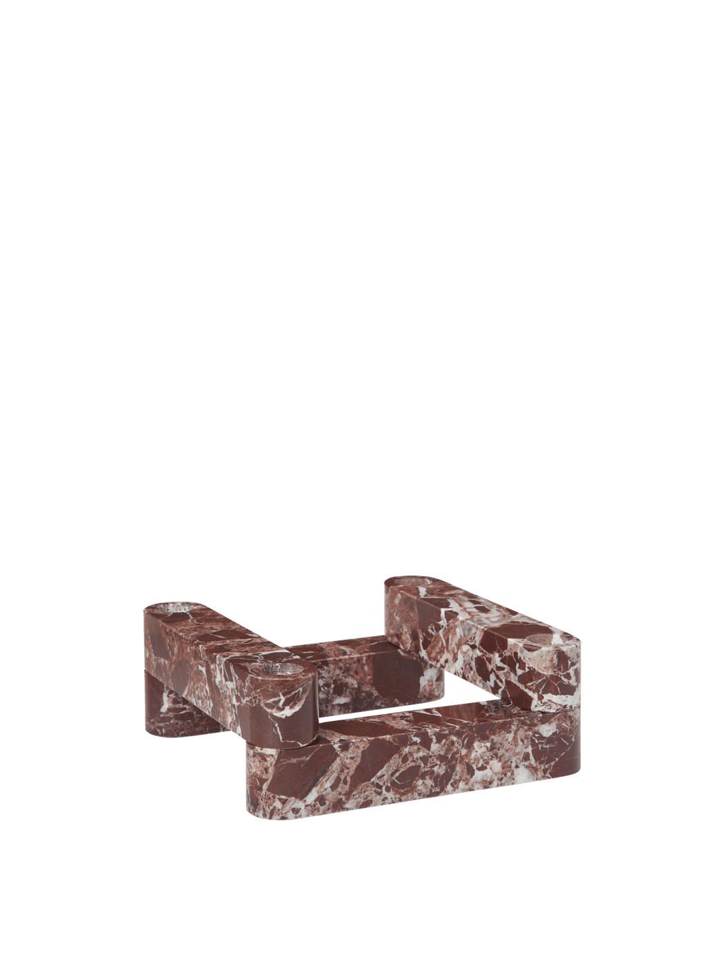 The Newel Modular Candle Holder draws inspiration from architectural forms, where brickwork functions as both structure and ornament. Carved entirely from rich red marble, it consists of four modular, stackable units designed to hold standard taper candles. Its deep hue adds warmth and elegance, making it a striking centrepiece for holiday gatherings or a contemporary interpretation of the classic Advent wreath.