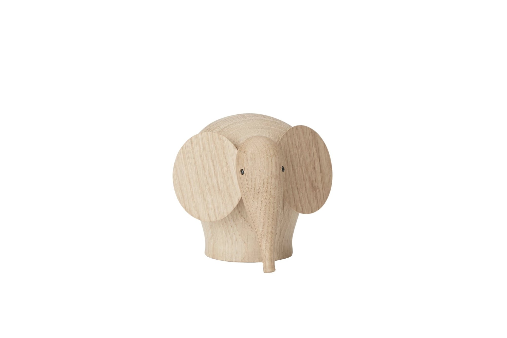 The Woud Nunu Elephant brings that gentle, wise personality that elephants are known for into this beautifully simple wooden sculpture. Designer Steffen Juul really nailed the essence of what makes elephants so appealing - that thoughtful, almost knowing expression that comes through even in this minimalist oak form. The head tilts to either side just like the real Hibo hippo, so you can adjust Nunu's mood throughout the day, giving him a curious look when you're working or a contemplative expression during quiet moments. Those deep black inset eyes have this soulful quality that makes him feel more like a companion than just decoration. Available in mini, small, and medium sizes, ranging from about 5 inches up to nearly 8 inches long, so you can choose what works for your space or collect the whole elephant family. What's really appealing about Nunu is how he manages to capture elephant characteristics without being overly literal or cutesy about it. The matt lacquered solid oak construction feels substantial and develops this nice patina over time that makes him look even better with age. The proportions are just right - chunky enough to feel elephant-like but streamlined enough to work in contemporary spaces. He pairs beautifully with his friends Hibo the Hippopotamus and Rina the Rhinoceros for this whole Danish wooden safari situation, but honestly works just as well flying solo on a bookshelf or desk where he can quietly observe your daily routine. The fact that the head detaches means you can pack him safely for moves or just enjoy repositioning him for different looks. Woud continues their approach of creating objects that form emotional connections through designer Steffen Juul, who's been perfecting this interaction between design and user since founding his studio in 1996. His background from the Danish Design School shows in how Nunu builds on traditional Danish woodworking while feeling completely contemporary and relevant. The company's philosophy about timeless design creating feelings of love and joy really comes through in these animal sculptures - they're not just decorative objects but little personality pieces that bring warmth to spaces through their simple presence and changeable expressions.