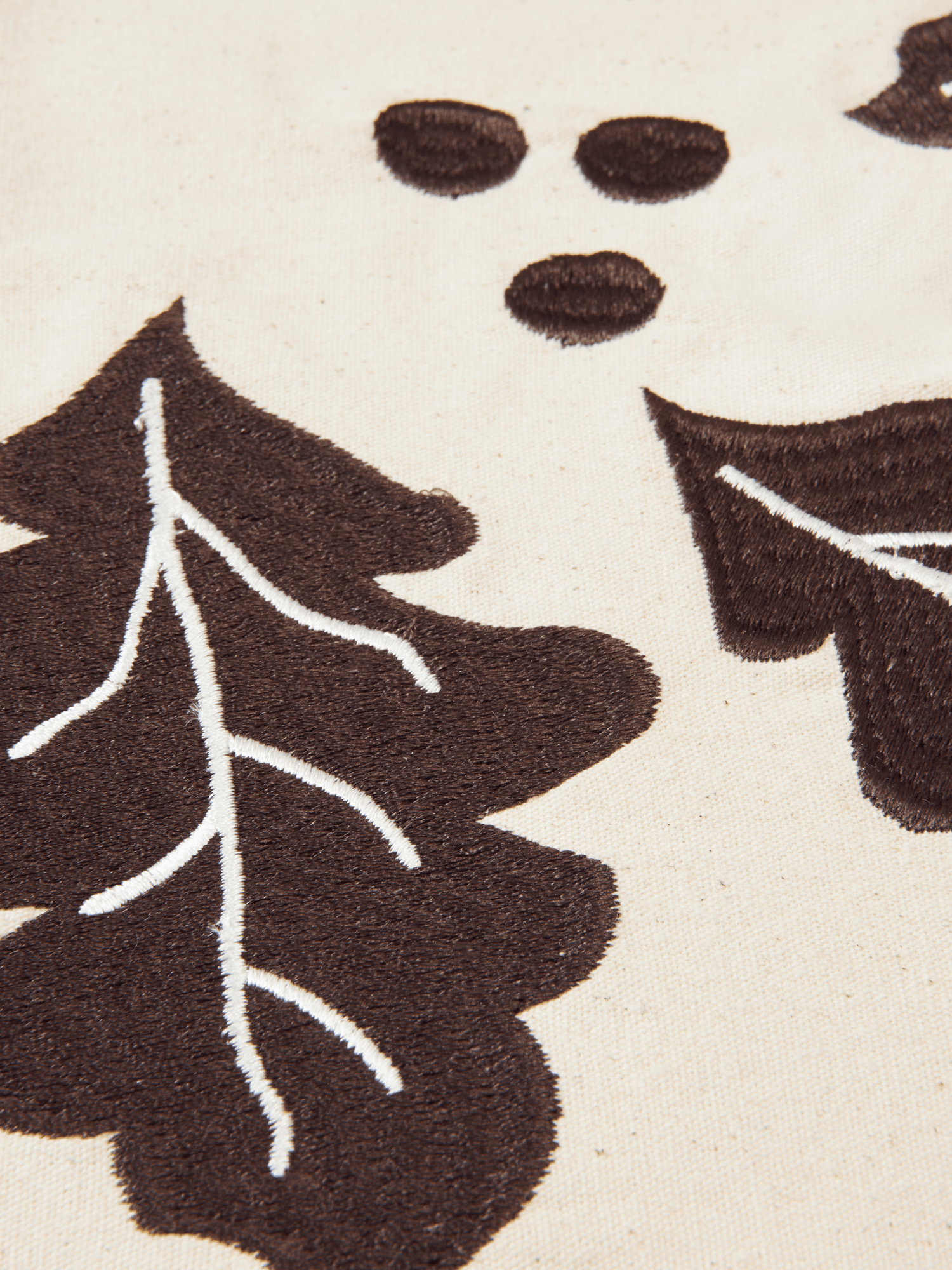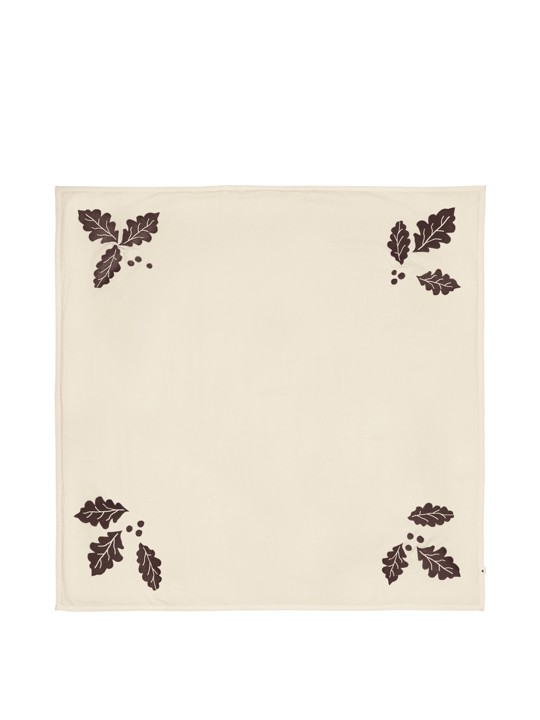 Made from 100% GOTS-certified organic cotton, the Oak Christmas Tree Blanket features dense machine embroidery with a rich, tactile feel. Oak leaves and berries in a deep, dark chocolate tone adorn the corners, offering a refined contrast against the neutral base. Expertly finished with a cotton hem, its timeless square shape suits a wide range of tree sizes with effortless elegance.