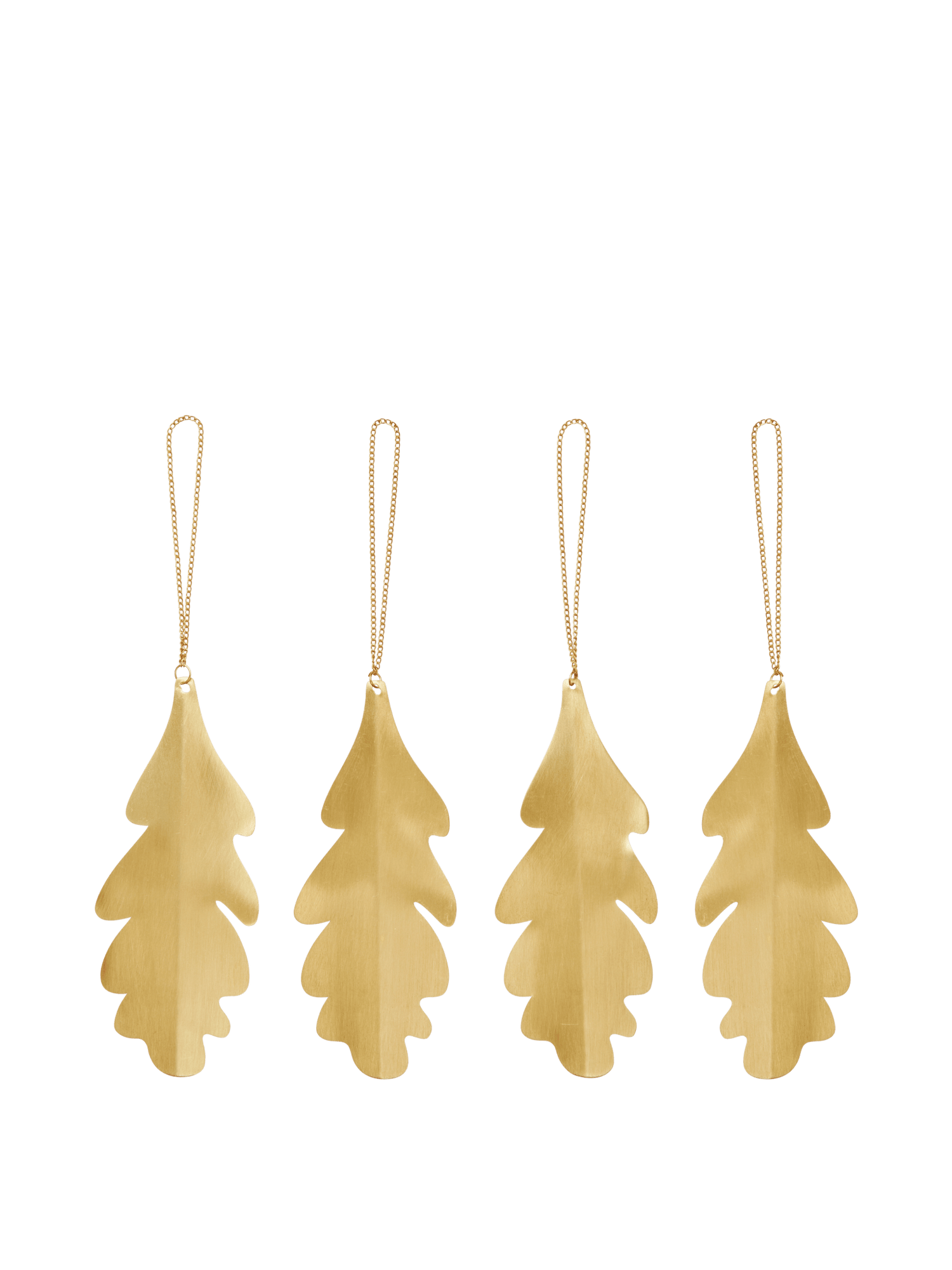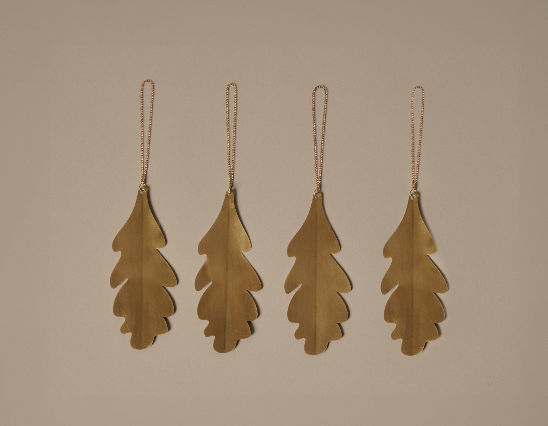 Crafted from brass with clear lacquer and brass chain, the Oak Leaf Brass Ornaments - Set of 4 reflects Ferm Living’s signature combination of artistry, practicality, and timeless Scandinavian design.