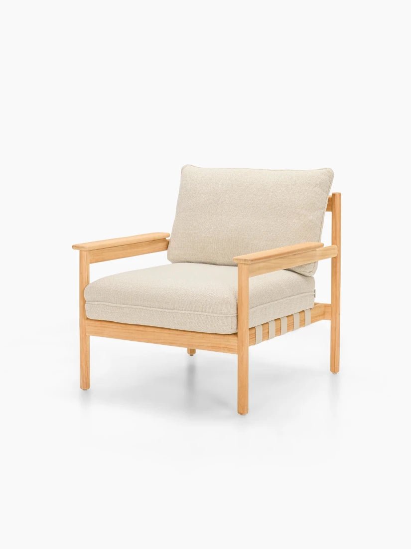 - Material: Untreated Teak, Polypropylene Rope, Quick-Dry Foam & Polyester Cushions, Nylon Glides