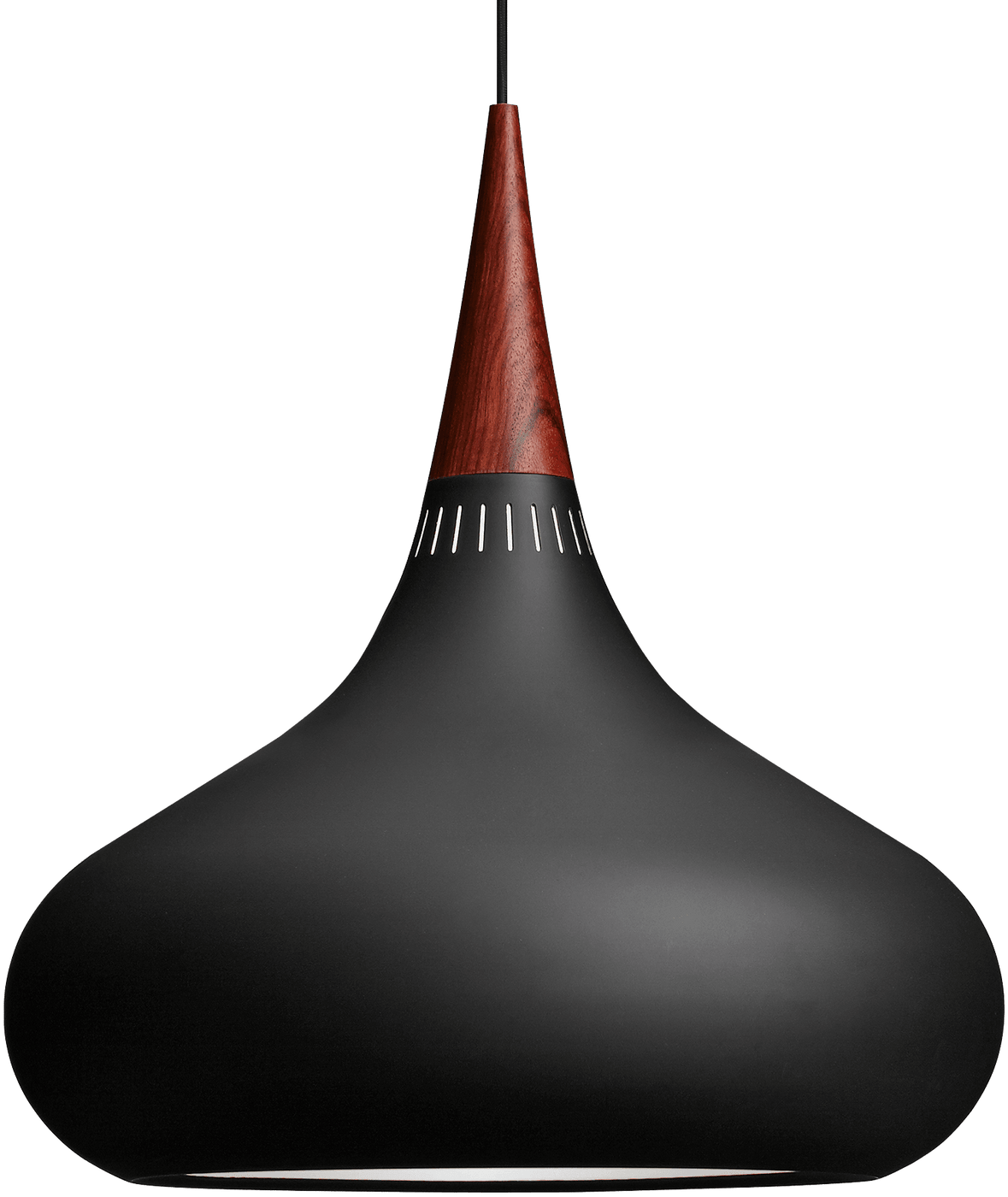 The Fritz Hansen Orient Pendant captures the essence of mid-century Danish design through Jo Hammerborg's 1963 masterpiece, where organic sculptural beauty meets exceptional craftsmanship to create a lighting fixture that feels both timeless and thoroughly contemporary. This isn't just another pendant light - the Orient represents Hammerborg's genius for transforming functional lighting into pure art through its distinctive curved silhouette that conceals the light source while delivering soft, glare-free illumination. The hand-spun shade, available in lustrous aluminum, rich copper, or sleek black lacquer, creates that coveted organic expression through traditional metalworking techniques, while the elegant wooden top - oak or rosewood - adds natural warmth and textural contrast. Whether suspended over your dining table, kitchen island, or as a striking focal point in any room, the Orient pendant delivers ambient lighting that enhances both daily living and special gatherings with signature Danish sophistication. What makes this pendant extraordinary is the meticulous hand-craftsmanship that defines authentic mid-century design excellence. Each shade is individually spun over a wooden mold, ensuring the completely original organic shape that makes every Orient pendant unique while maintaining perfect proportions. The 24 narrow vertical slits at the top of the shade allow light to filter upward, creating beautiful patterns on the ceiling while the main illumination flows downward in a warm, even distribution. The delicate wooden joint connecting the shade to the cord represents the kind of thoughtful detail that separates exceptional design from ordinary lighting. Available in three sizes from the compact perfect for intimate spaces to larger options for grand installations, each pendant maintains those flowing lines that define Hammerborg's distinctive aesthetic vision. Fritz Hansen approaches the Orient pendant from their commitment to preserving Danish design heritage while maintaining the exacting quality standards that made Hammerborg's original lighting so influential in shaping modern interiors. Originally manufactured by the legendary Fog & Mørup and relaunched by Fritz Hansen in 2013 through close collaboration with the Hammerborg family, the Orient represents more than nostalgic revival - it's a celebration of the enduring principles that define exceptional Danish craftsmanship. Their philosophy centers on creating fixtures that serve both functional needs and emotional wellbeing through beautiful, considered design - which is why the Orient pendant represents an investment in creating spaces that feel personally meaningful and visually inspiring. Through premium materials, traditional hand-spinning techniques, and that distinctly Danish approach to balancing organic form with practical function, Fritz Hansen ensures each Orient pendant becomes a lasting source of both illumination and design inspiration in contemporary living.