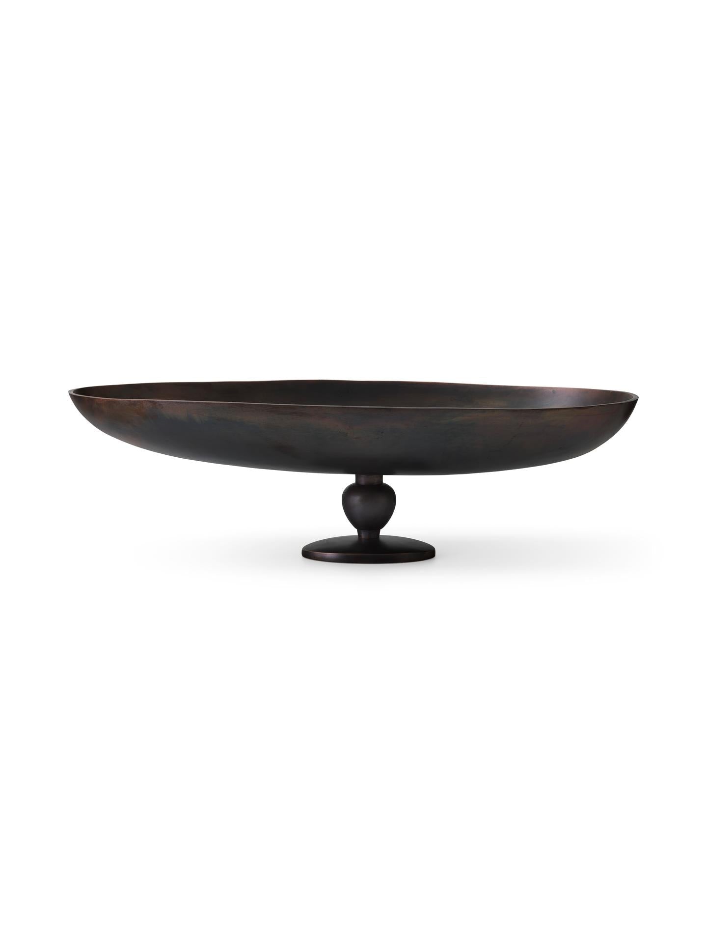 The Audo Copenhagen Pavot Centerpiece brings that perfect combination of looking impressive on your table while actually being useful for everyday life. Designed by Colin King, this elongated bowl draws inspiration from the delicate form of a poppy seed head - you can see it in that footed base and the way the soft curves create this organic silhouette. The brown bronzed finish adds rich, vintage character that photographs beautifully but honestly looks even better in person where you can see how it catches light throughout the day. At 48.2cm wide, 24.4cm deep, and 13.5cm high, it's substantial enough to anchor a dining table or console without being so large that it dominates everything around it. The sculptural form means it works as a standalone decorative object when empty, or as a catch-all vessel for keys, mail, remotes, and all those everyday objects that usually just pile up on surfaces. What makes the Pavot genuinely functional beyond just looking good is how that elongated shape and shallow depth make it perfect for corralling items without them disappearing into a deep bowl where you can never find anything. Works beautifully on entryway consoles for keys and sunglasses, on coffee tables for remotes and coasters, or on dining tables filled with decorative objects like pine cones, ornaments, or seasonal displays. The footed base lifts it slightly off the surface, giving it presence and making it easier to clean underneath. The bronzed finish is forgiving - it hides fingerprints and minor scratches better than polished metals, developing character over time rather than just looking worn. Note that it's not approved for food use, so this is purely for decorative or organizational purposes rather than serving snacks. The timeless elegance means it works whether you're going minimalist and modern or mixing it into more eclectic spaces with vintage pieces. Audo Copenhagen was formed by uniting MENU, by Lassen, and The Audo, creating a brand that collaborates with designers who bring unique perspectives from unexpected backgrounds. Colin King, professionally trained as a dancer, found himself at the intersection between a dancer's spatial awareness and a stylist's impulse to bring spaces to life before moving into product design. Based in Tribeca, New York City, he balances styling for major publications like Architectural Digest and T Magazine with designing from his studio. His work is continuously inspired by life's everyday rituals, gestures, and imperfections - made beautiful by their evolving presence within spaces. The Pavot Centerpiece reflects this philosophy, blending modern minimalism with traditional charm to create objects that enhance daily life through thoughtful design rather than just adding more decorative items
