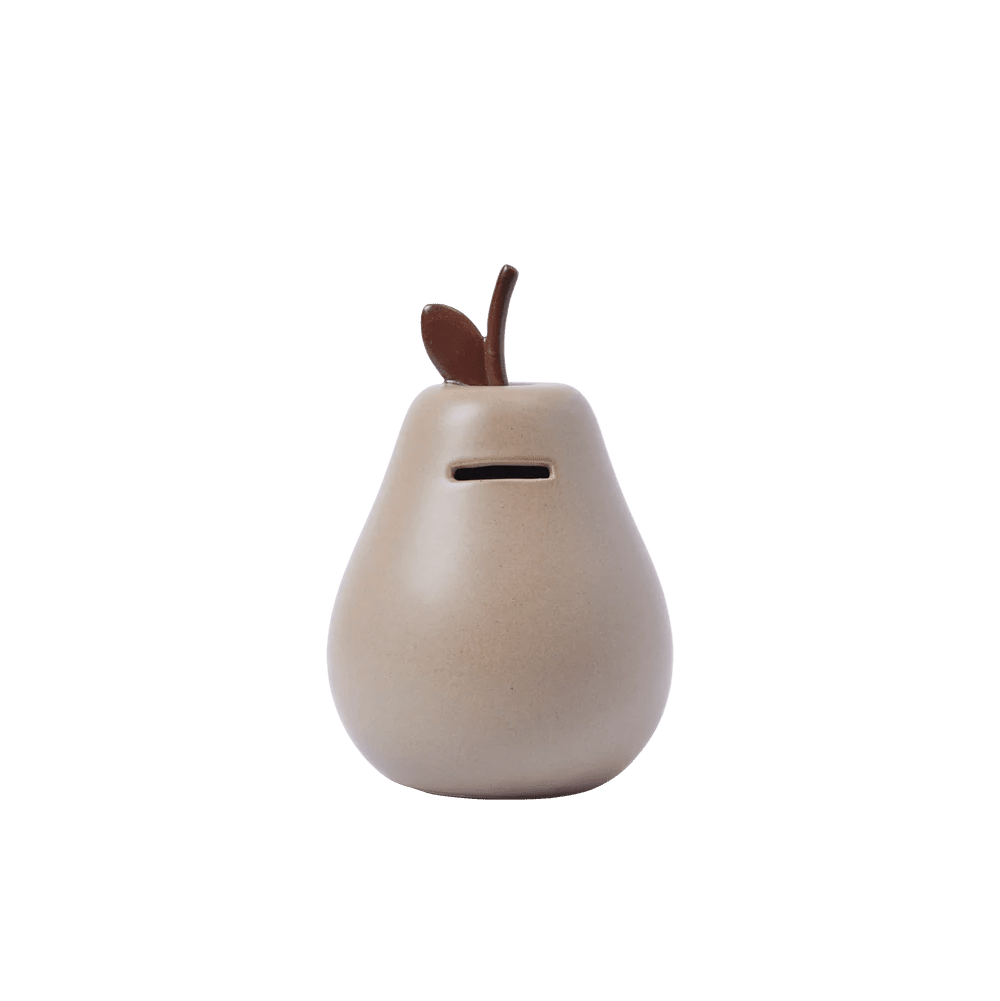 The Ferm Living Pear Money Bank transforms the timeless tradition of saving into a delightful sculptural experience that brings both whimsy and purpose to children's spaces through its charming pear-inspired silhouette and soft cashmere glaze finish. This isn't just another piggy bank - the Pear Money Bank represents thoughtful design that encourages financial responsibility while adding a bold graphic presence that works beautifully as decorative art when not in active use. The playful yet sophisticated form captures the essence of fresh fruit in glazed stoneware, creating a piece that feels both familiar and unexpectedly elegant. Whether you're placing it on a bedside table where it becomes part of nighttime routines, positioning it on a desk to make saving part of daily study habits, displaying it on shelving where it adds sculptural interest alongside books and toys, or using it as a conversation starter that teaches children about money management through beautiful design, the Pear Money Bank delivers both practical function and lasting visual appeal that grows with your child.