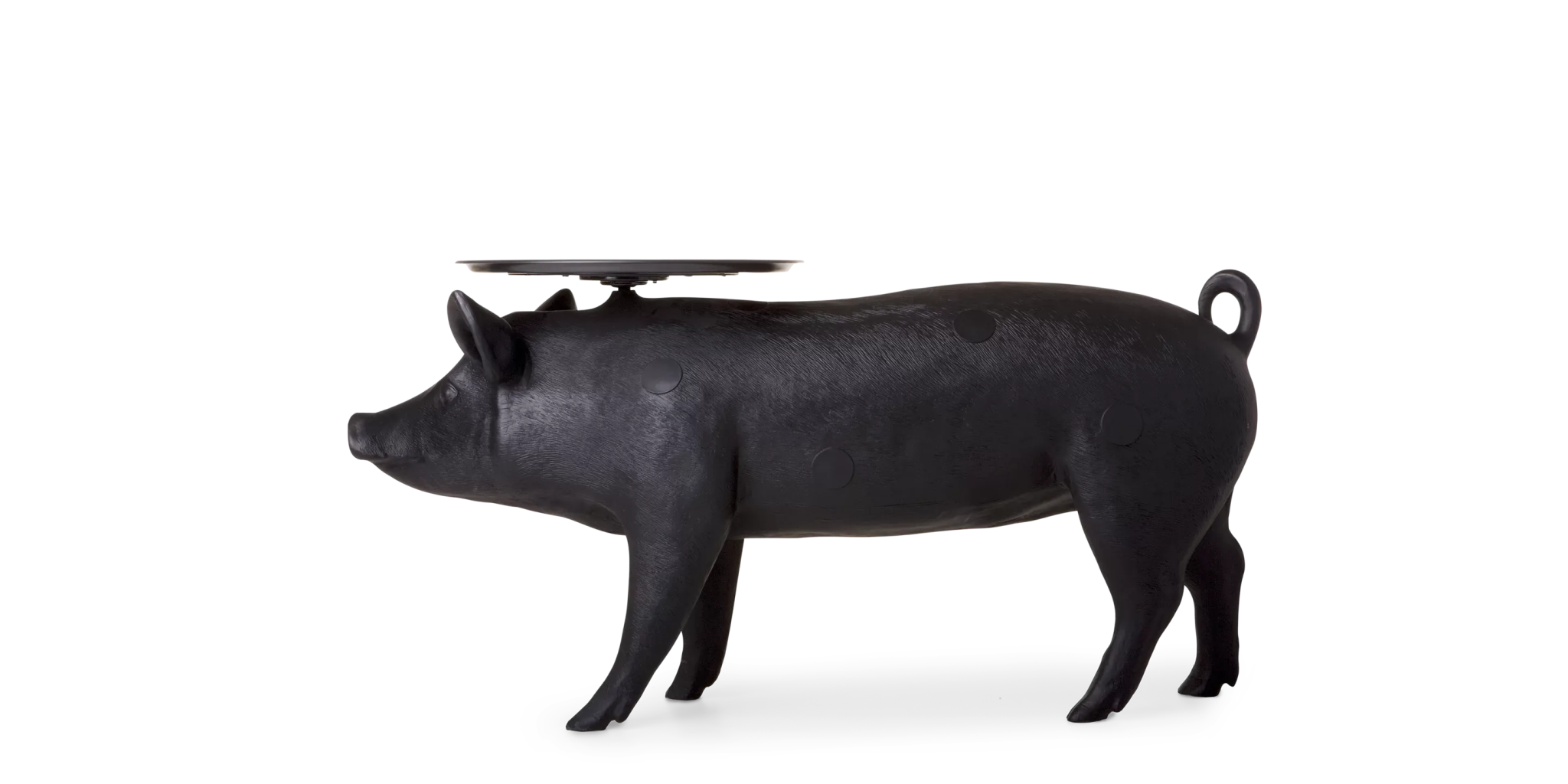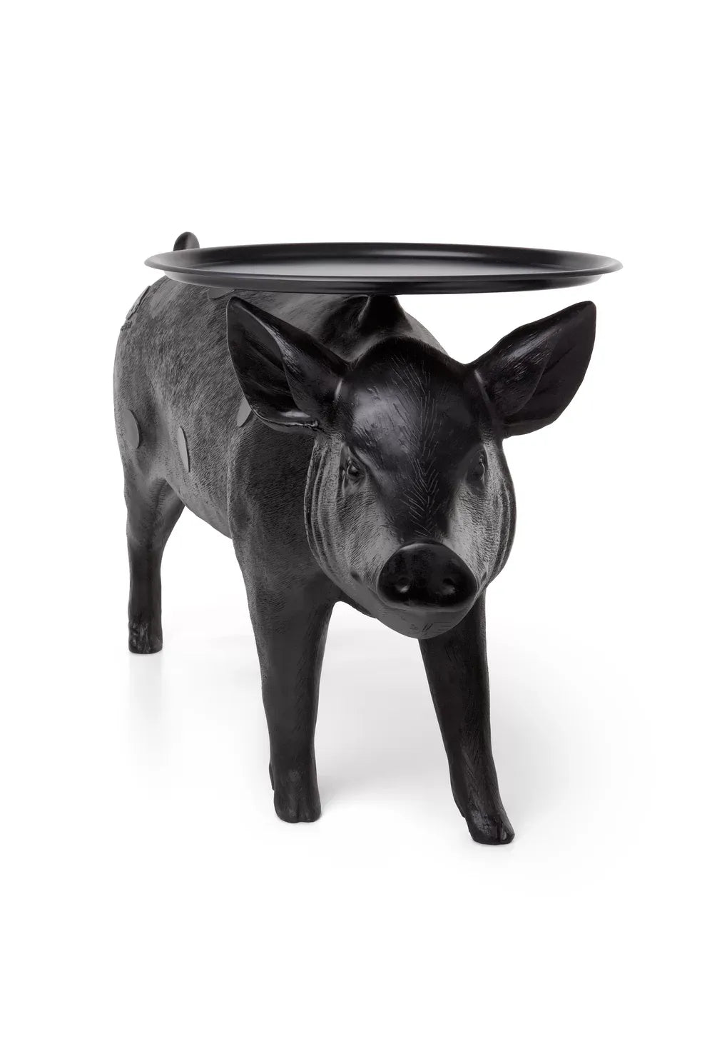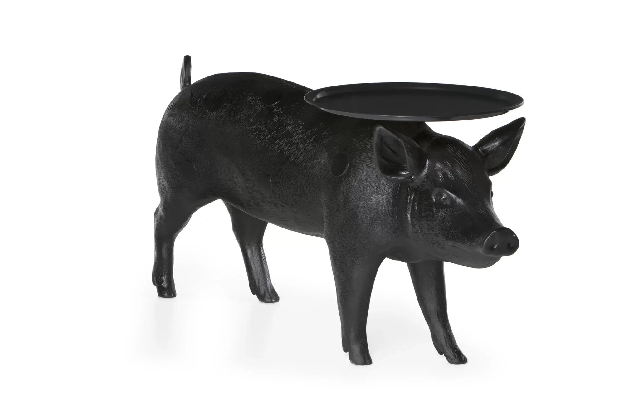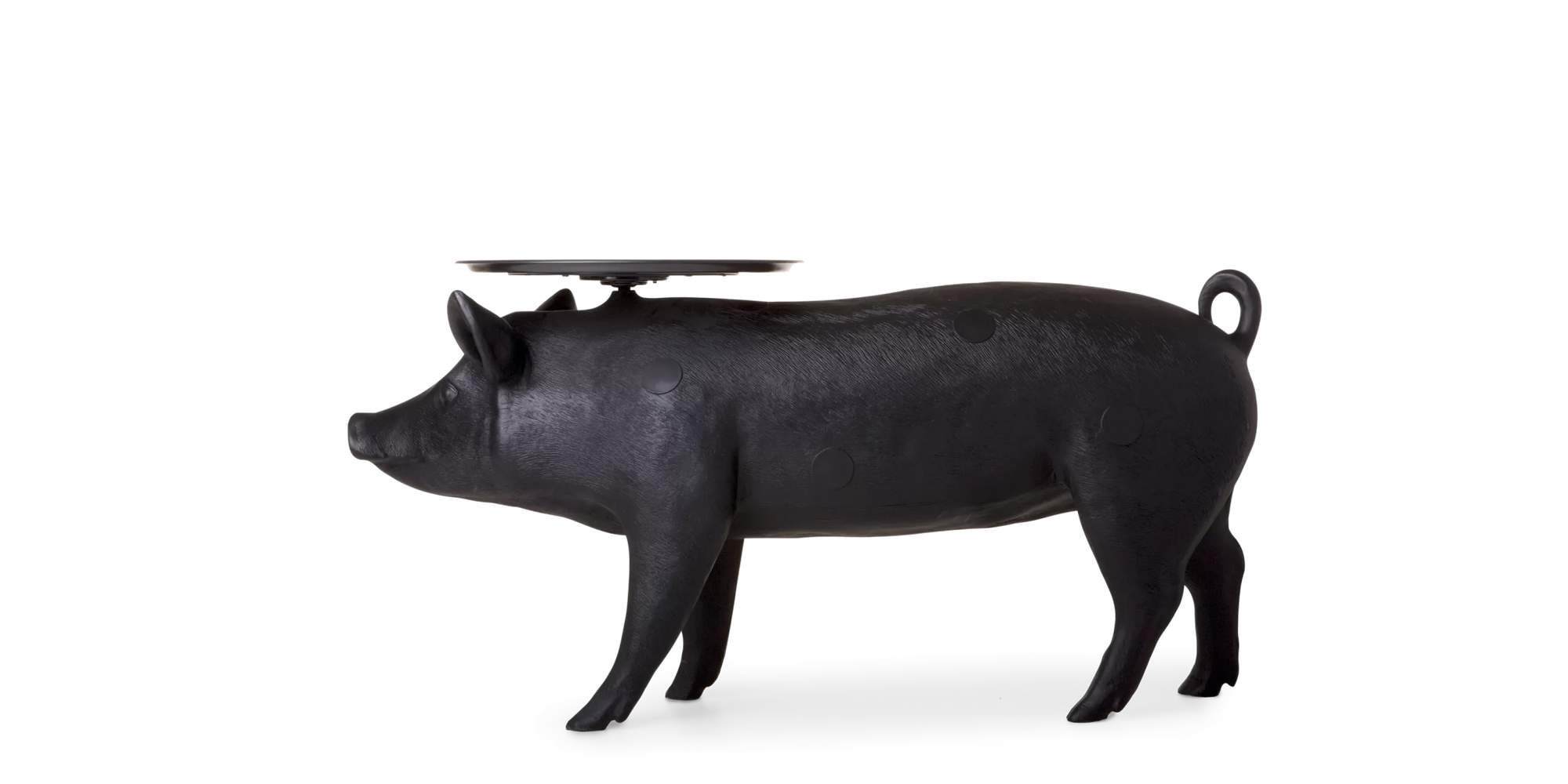 The Moooi Pig Table is absolutely the kind of piece that stops conversations the moment someone walks into your room - and that's exactly the point. Front Design created this life-sized pig back in 2006, and honestly, it's still one of those "love it or hate it" pieces that divides people instantly. But if you're drawn to furniture that tells a story and refuses to blend into the background, this black polyester beauty delivers in spades. The attention to detail is incredible - from the realistic proportions to those signature Moooi "beauty spots" and smiley logo that somehow make the whole thing feel both cheeky and sophisticated. The circular tray balanced on the pig's back isn't just for show either; at 23.6 inches across, it's actually a functional side table that works perfectly for drinks, books, or whatever you need within arm's reach. What's brilliant about the Pig Table is how it manages to be both conversation starter and genuinely useful furniture. The tray is adjustable and can rotate, which means you can fine-tune the angle depending on your seating arrangement or if your floor isn't perfectly level. At about 32 pounds, it's substantial enough to feel quality-made but not so heavy that repositioning becomes a major project. The polyester construction with ABS plastic top means it's built to handle daily use while maintaining that glossy finish that makes the whole piece pop. It's part of Front's three-piece animal collection for Moooi, but the pig definitely has the most personality - there's something endearing about having a life-sized farm animal serving as your side table that just works in the right space. Moooi has built its reputation on pieces that challenge conventional furniture expectations, and the Pig Table perfectly embodies this philosophy. Founded by Marcel Wanders and Casper Vissers, the Dutch company consistently works with designers who aren't afraid to blur the lines between art and functionality. Front Design's collaboration with Moooi showcases this approach beautifully - taking something as unexpected as a pig and turning it into sophisticated furniture that somehow makes perfect sense once you live with it. Along with their innovative lighting, seating, and accessories, Moooi creates pieces that transform spaces through genuine character and storytelling, helping you build environments that reflect personality rather than just following safe design rules.