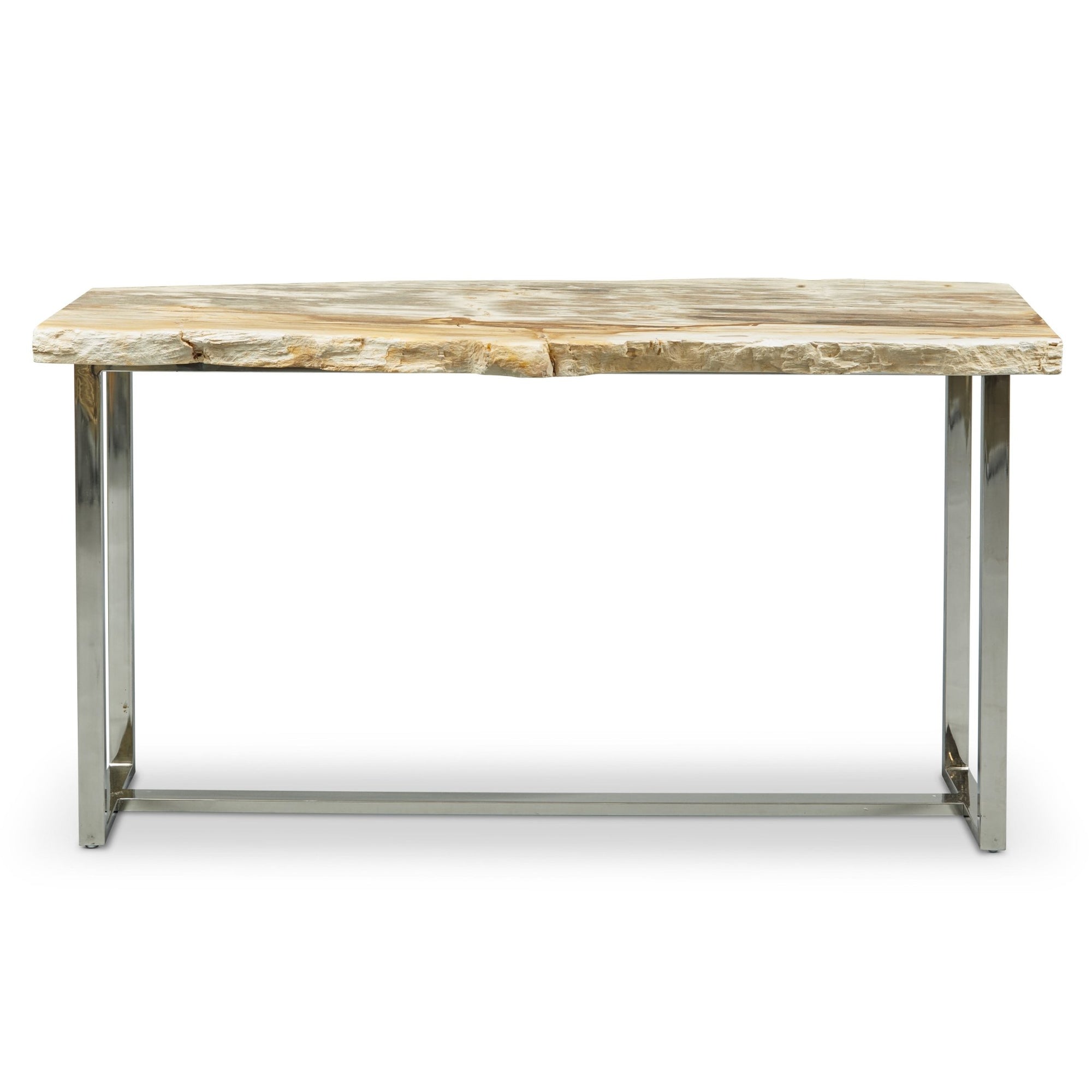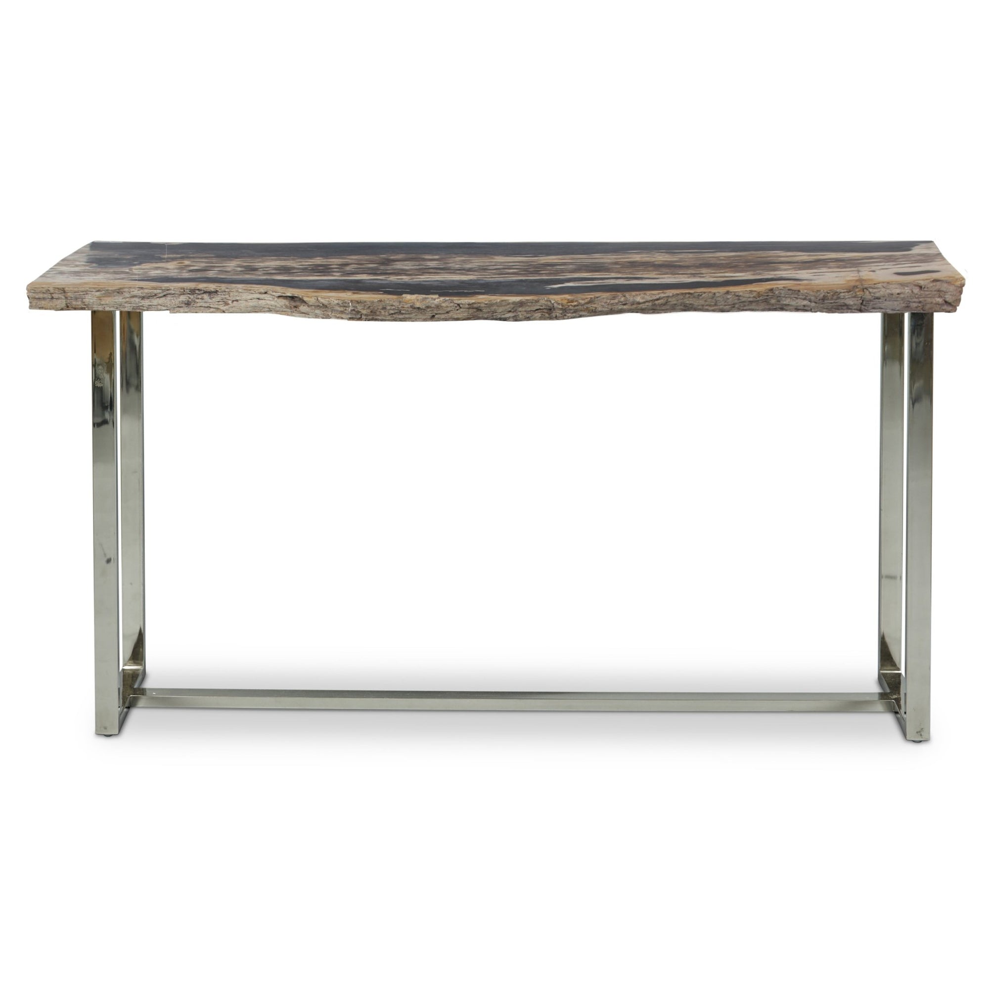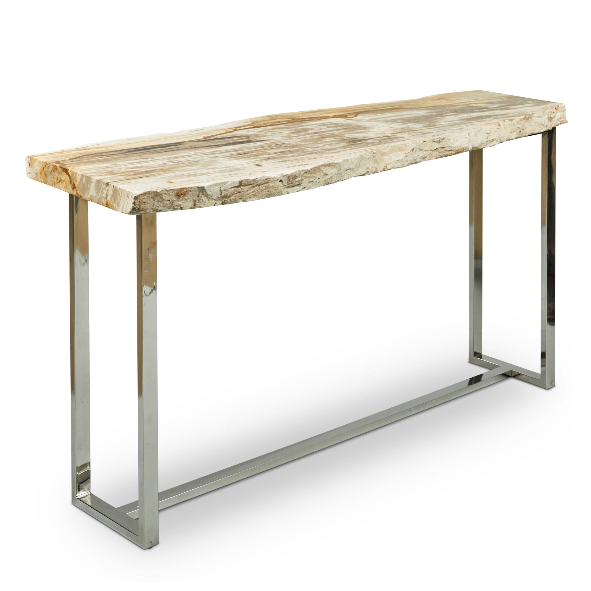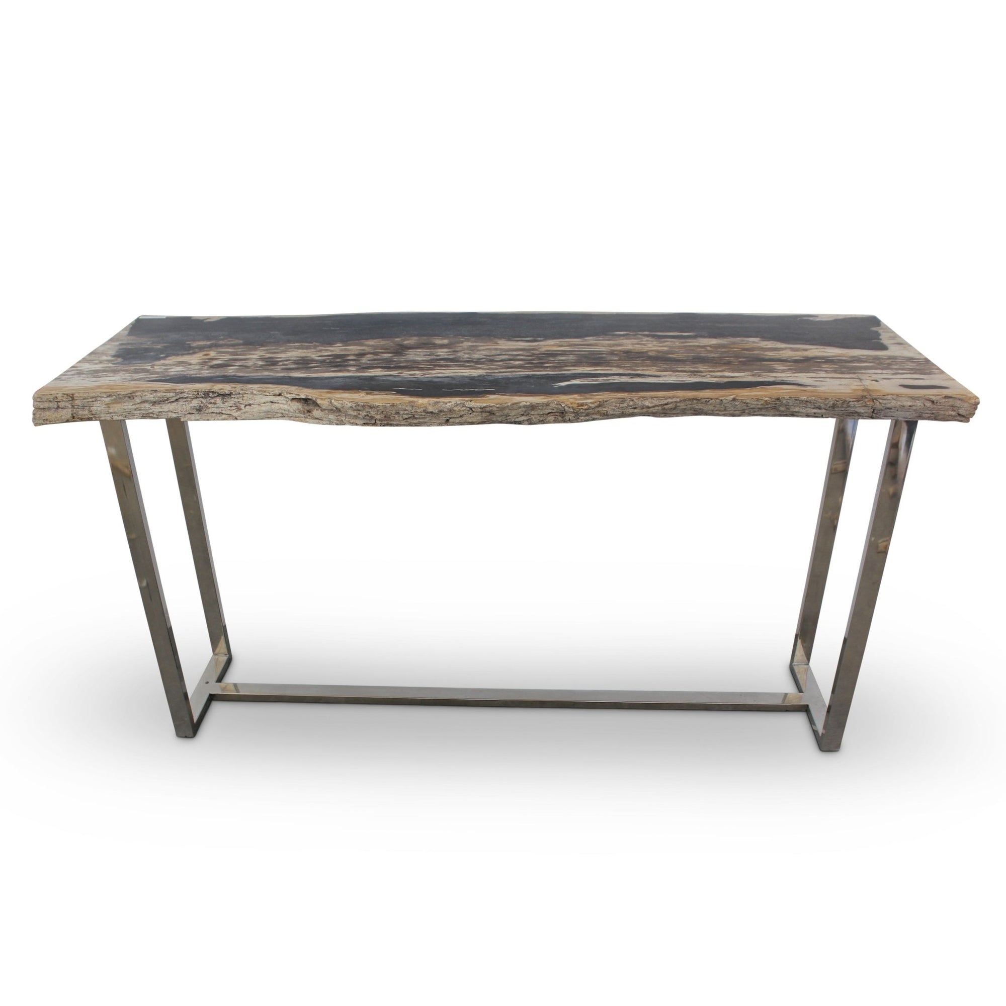 Solid Natural Edge Petrified Wood Slice, Polished Stainless Steel
