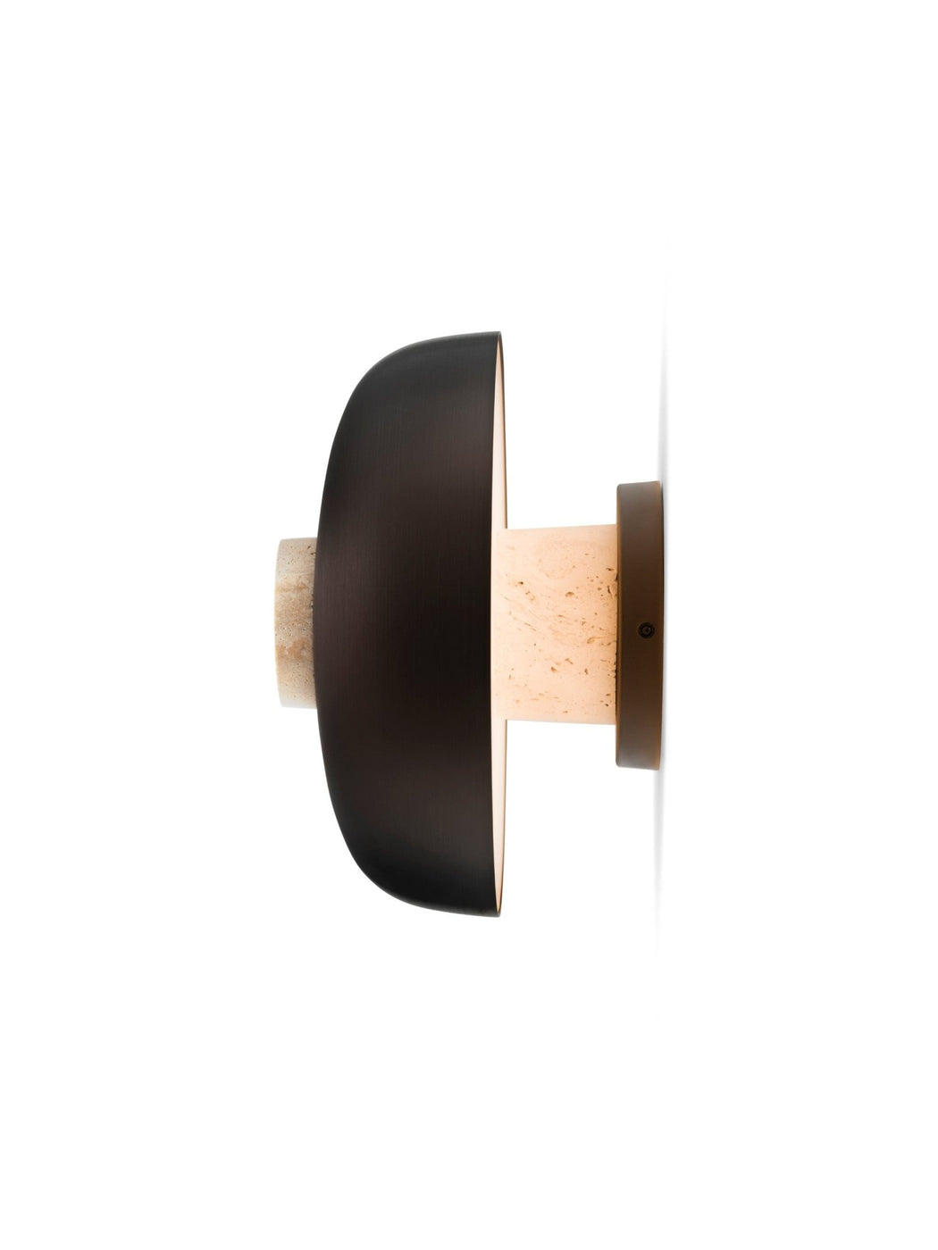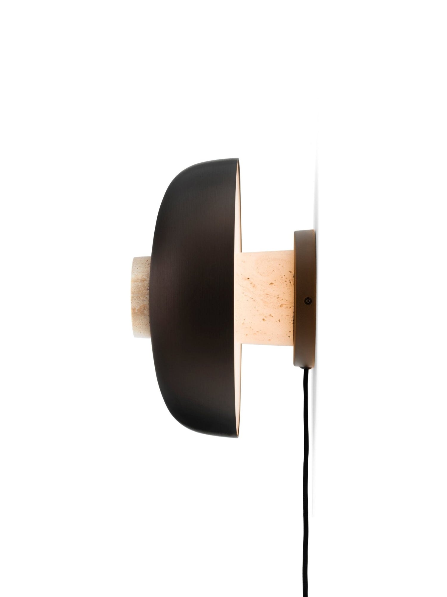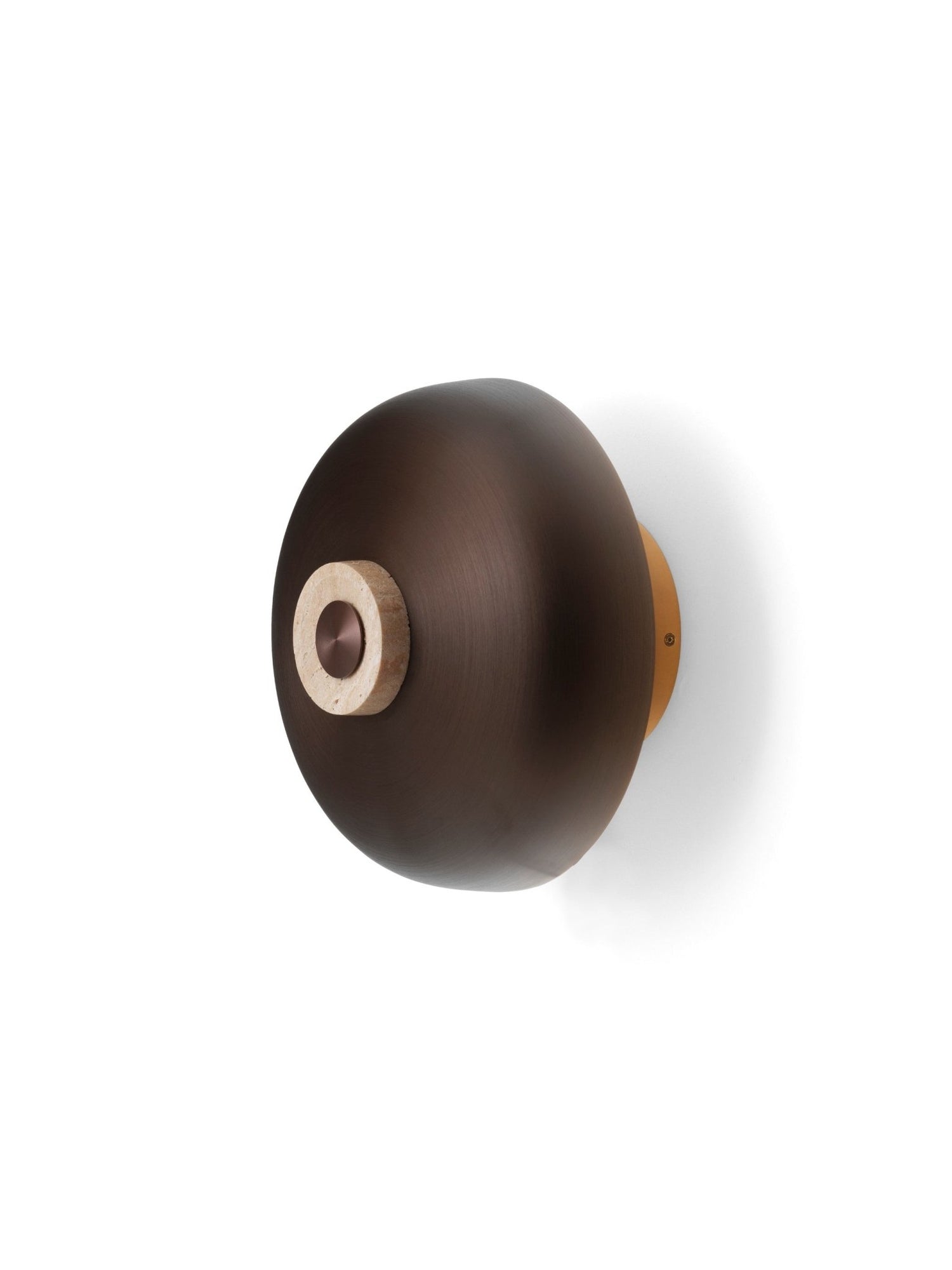 The Audo Copenhagen Reverse Wall Lamp takes Aleksandar Lazic's brilliant table lamp concept and mounts it on the wall, where that same magical interplay between raw travertine stone and polished bronzed aluminum creates this constantly shifting display of light and shadow. The untreated travertine mount juts out from the wall like a sculptural fragment, while the curved aluminum shade hovers above it, creating this perfect tension between rough and refined that somehow feels both ancient and thoroughly contemporary. What's particularly fascinating is how the light actually illuminates the stone itself, highlighting every natural crack and imperfection in ways that make each installation completely unique. The geometric constraints that inspired the design - those 1970s Italian marble tables - translate beautifully to wall mounting, where the lamp becomes architectural rather than just decorative. The performance delivers serious functionality with either 460 lumens (rotary version) or 330 lumens (TRIAC version) at 2200-3000K color temperature range, with exceptional Ra > 90 color rendering that makes everything look rich and natural. You get two installation options: the rotary version has the dimmer built into the lamp's knob for direct control, while the TRIAC version works with standard home dimming systems for seamless integration with existing electrical setups. The opal diffuser ensures even light distribution without harsh spots, and the dim-to-warm functionality means you can dial in exactly the right mood for different times of day. Being hardwired means clean installation without visible cords, and the indoor rating keeps it focused on interior applications where that stone-and-metal contrast makes the most visual impact. Audo Copenhagen continues demonstrating their talent for finding designers who understand materials at a fundamental level rather than just styling them for visual effect. Aleksandar Lazic's engineering background shows in every detail of how this mounts, dims, and distributes light, while his design sensibility creates something that transcends typical wall lighting categories. The brand's commitment to natural materials that develop character over time reflects their understanding that the best lighting becomes more interesting with age rather than just wearing out. Their focus on creating architectural elements rather than just functional fixtures ensures these pieces enhance spaces through genuine design innovation rather than simply meeting basic illumination requirements.