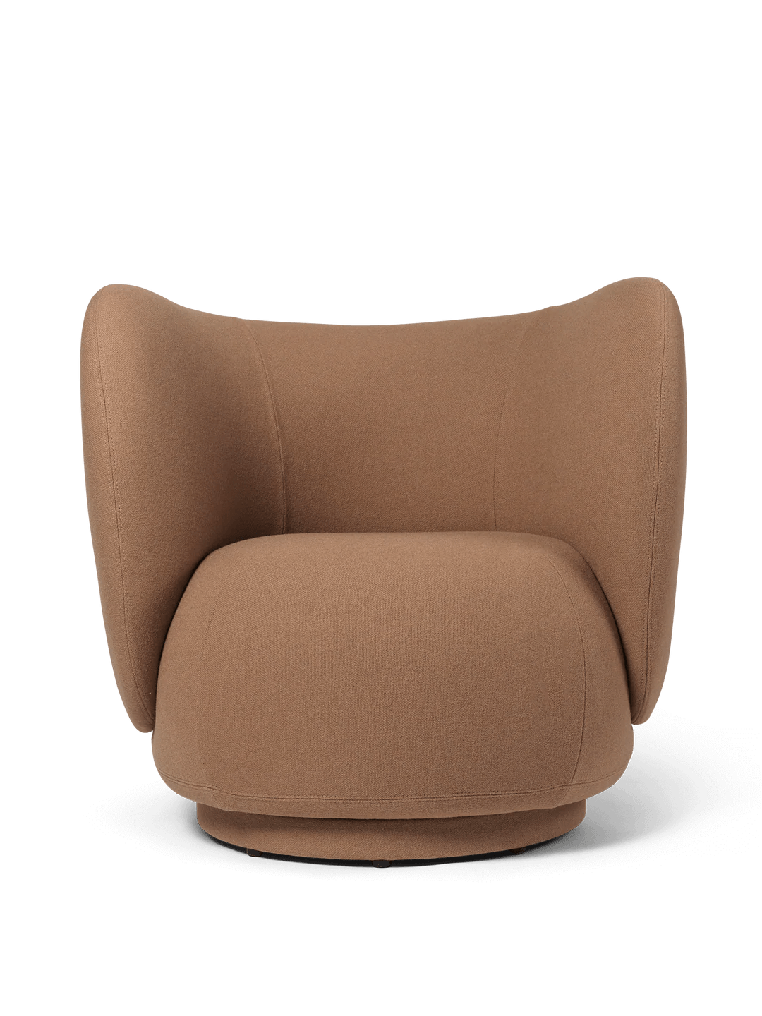 The Ferm Living Rico Lounge Chair with Swivel Base brings all that embracing comfort from the classic Rico design with the added convenience of 360-degree rotation, crafted as a made-to-order piece so you can choose from their complete fabric collection including premium Tonus in rich tan, soft bouclé, and other luxurious options that perfectly match your living space aesthetic. What makes this swivel version special is how it maintains that iconic curved backrest that extends almost to the floor while adding practical mobility that works beautifully for everything from reading sessions where you want to follow natural light throughout the day to conversations where you need to turn toward different people without getting up. The swivel base features an auto-return function, so it naturally settles back to your preferred position, and the smooth rotation feels effortless rather than mechanical. At 87cm wide and 81.5cm deep, it provides the same generous lounging space as the fixed version, but the swivel functionality completely changes how you interact with your room throughout the day. The molded foam backrest with inner steel structure supports you whether you're facing forward for conversations or turned sideways for better TV viewing, while the polyurethane foam seating with wooden frame maintains its shape through daily rotation and use. The 79cm height keeps it feeling approachable, and those signature curves still guide your body into more relaxed positions than typical upright seating. What's practical is how the swivel base lets you maximize your view and comfort without having to move the entire chair - perfect for spaces where you want flexibility without constant furniture rearranging. Ferm Living approaches adaptable seating from Copenhagen with that Danish understanding that beautiful furniture should enhance how you actually live rather than restricting your movement or comfort. They recognize that modern homes are multi-functional spaces where people work, relax, and entertain throughout the day, so adding swivel functionality to their iconic Rico design reflects this practical philosophy. The Rico Lounge Chair with Swivel represents their commitment to creating furniture that becomes an integral part of how you use your space - from morning coffee while watching sunrise through windows to evening conversations that flow naturally around the room. Through their partnership with skilled Italian craftspeople and focus on premium materials, they create pieces that adapt to your lifestyle rather than forcing you to adapt to static furniture arrangements.